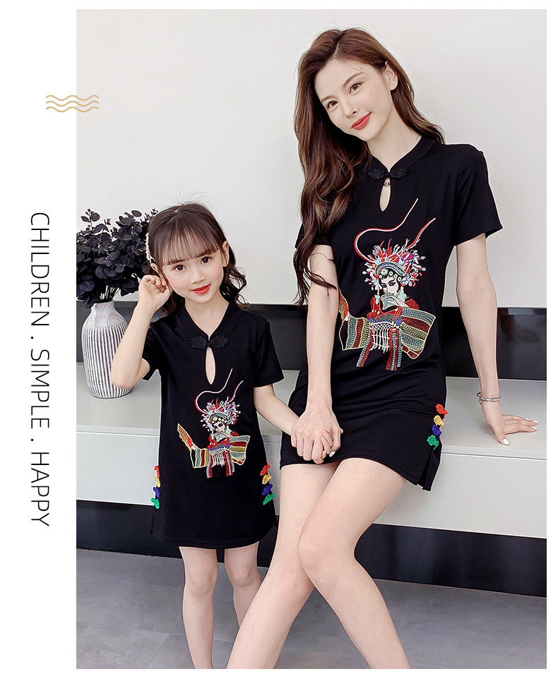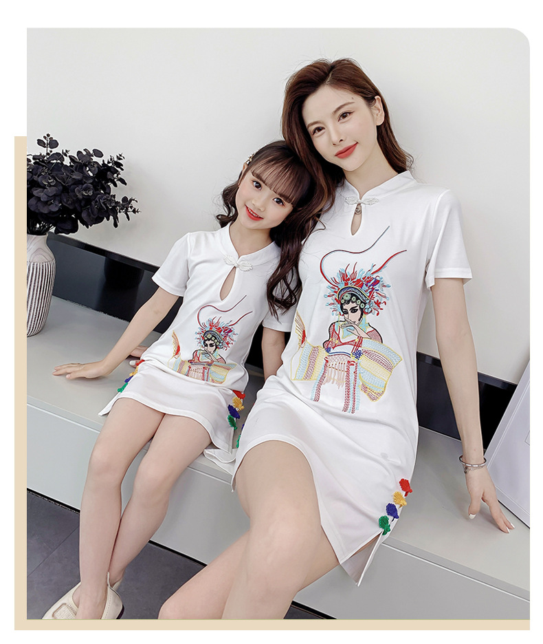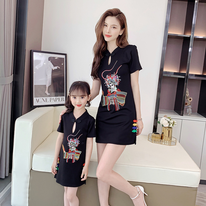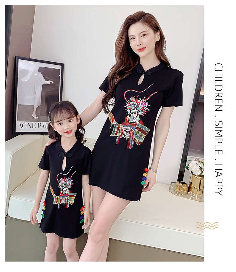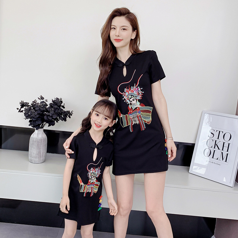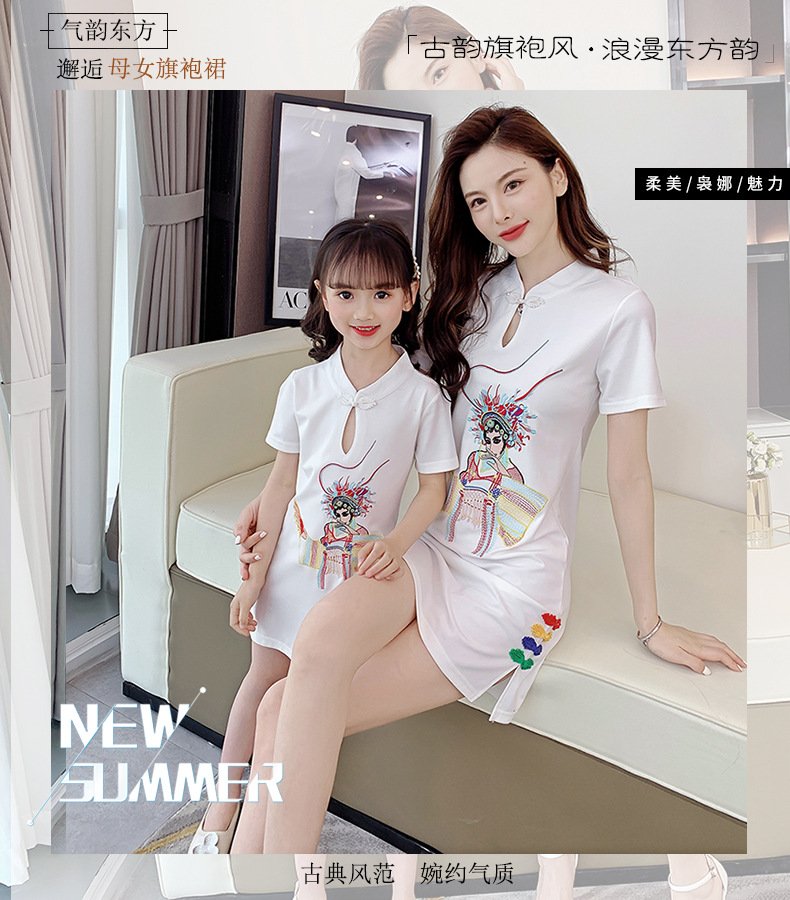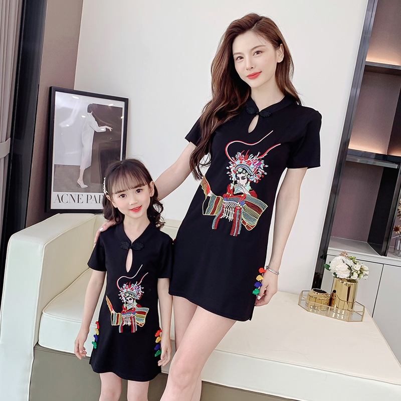 亲子装2021夏装女童网红改良旗袍中国风绣花母女装夏季连衣裙女装