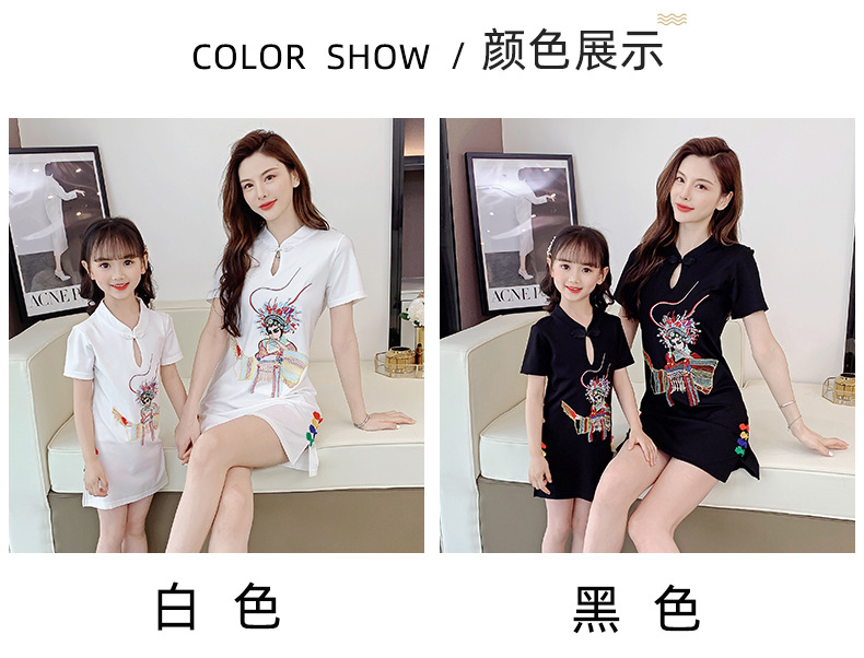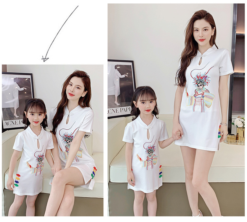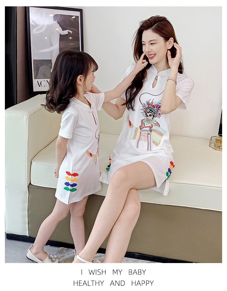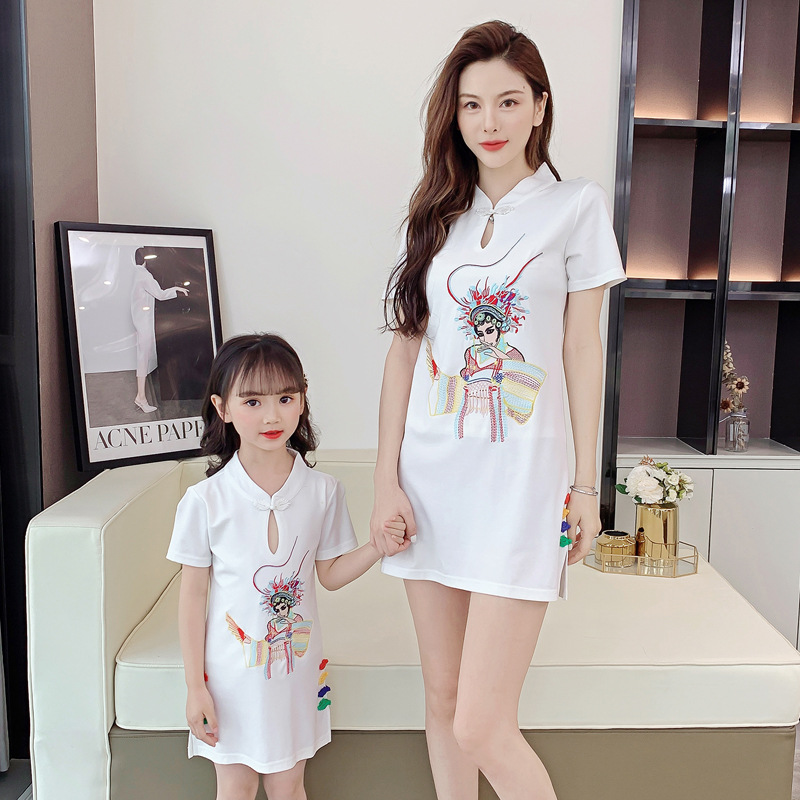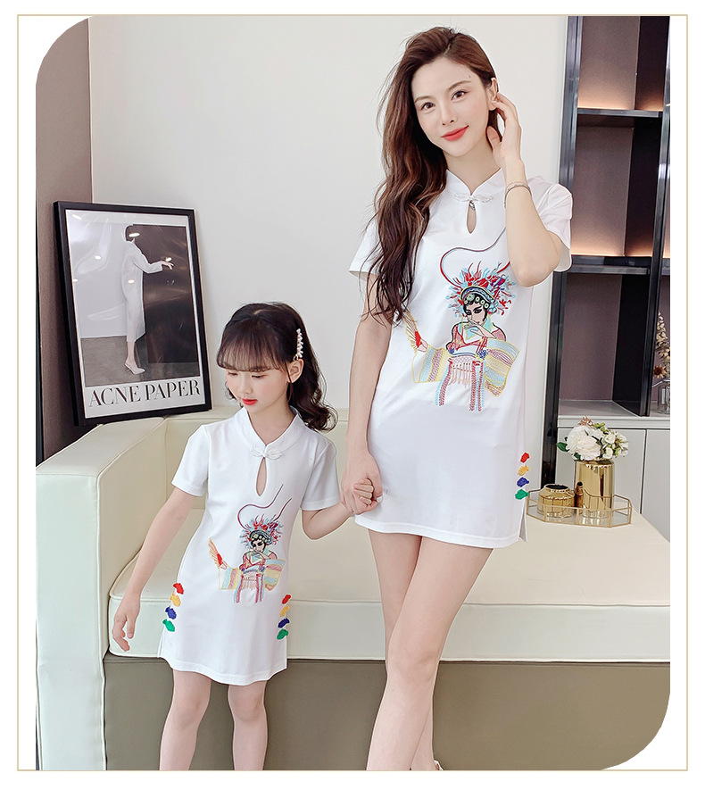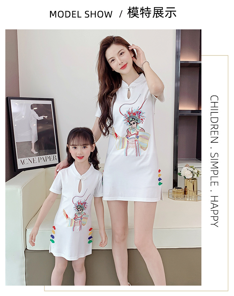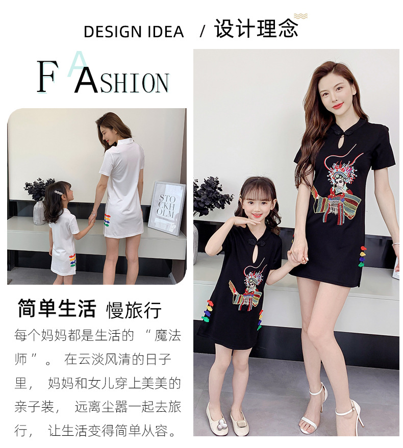 亲子装2021夏装女童网红改良旗袍中国风绣花母女装夏季连衣裙女装