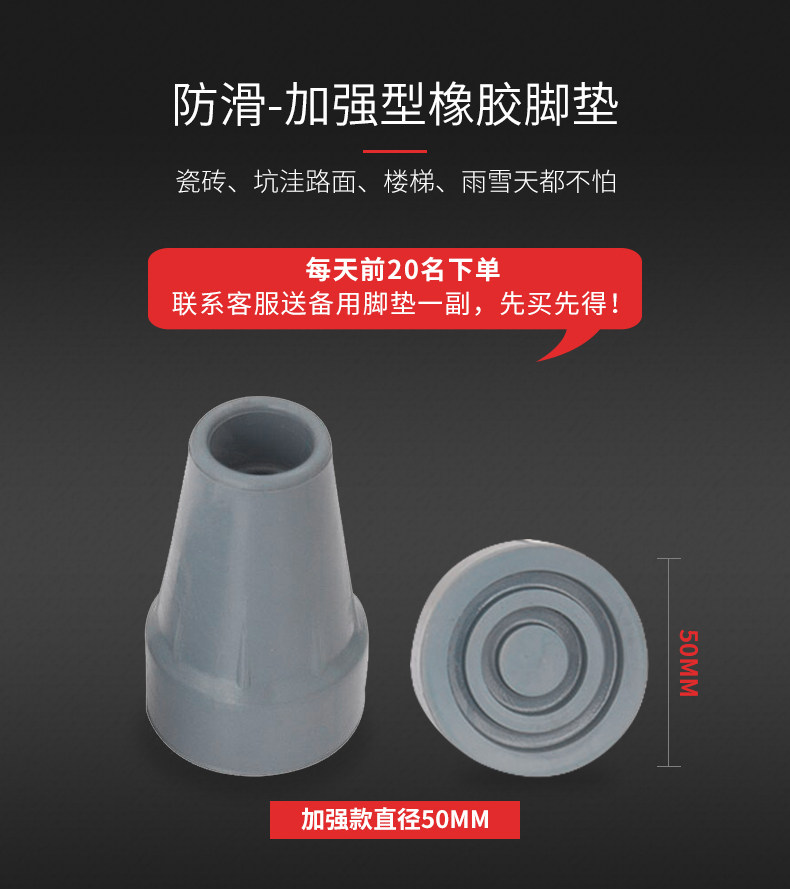 顏色分類 普通款一隻(適用第一次使用),新款加固款一對 不限身高,摺疊款一隻(適用外出方便),新款摺疊款一對 不限身高,減震款一隻(適用長期用柺杖),新款減震款一對 不限身高,新款減震摺疊款一對 不限身高,展示紙箱+德國品質+1年質保