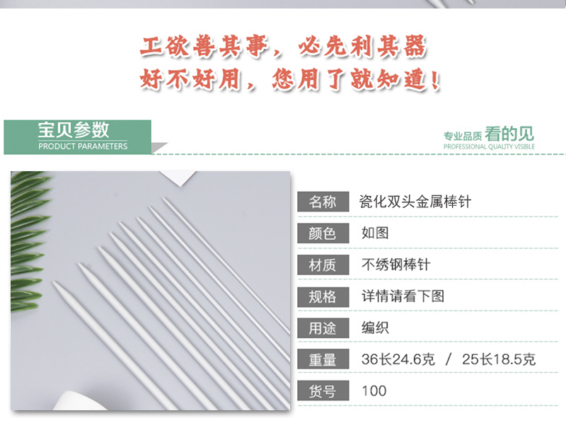 批发不锈钢瓷化实心毛衣针毛线针环形针套装棒针直针编织工具40cm