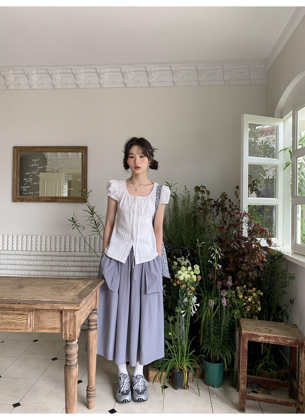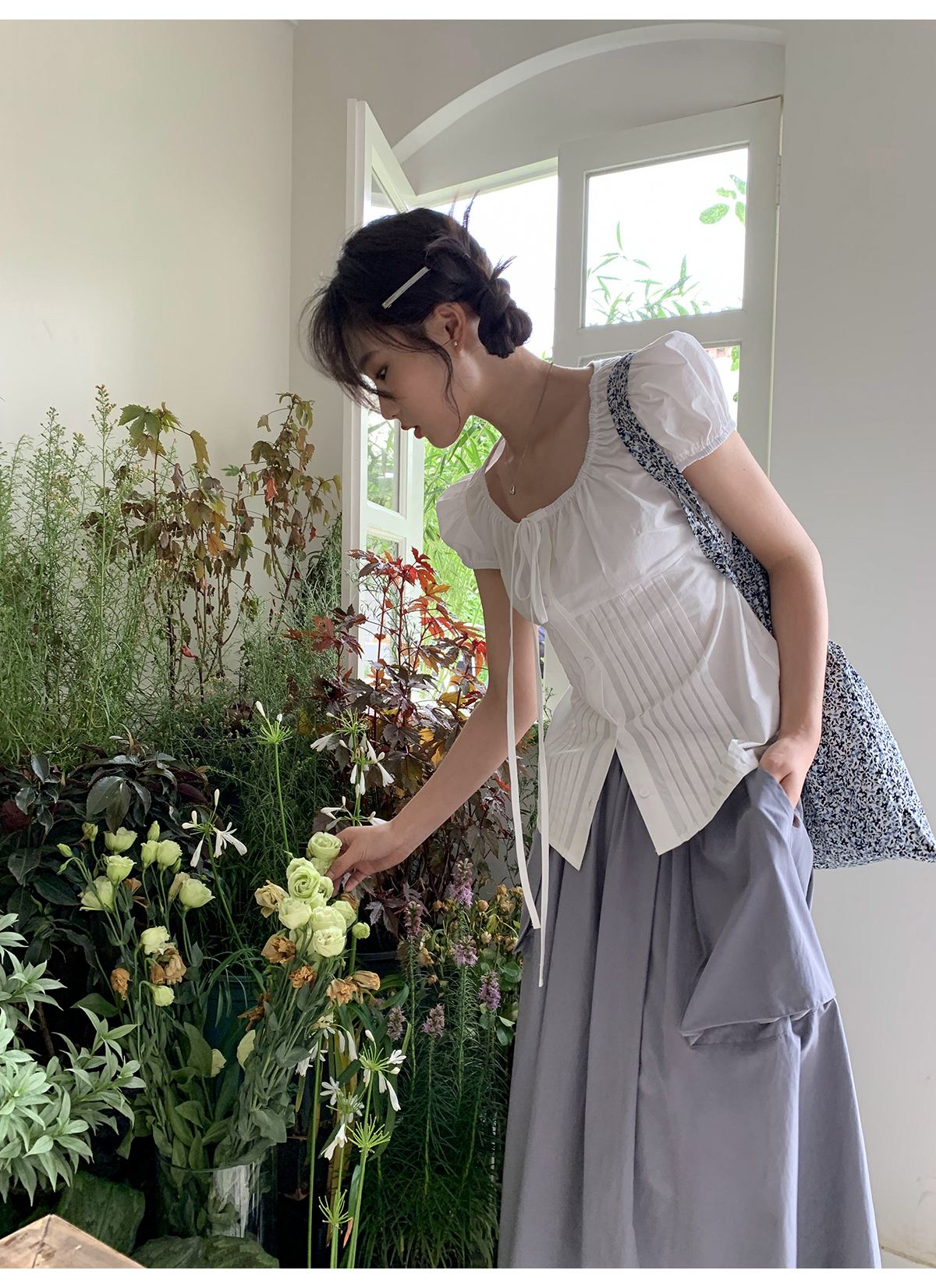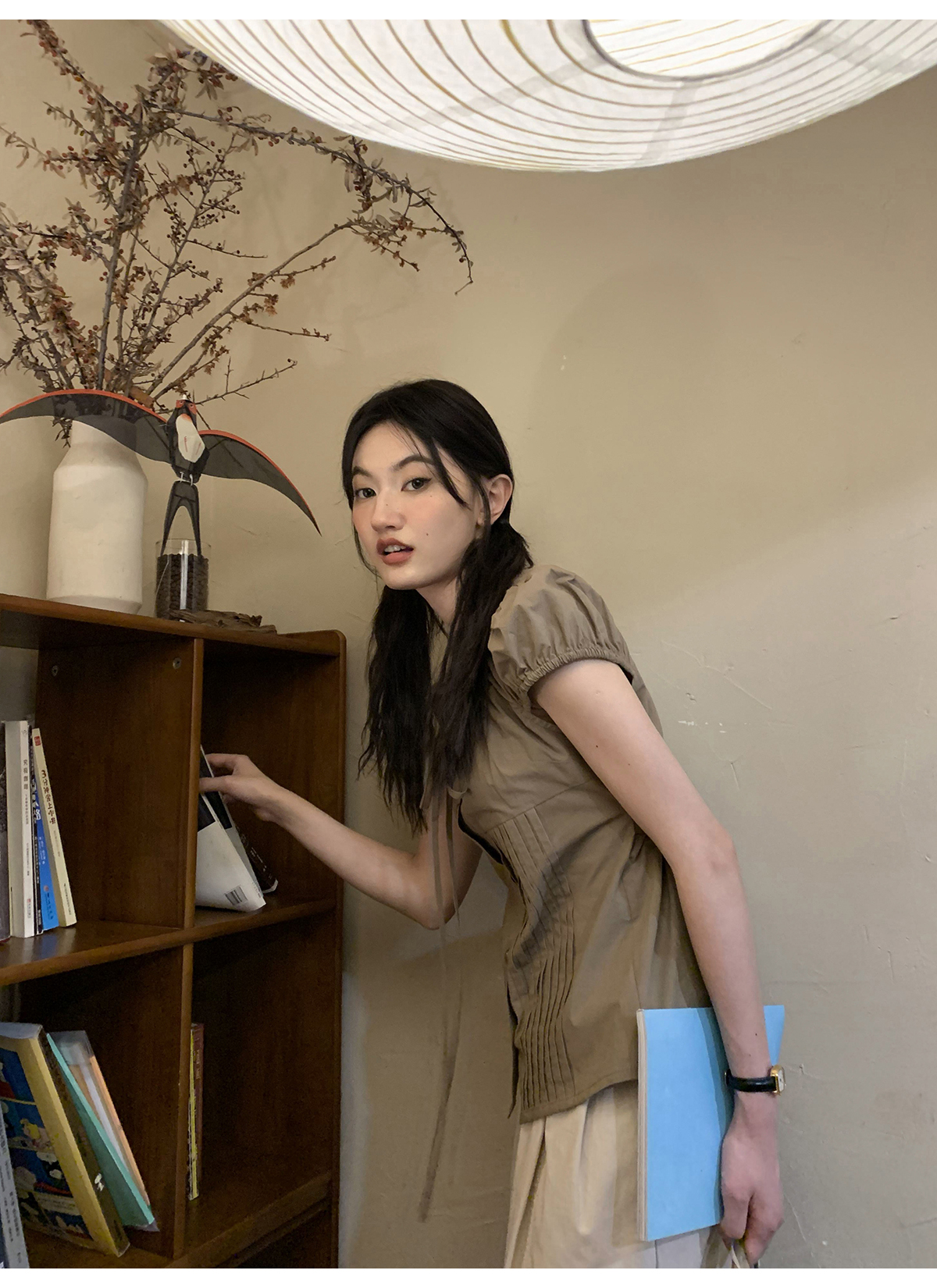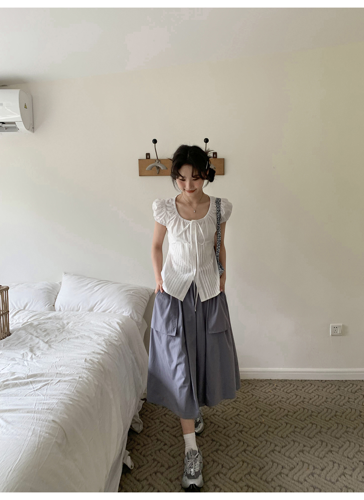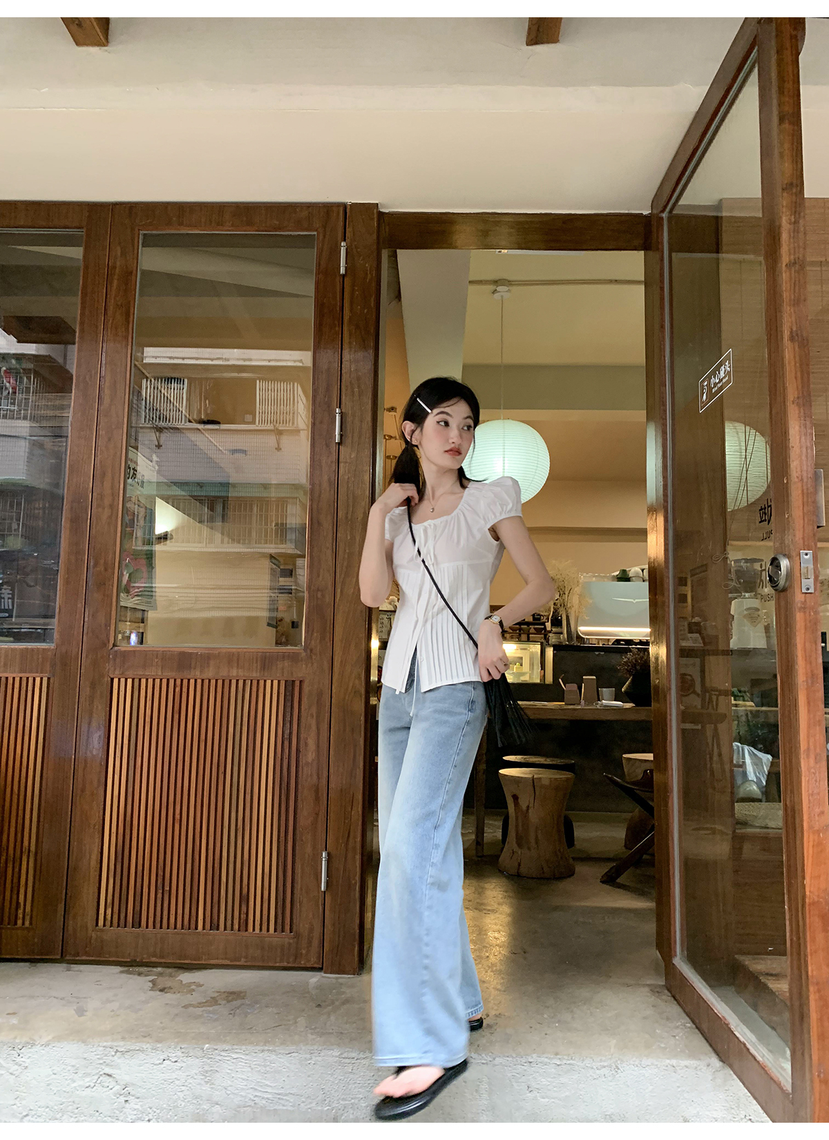 你好卡農 繫帶單排扣泡泡袖短袖上衣夏季薄款寬鬆顯瘦小個子襯衫