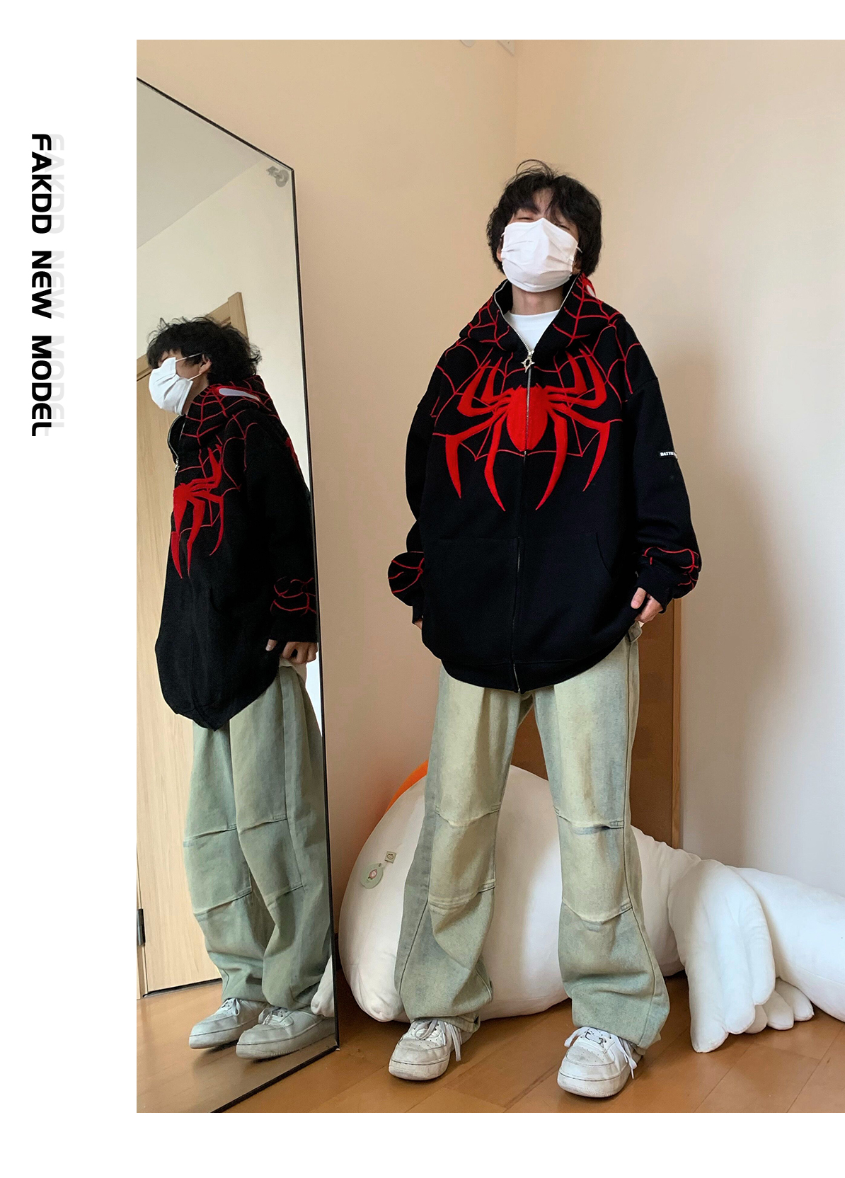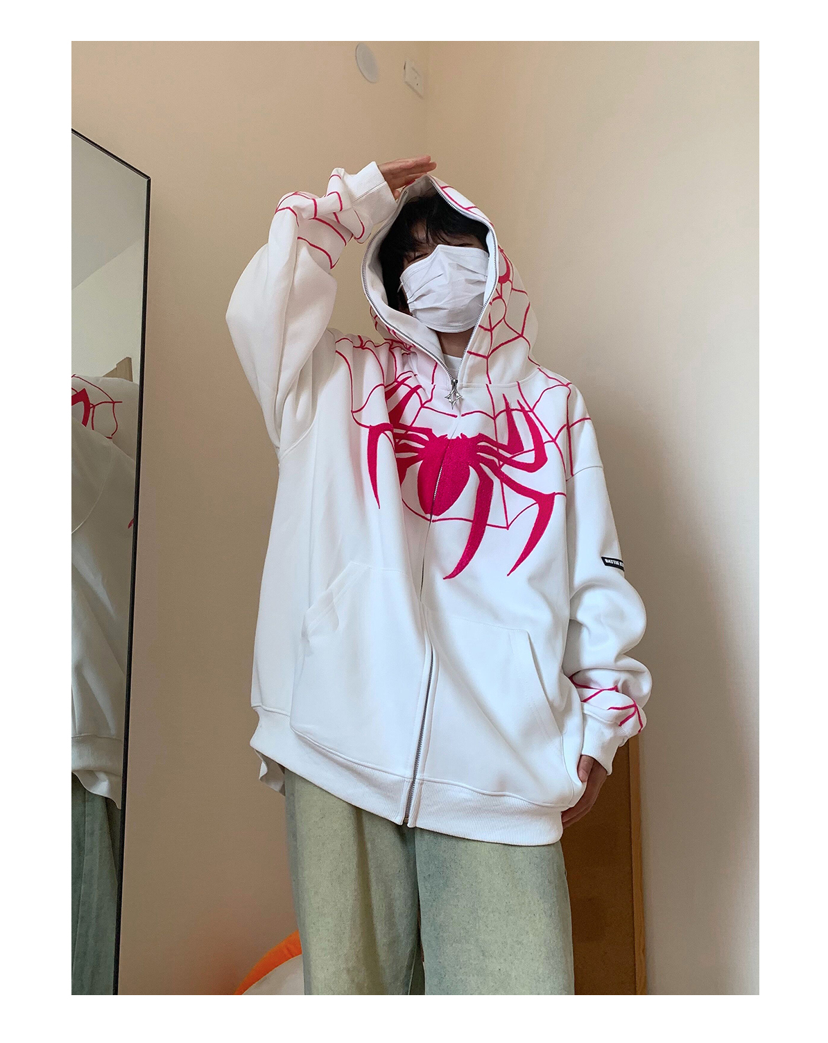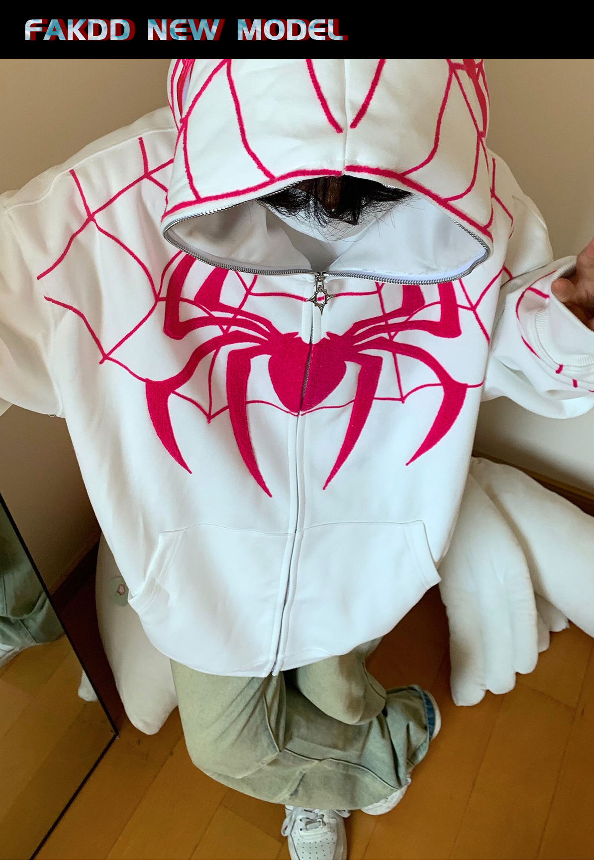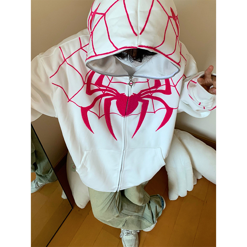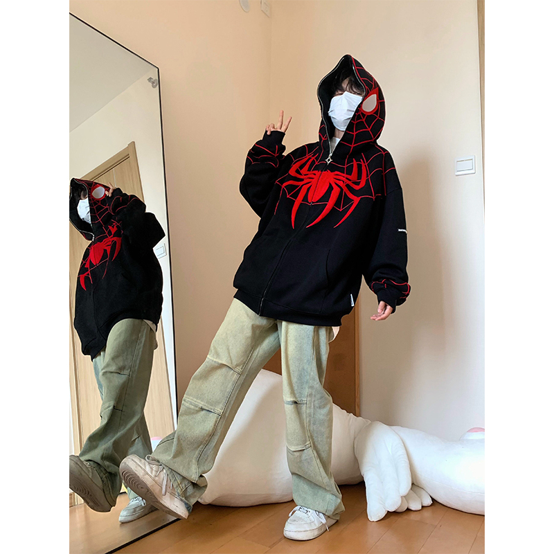 FAK刀刀 蜘蛛刺繡開衫厚棉T女寬鬆連帽秋冬2023新款百搭情侶外套
