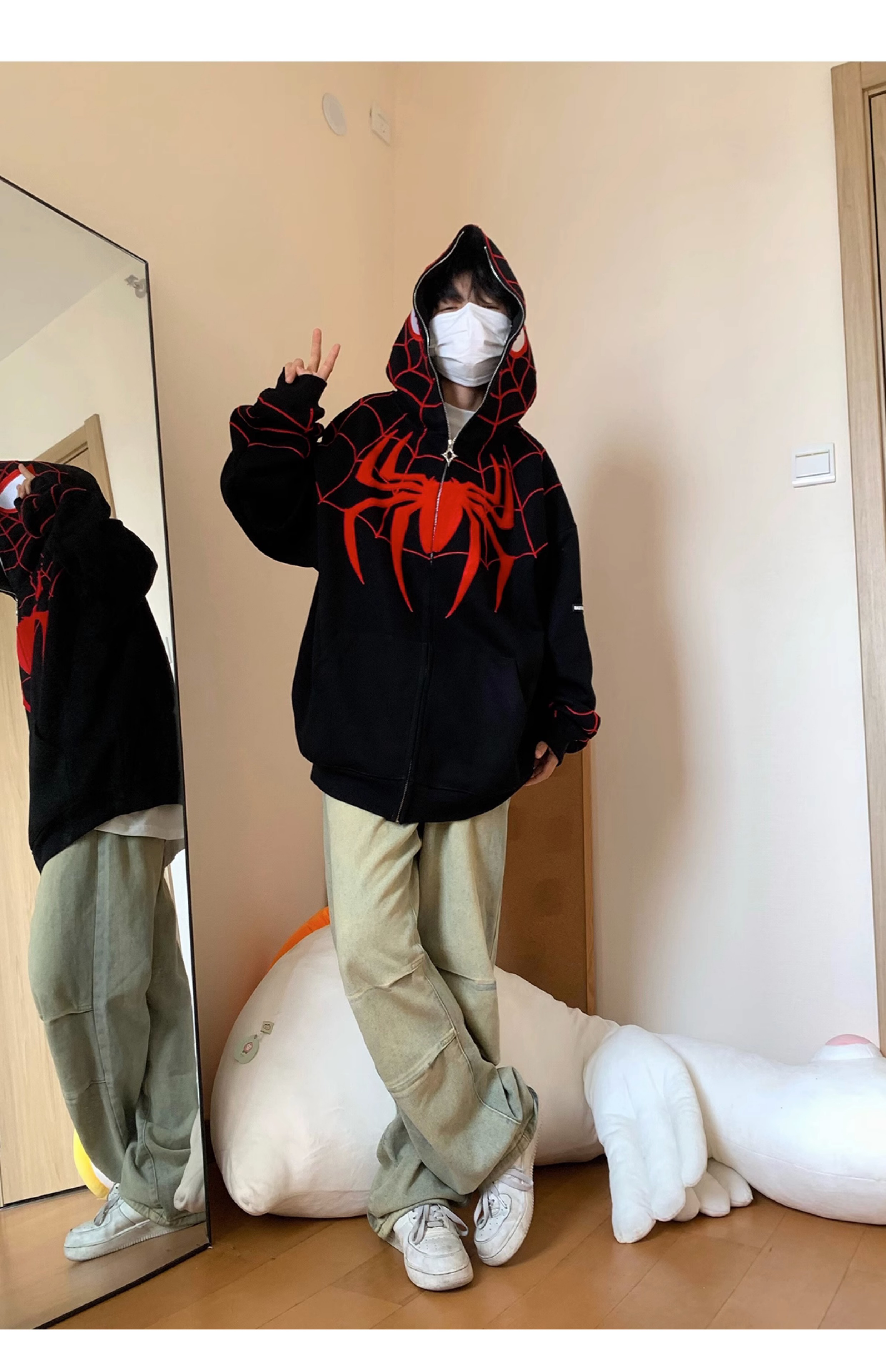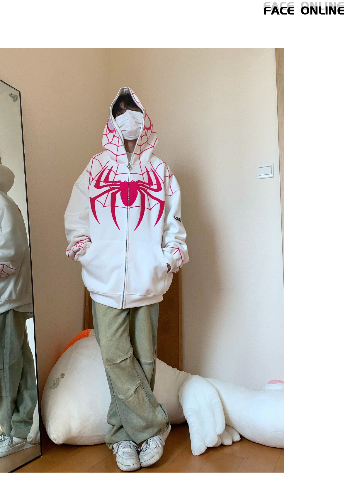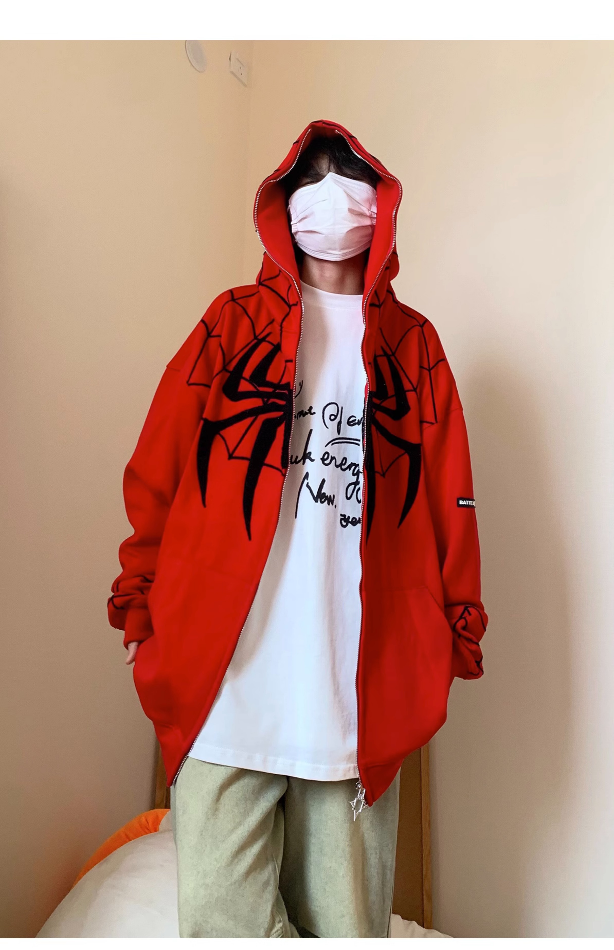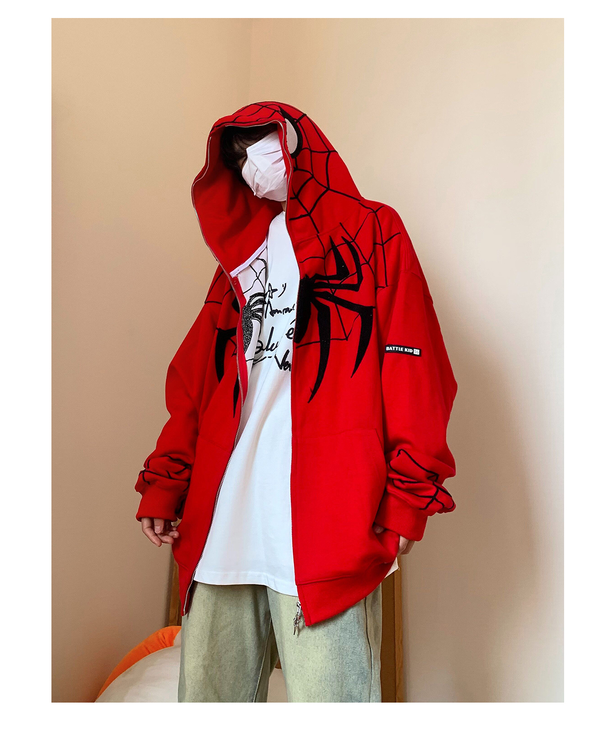 FAK刀刀 蜘蛛刺繡開衫厚棉T女寬鬆連帽秋冬2023新款百搭情侶外套