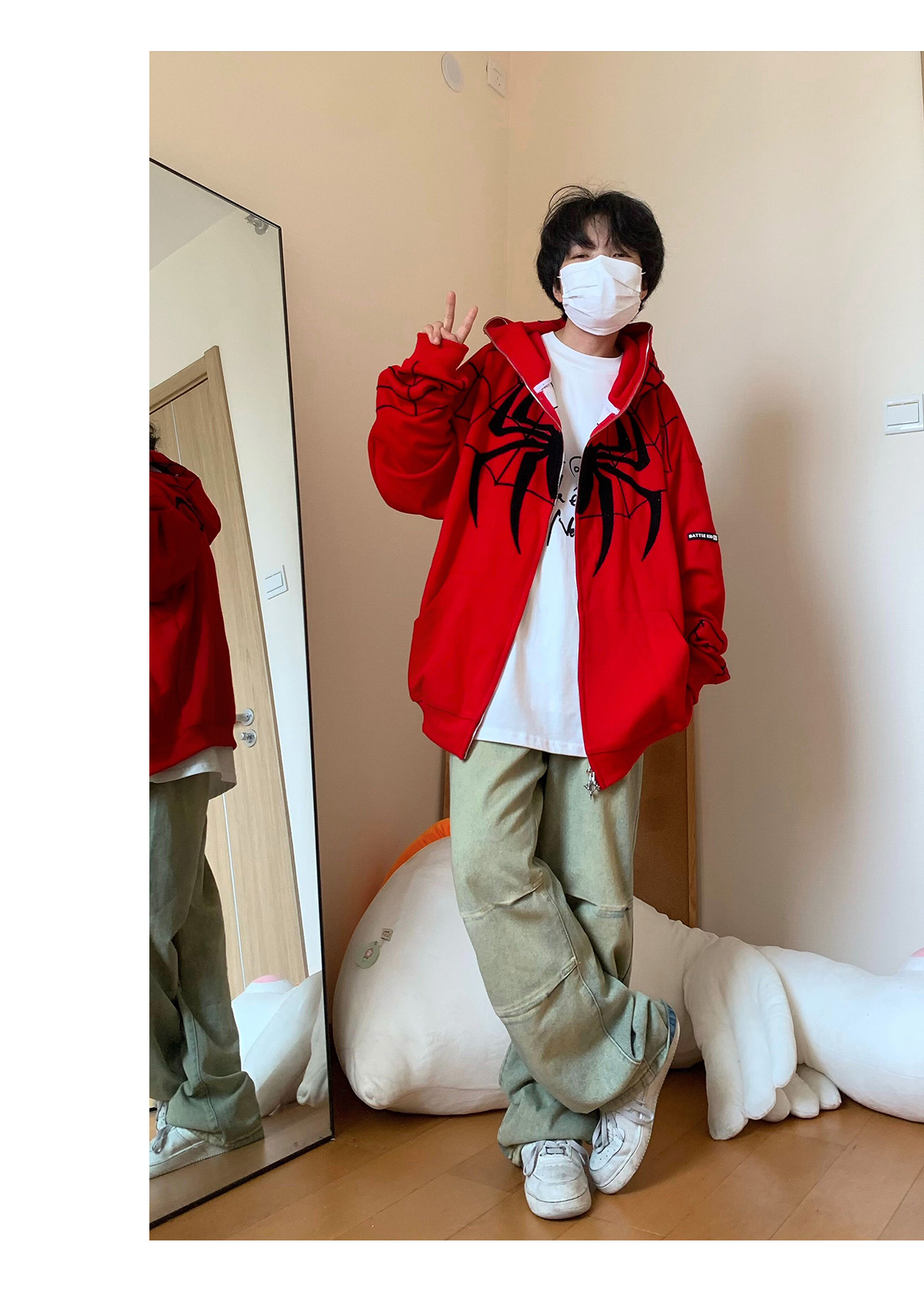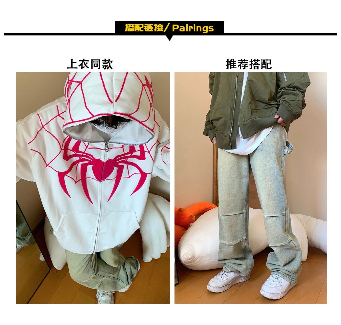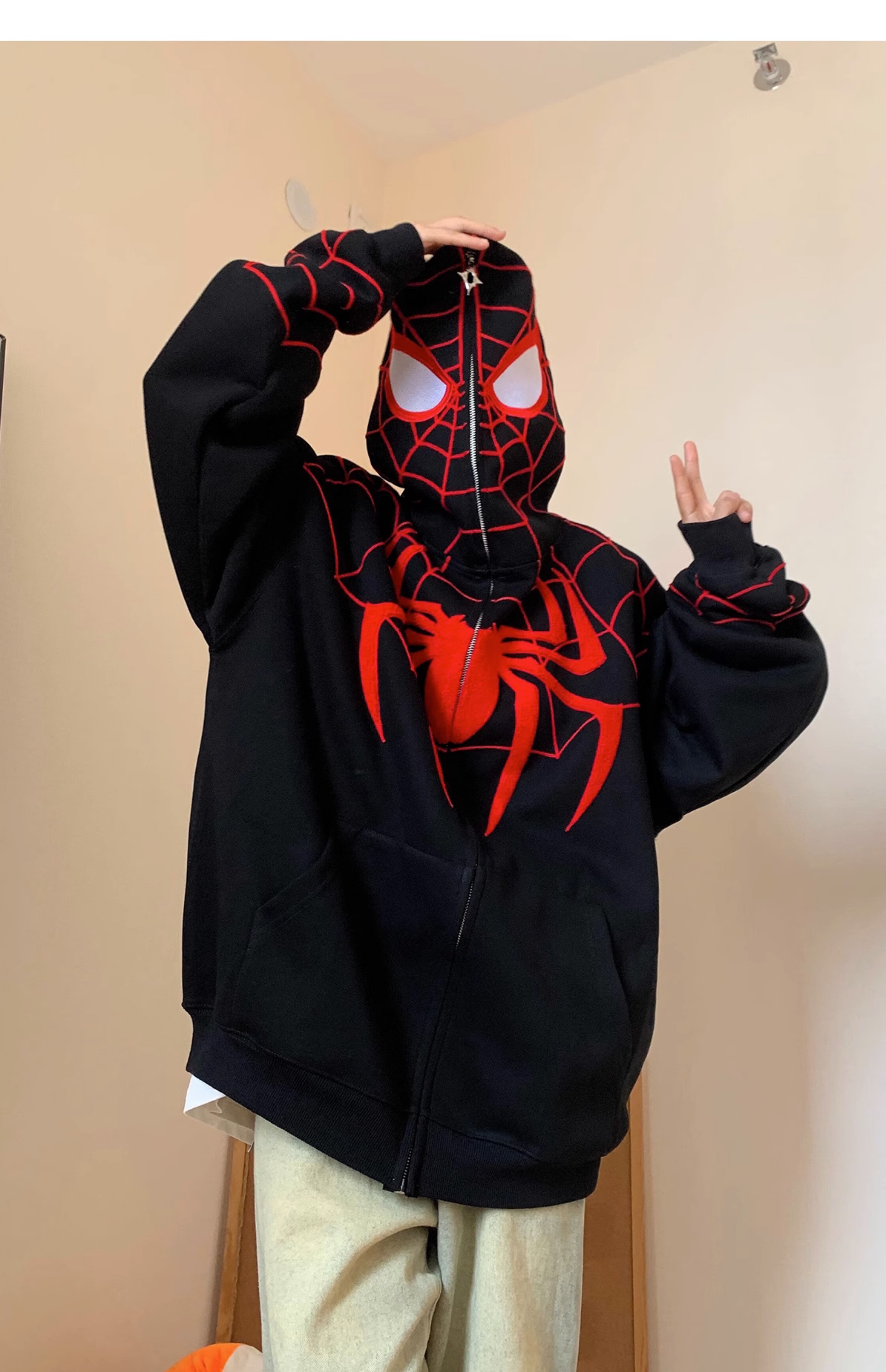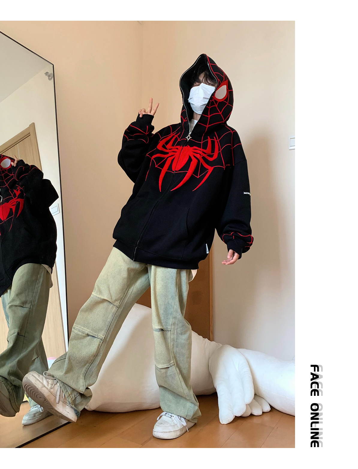 FAK刀刀 蜘蛛刺繡開衫厚棉T女寬鬆連帽秋冬2023新款百搭情侶外套