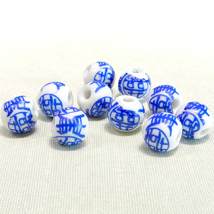 厂家批发陶瓷散珠 青花瓷10mm陶瓷珠子中国结 陶瓷配珠香包书签