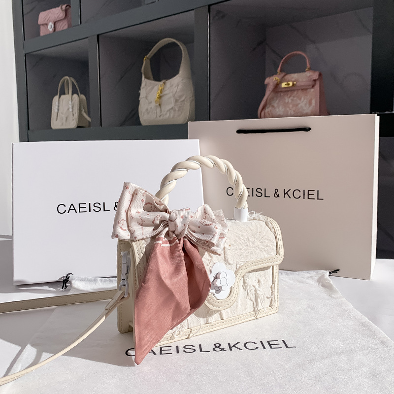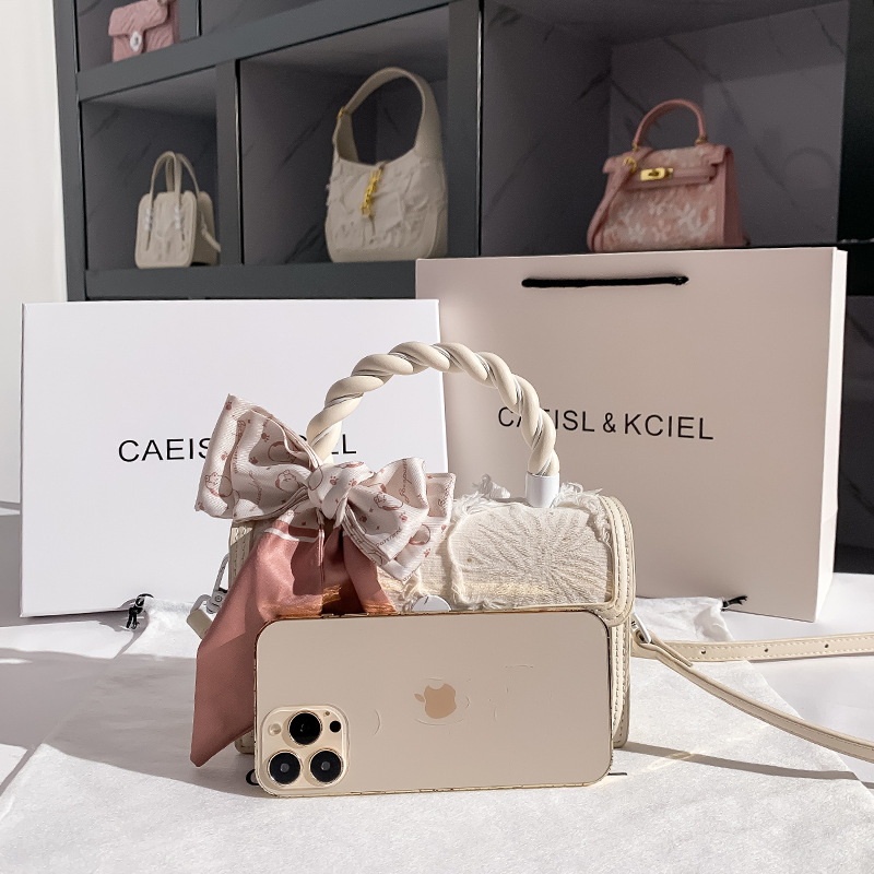 香港 情人节女包小众设计高级感蝴蝶结流苏小方包2023新款斜挎包