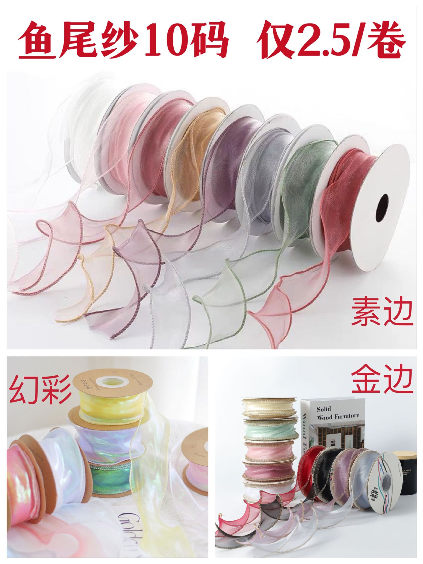批发鱼尾纱丝带生日花束蛋糕围边金边鱼尾蕾丝波浪鲜花束DIY包装