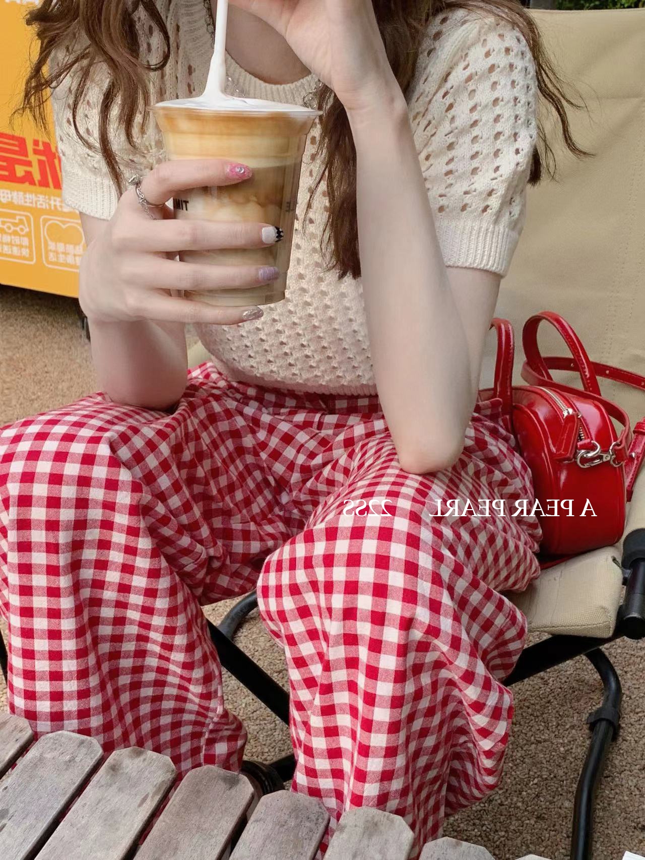 格子闊腿褲女夏韓版寬鬆休閒時尚氣質百搭可愛減齡高腰慵懶風褲子