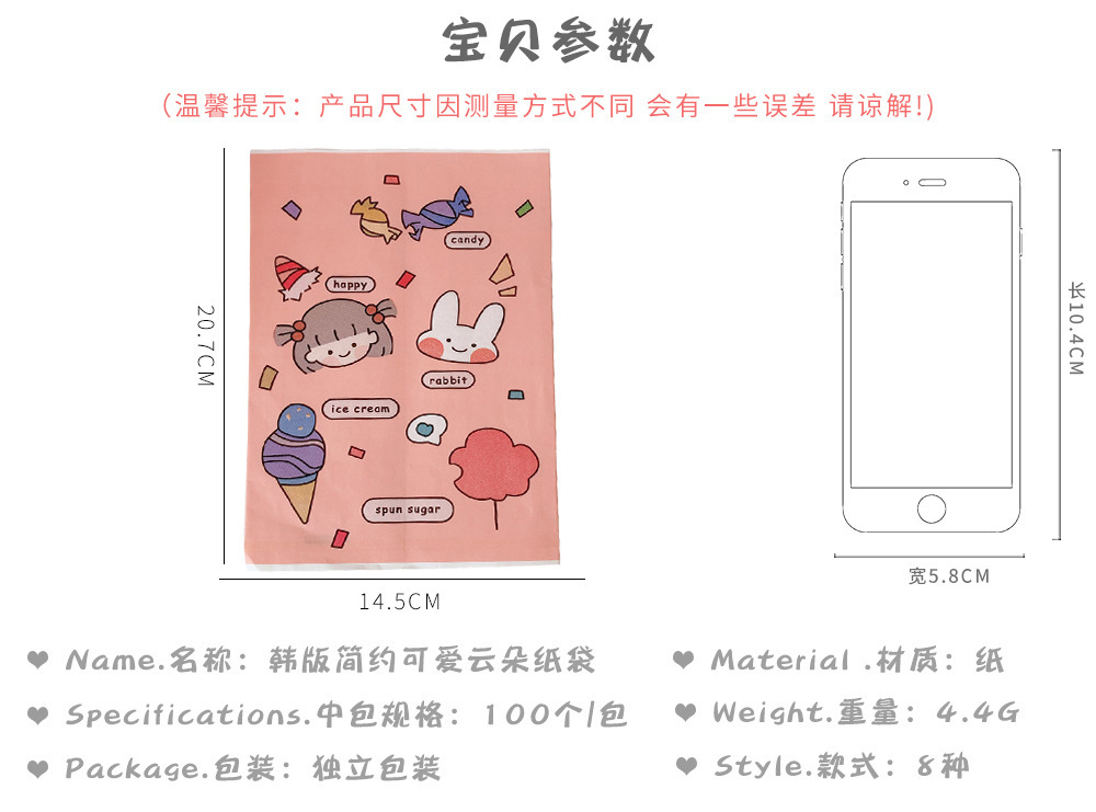 韩版简约ins风纸质收纳袋卡通可爱云朵熊迷你纸袋子摆拍装饰道具