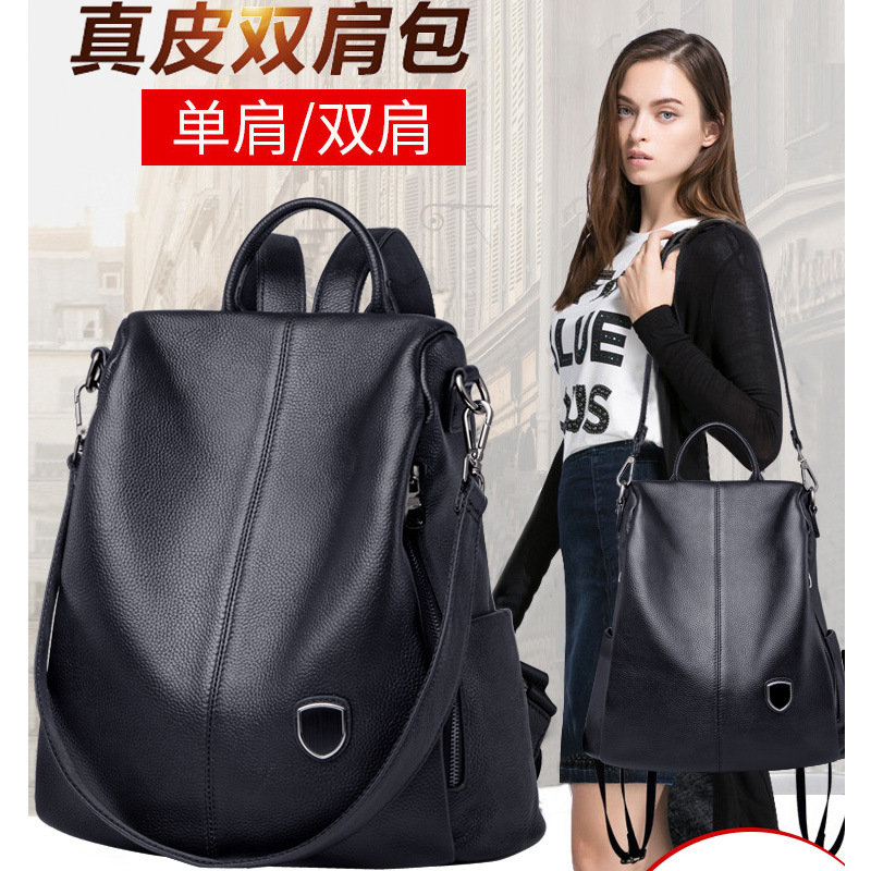 2022新款头层牛皮真皮防盗女士背包 通勤大容量韩版时尚双肩包女超值价:¥145