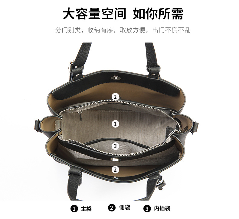 包内部结构 拉链暗袋,手机袋,证件袋,夹层拉链袋