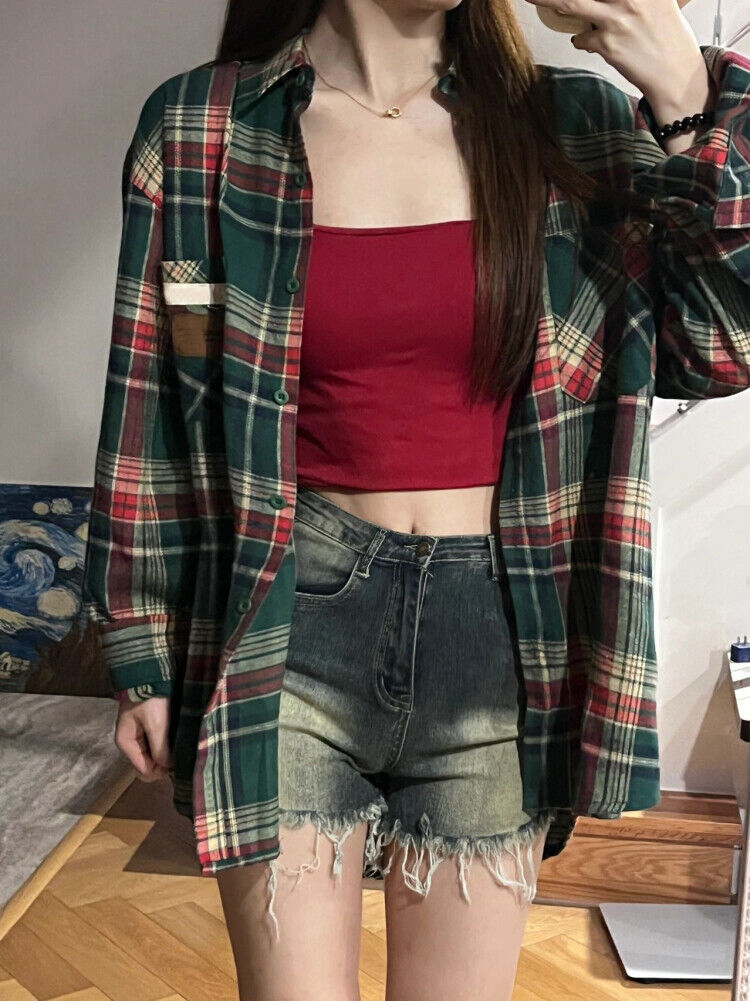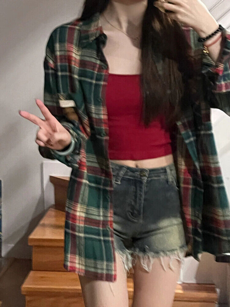 顏色分類 格子襯衫,短袖襯衫,紅色吊帶,牛仔短褲,收藏加購優先發貨