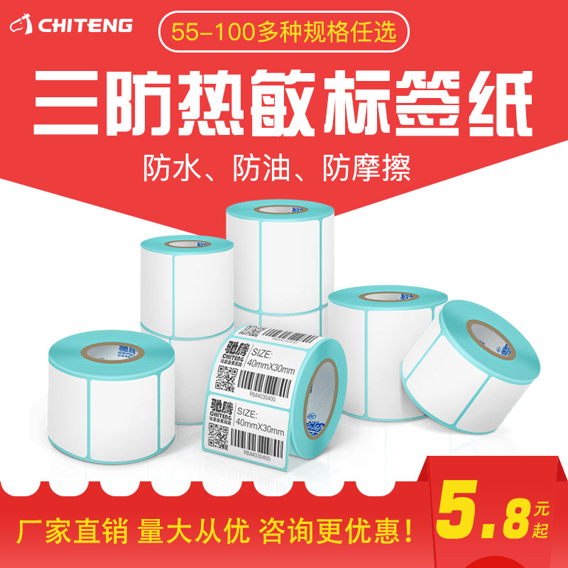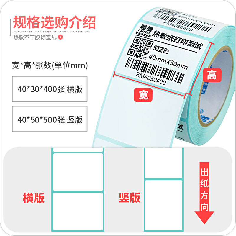 热敏纸55到100宽单排横版竖版不干胶标签纸打印条码纸空白价格纸
