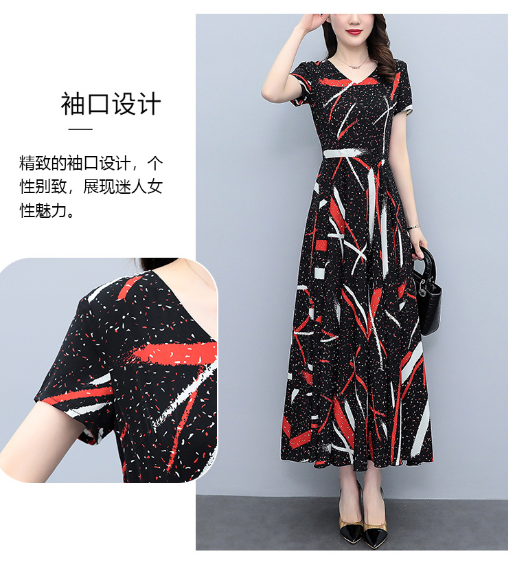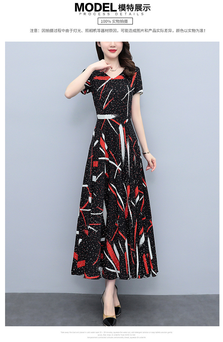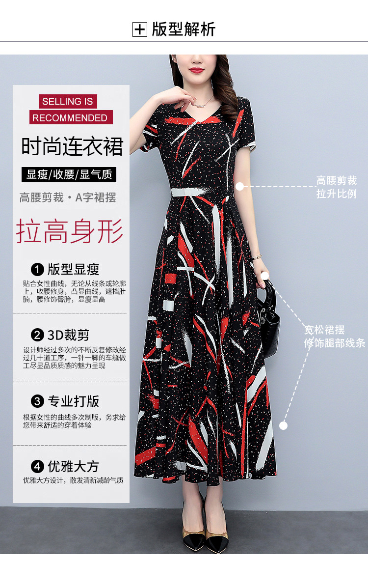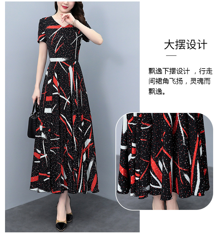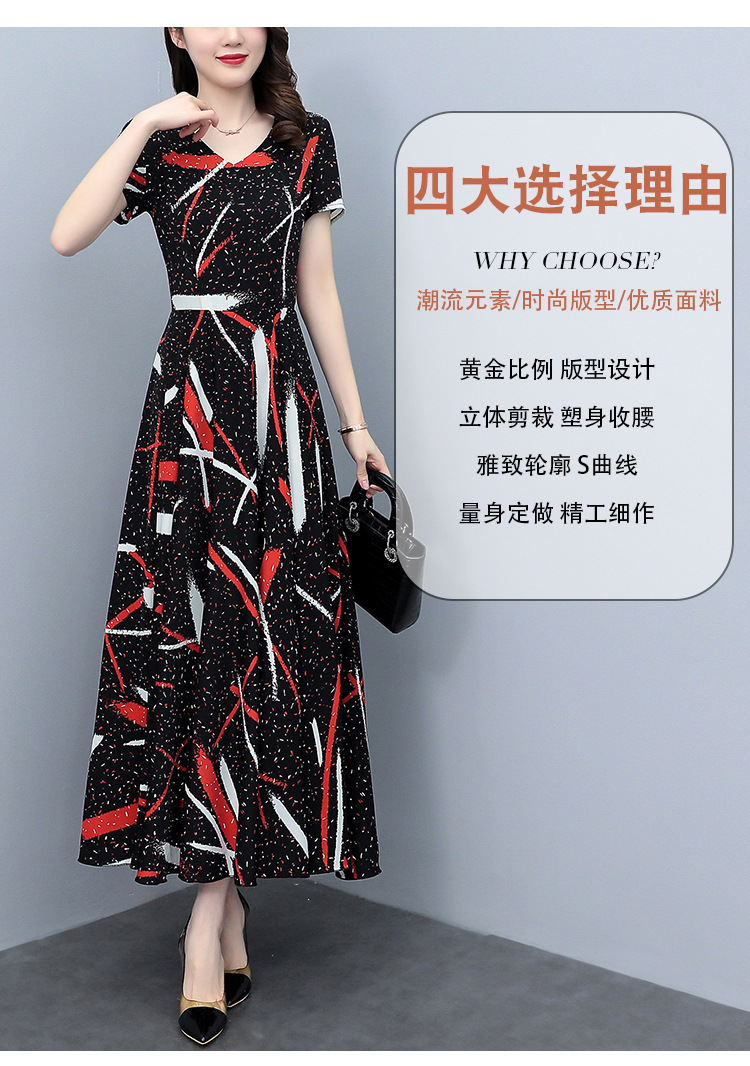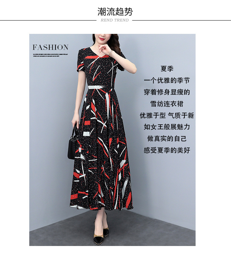 2023夏季新款雪纺碎花连衣裙大码胖mm收腰显瘦遮肚长裙