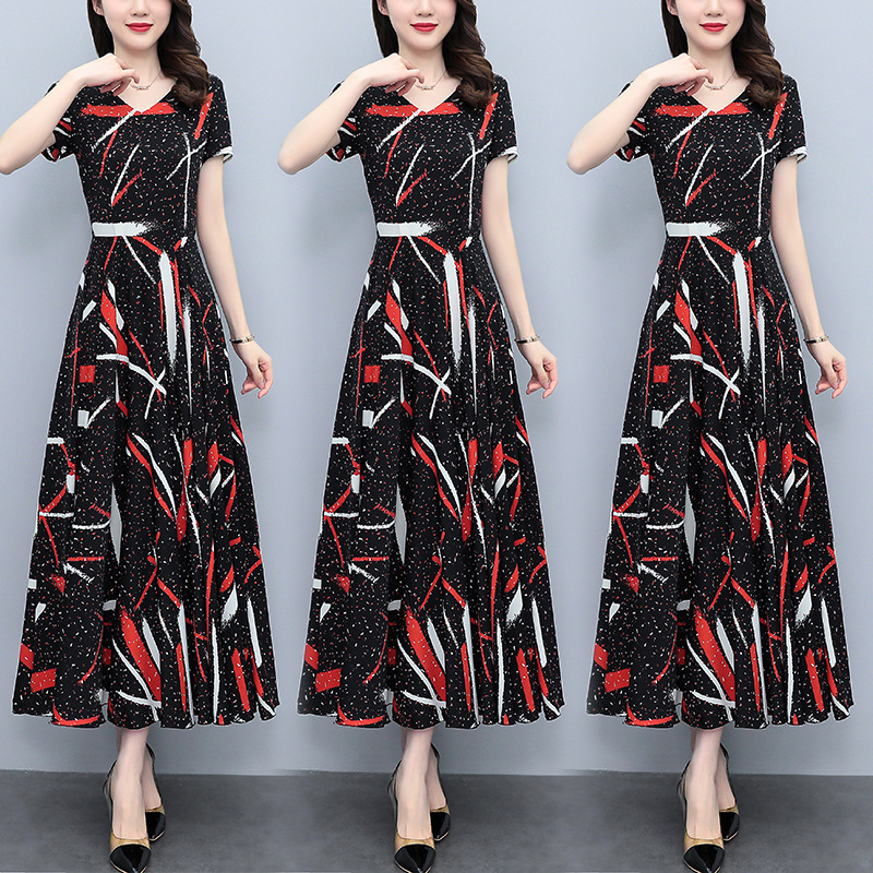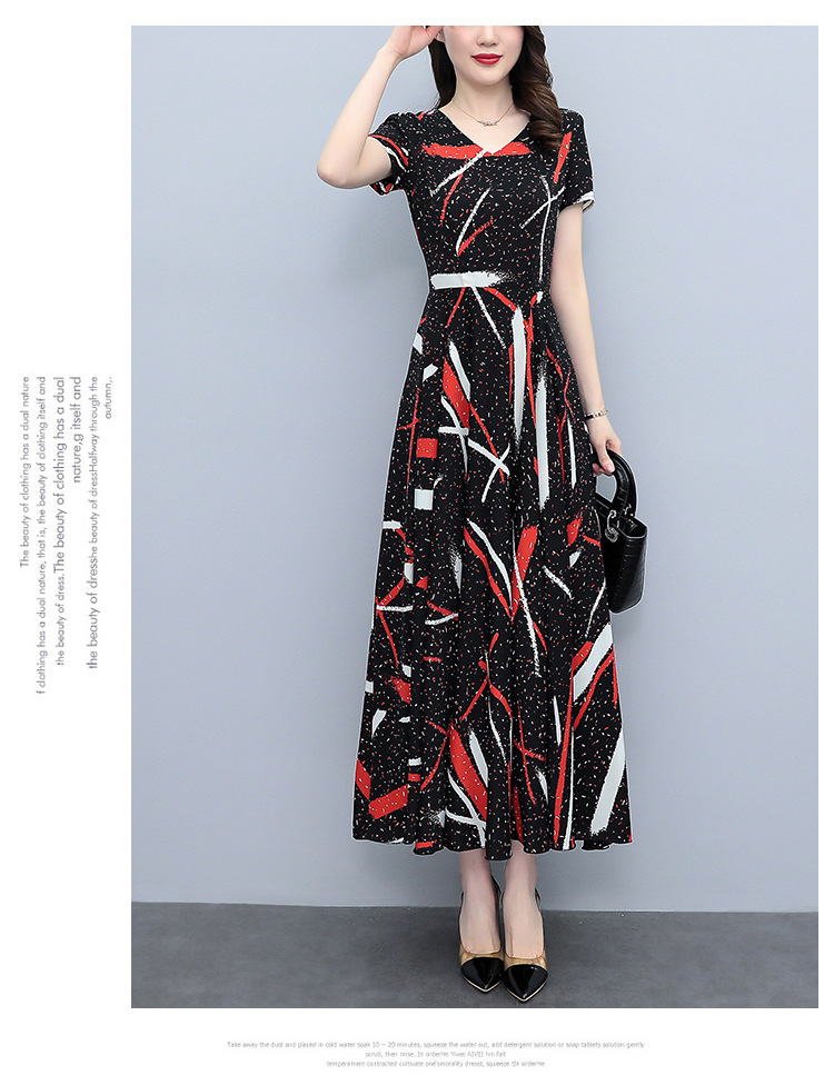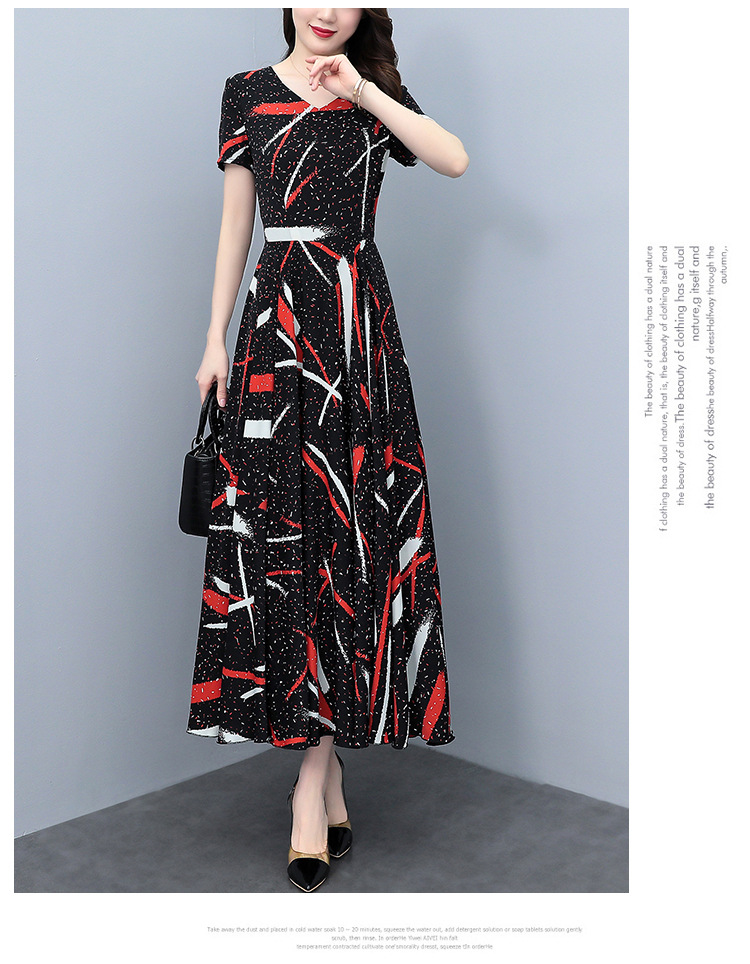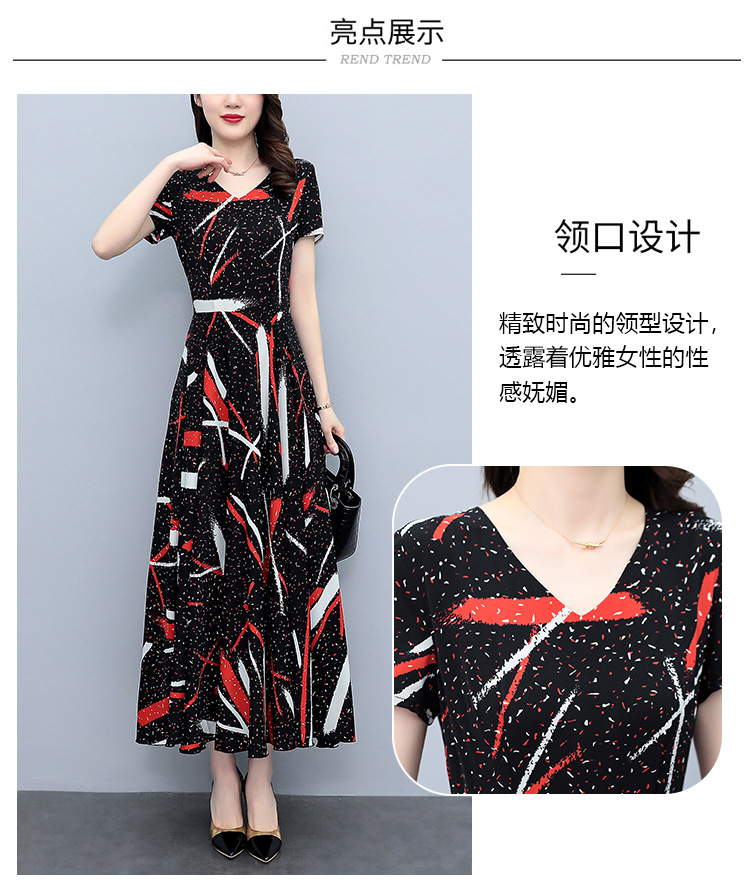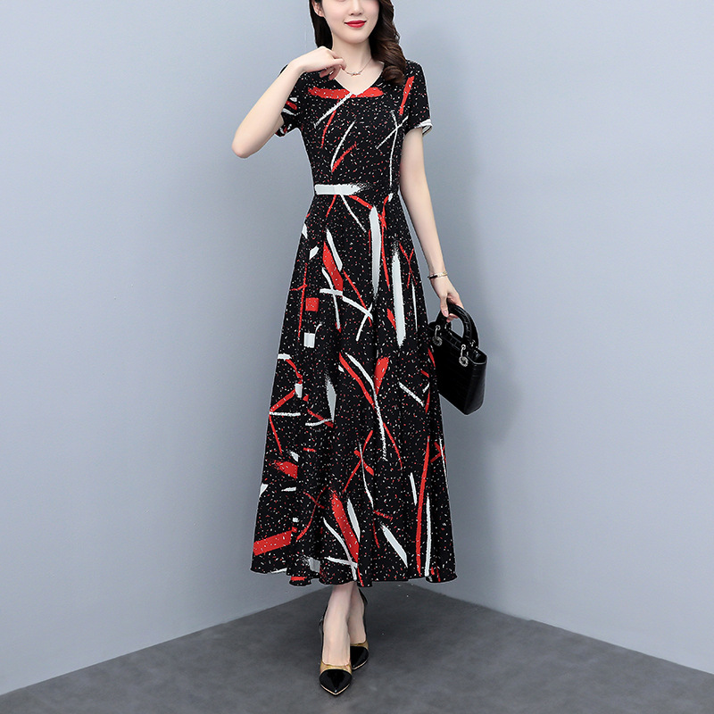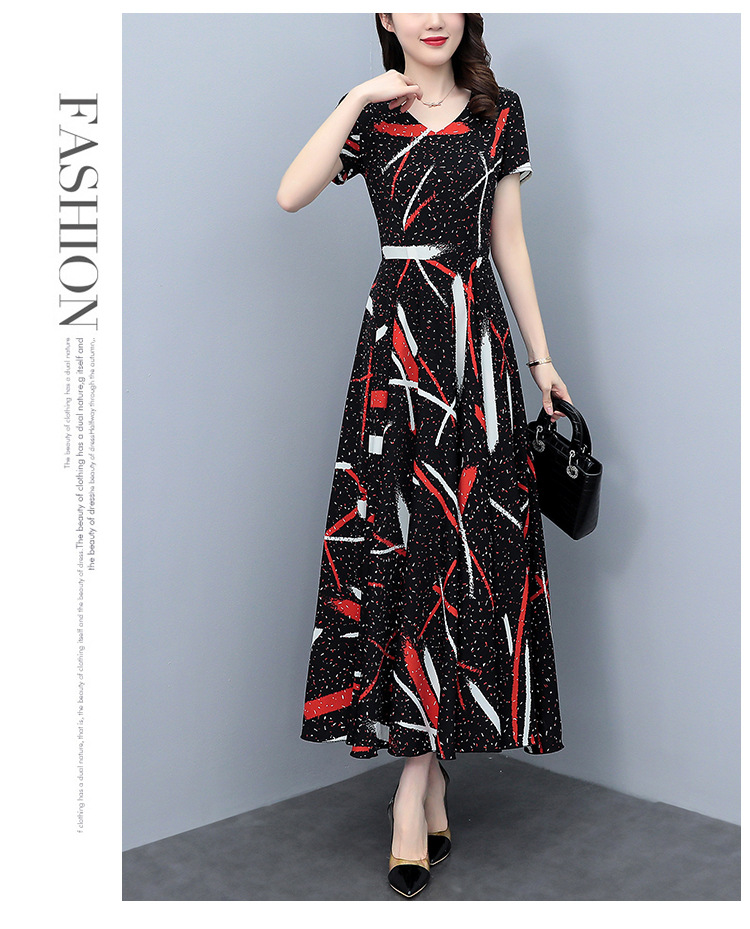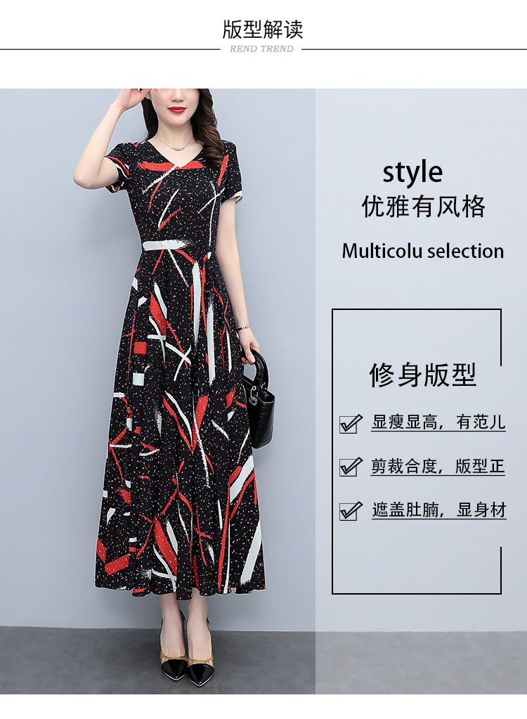 2023夏季新款雪纺碎花连衣裙大码胖mm收腰显瘦遮肚长裙