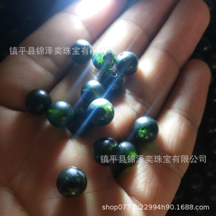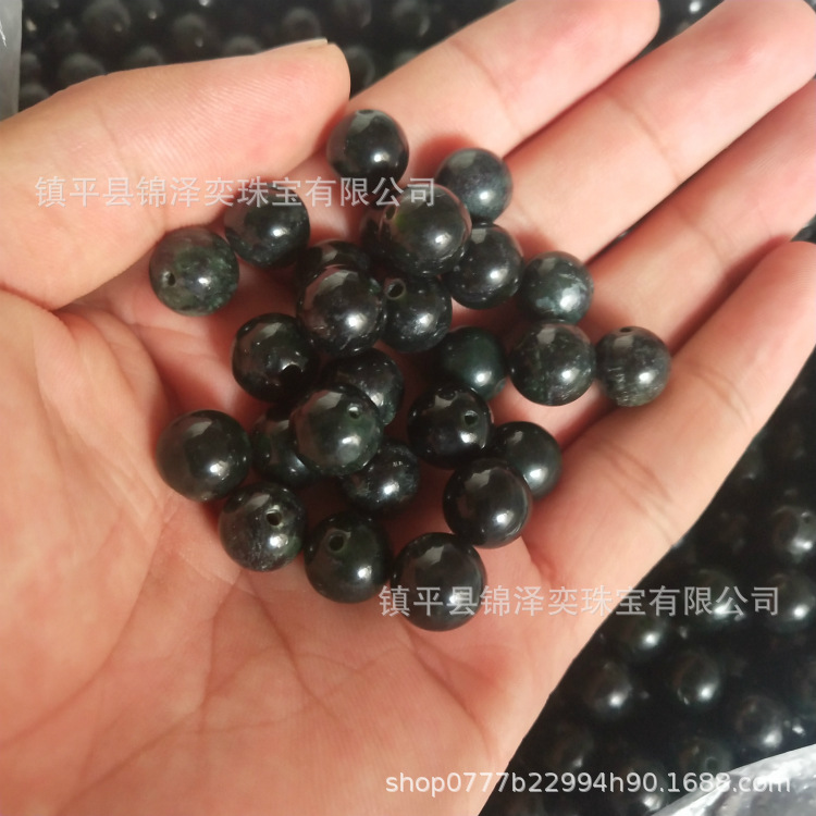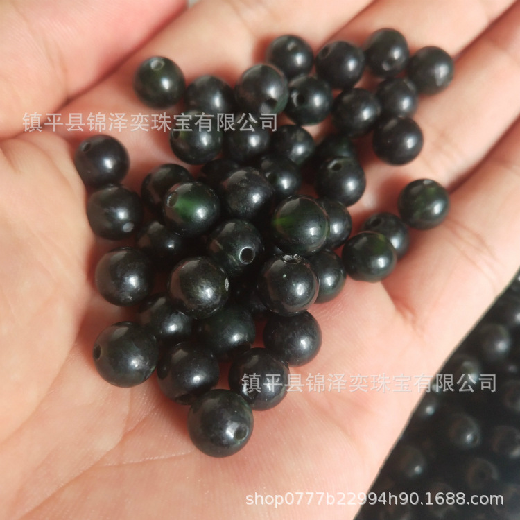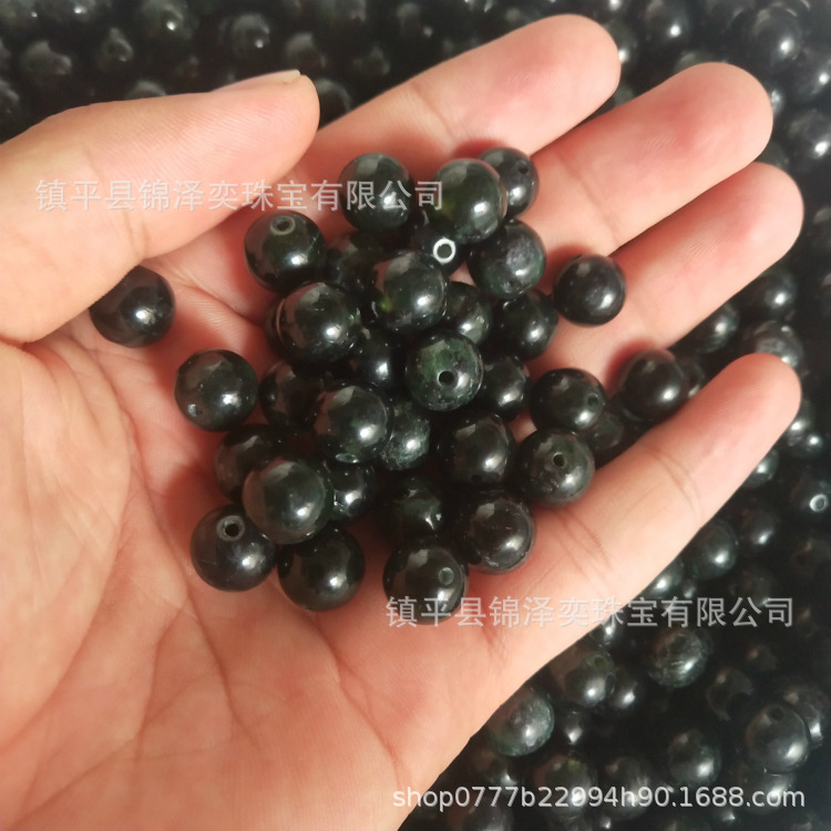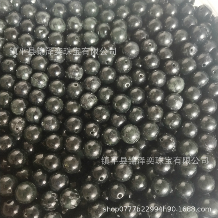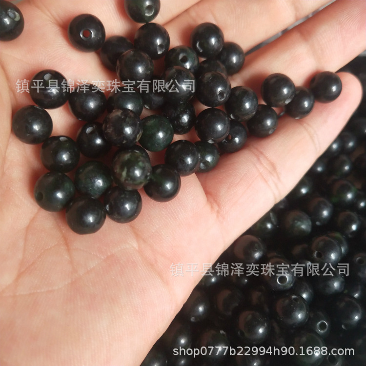厂家直销墨玉散珠批发透料墨绿玉珠子药王石圆珠蓝田玉珠蛇纹石玉