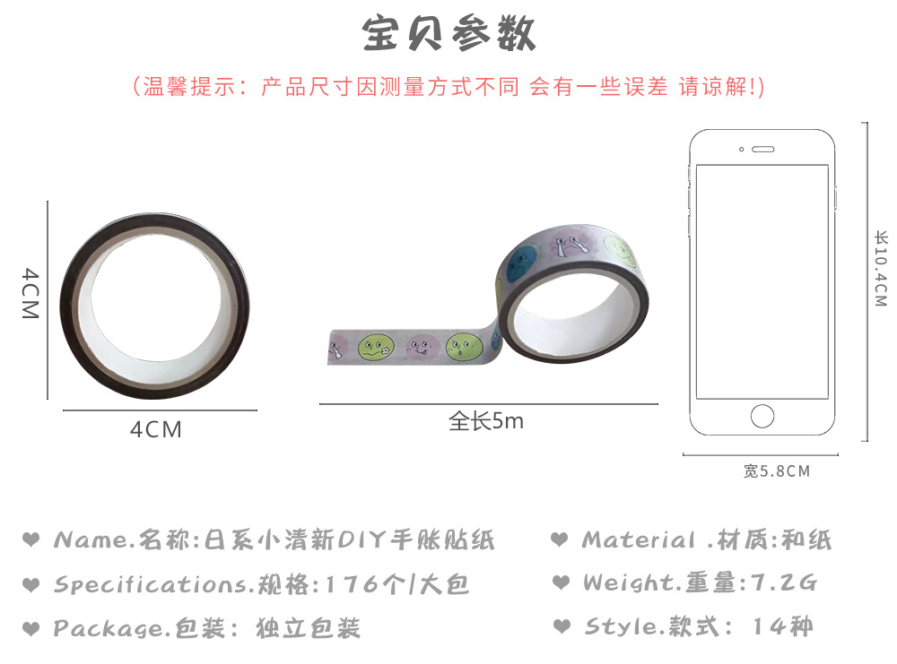日系少女心可爱DIY手账装饰可撕胶带纸学生卡通小熊彩蛋和纸胶带
