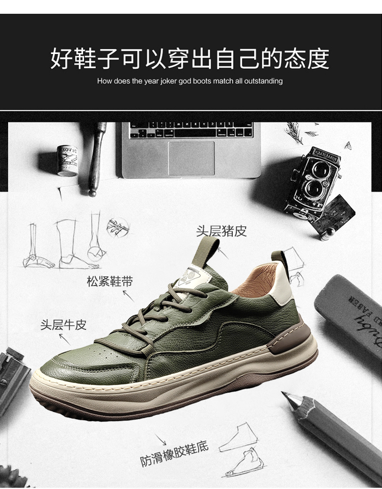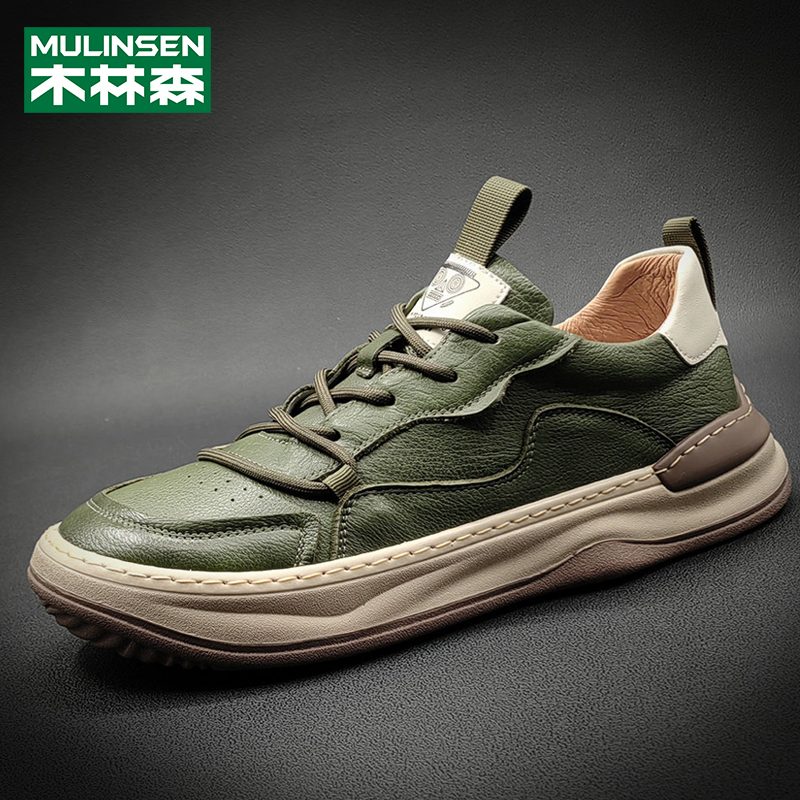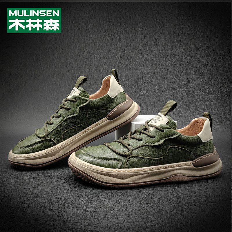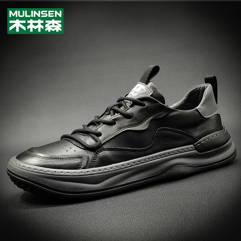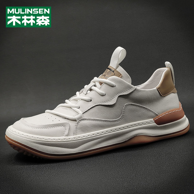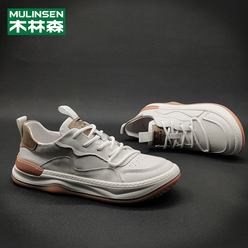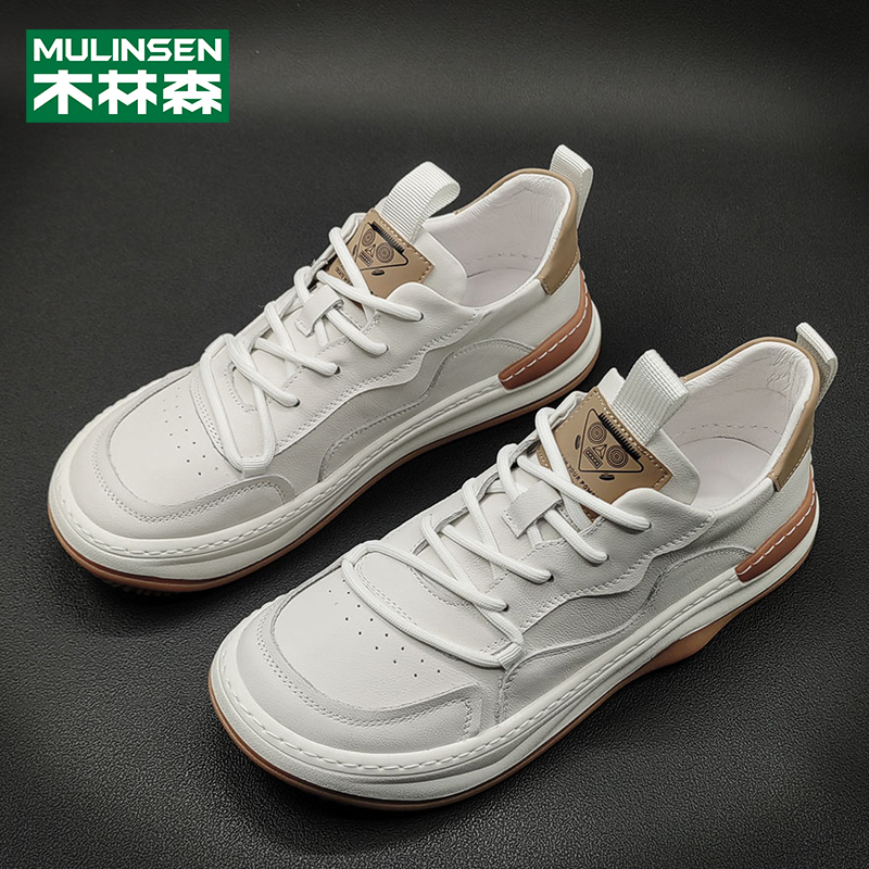 木林森男鞋2023新款夏季歐洲站真皮小醜鞋休閒板鞋男款透氣小白鞋