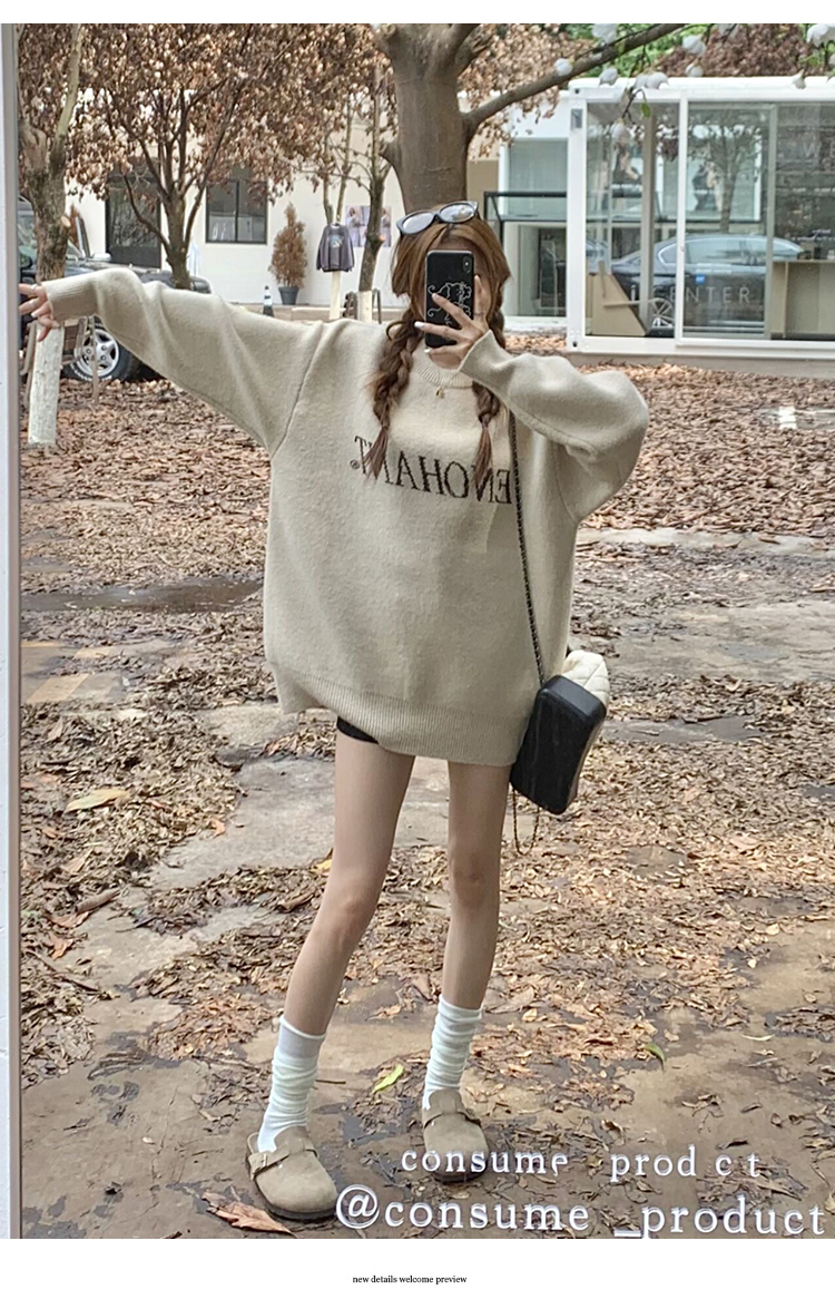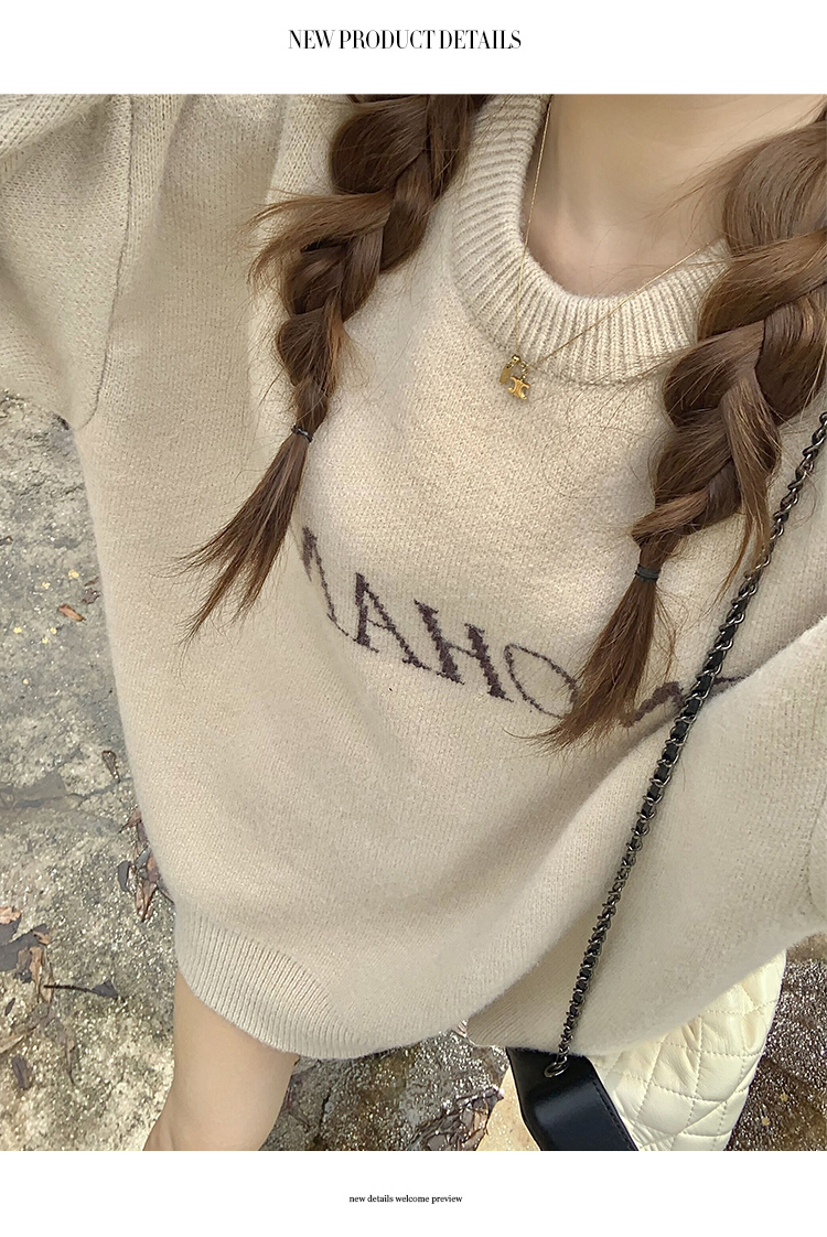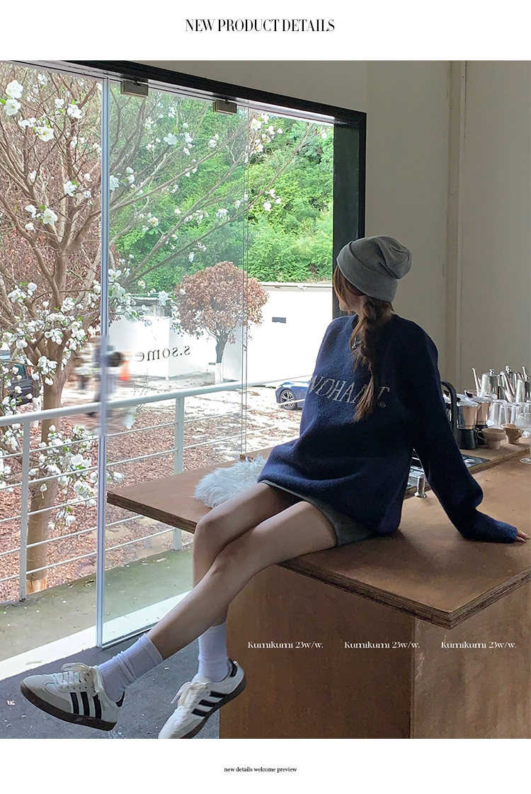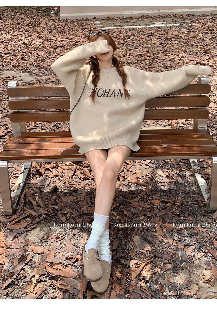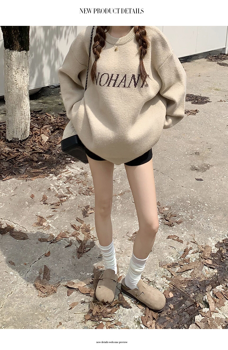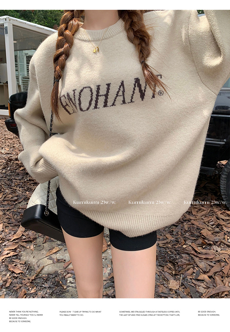 kumikumi慵懶風軟糯字母毛衣女秋季寬鬆套頭針織衫長袖情侶裝上衣