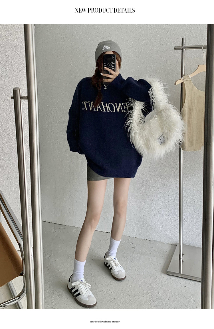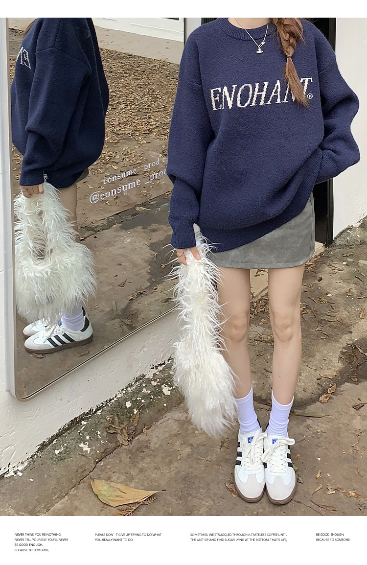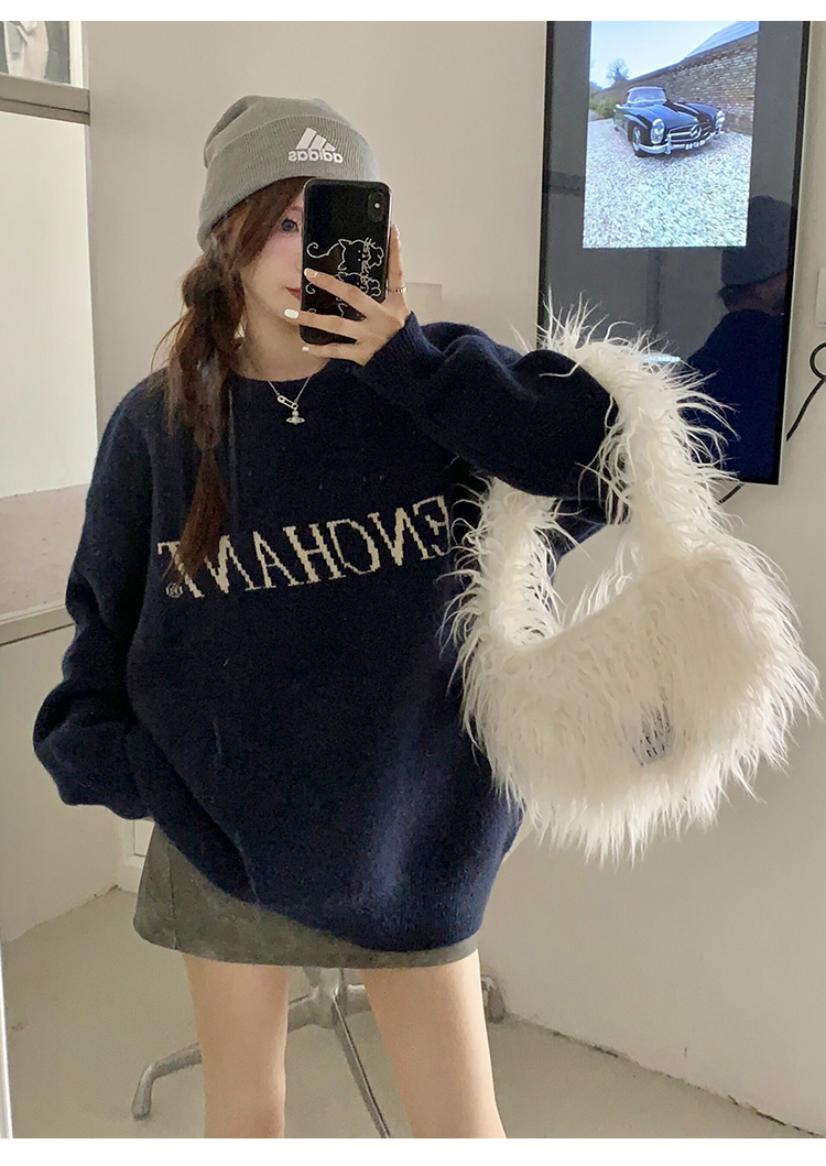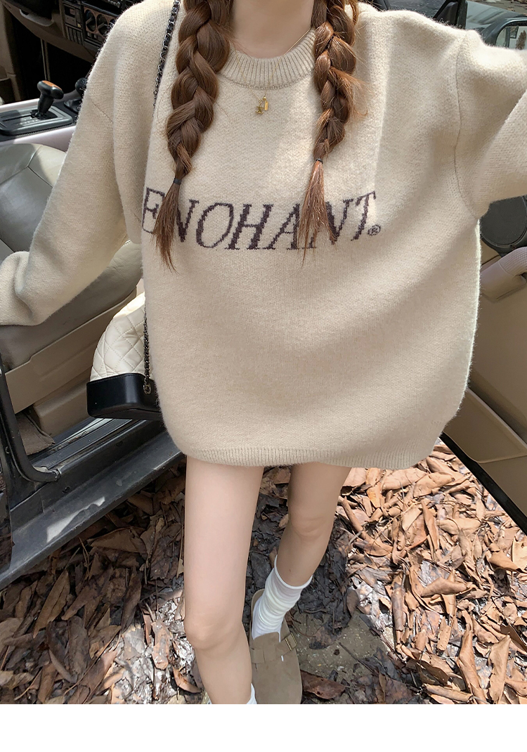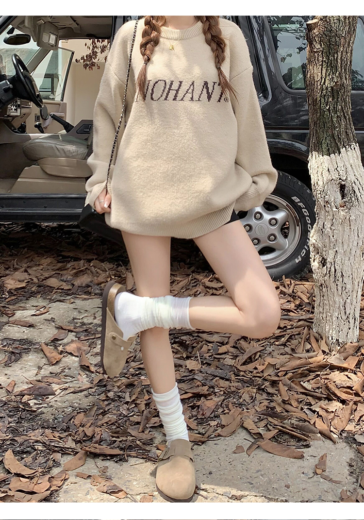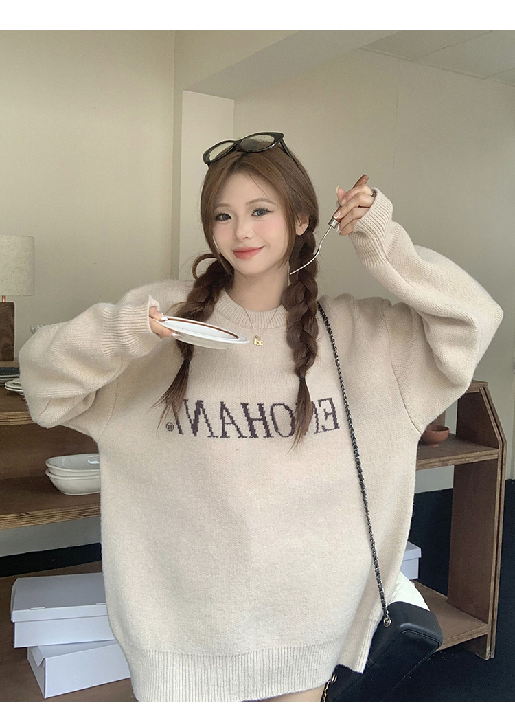 kumikumi慵懶風軟糯字母毛衣女秋季寬鬆套頭針織衫長袖情侶裝上衣