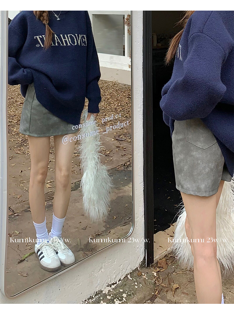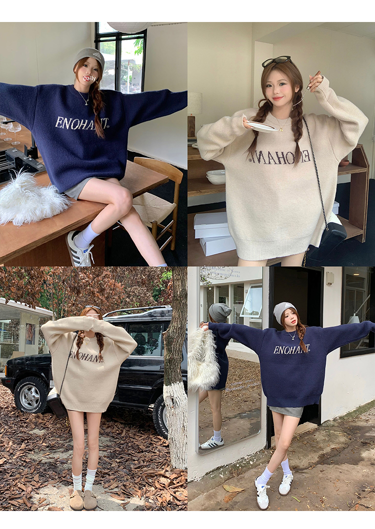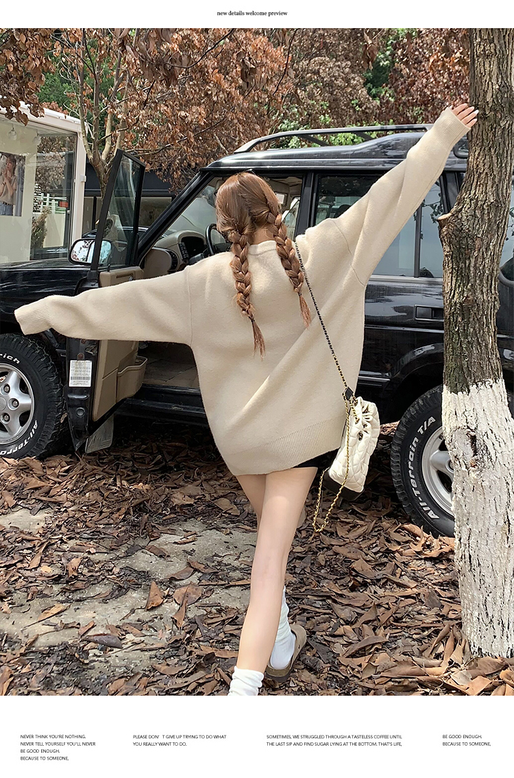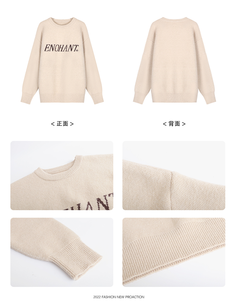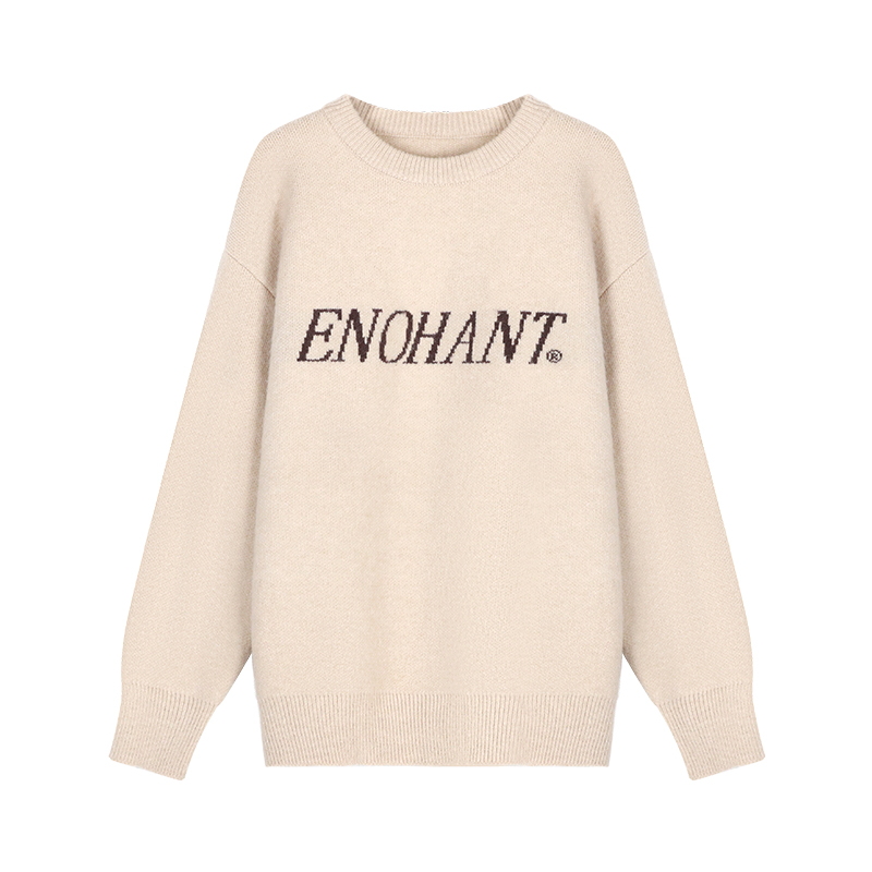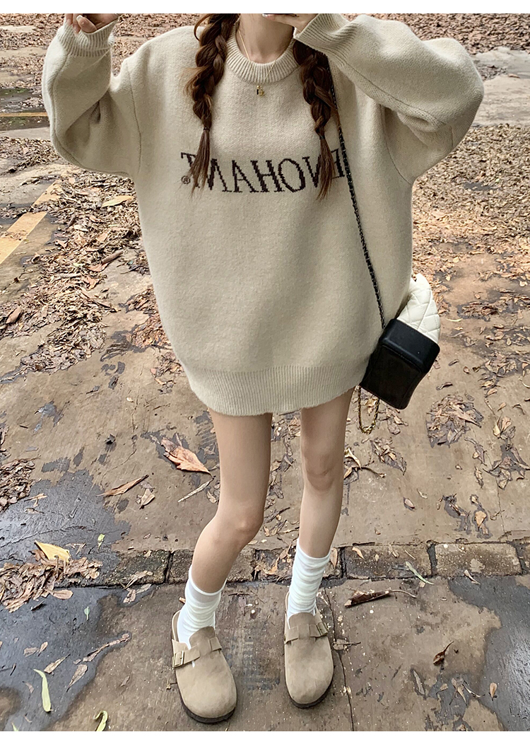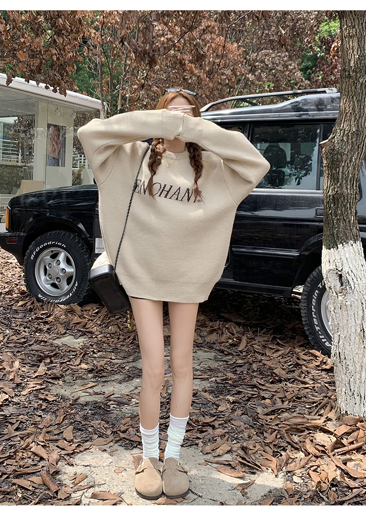 kumikumi慵懶風軟糯字母毛衣女秋季寬鬆套頭針織衫長袖情侶裝上衣
