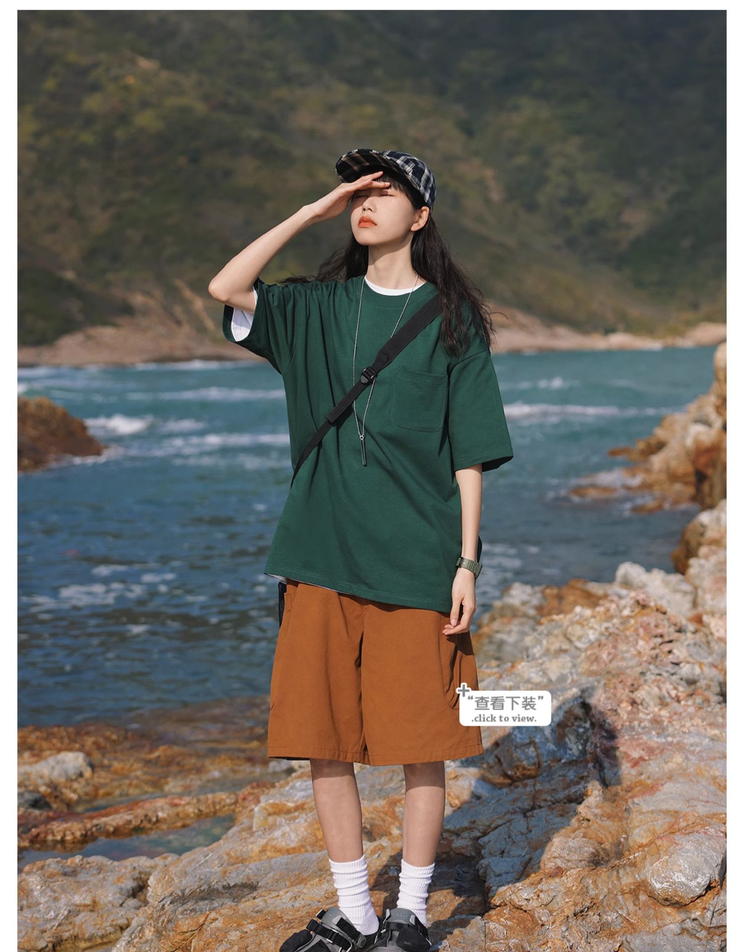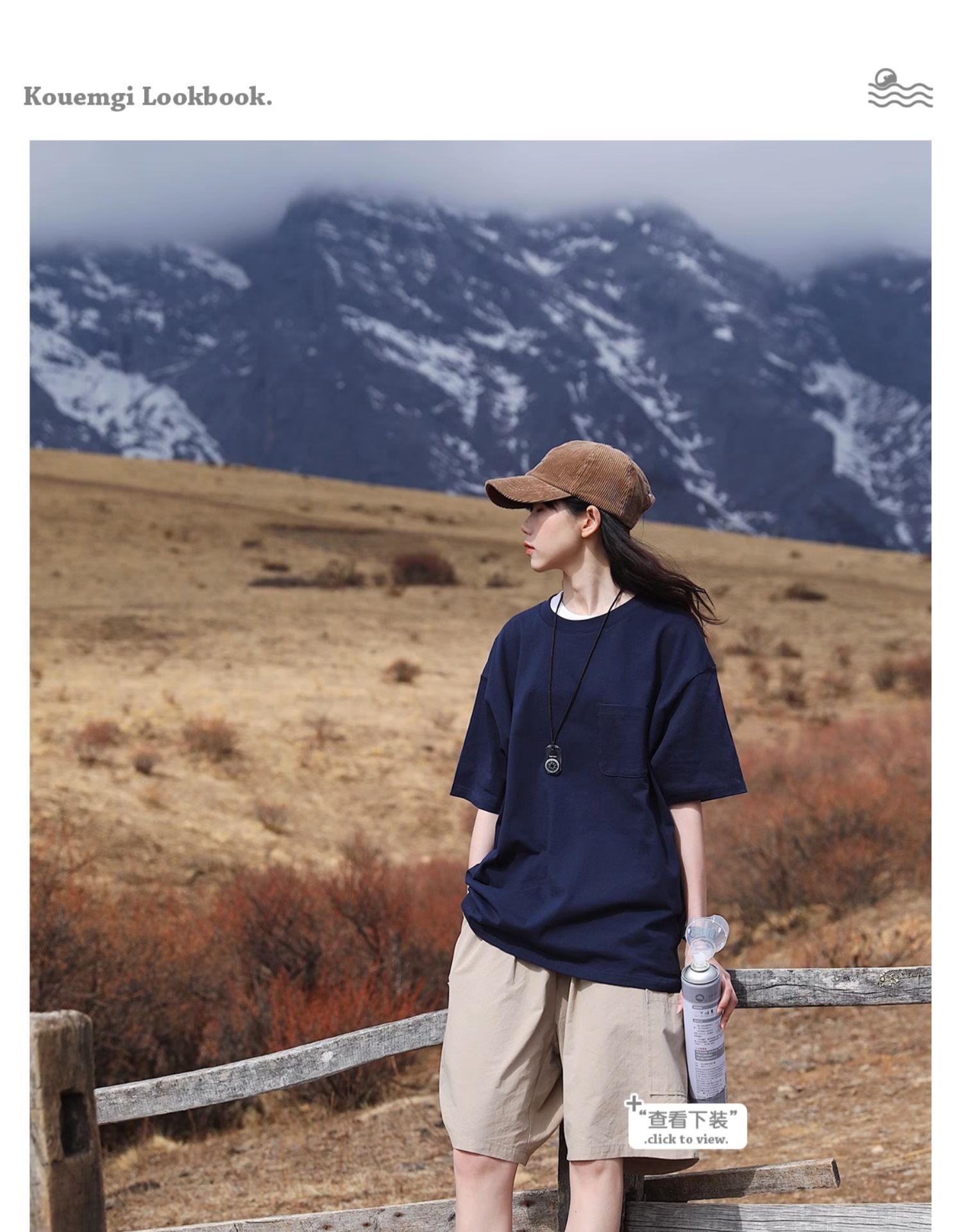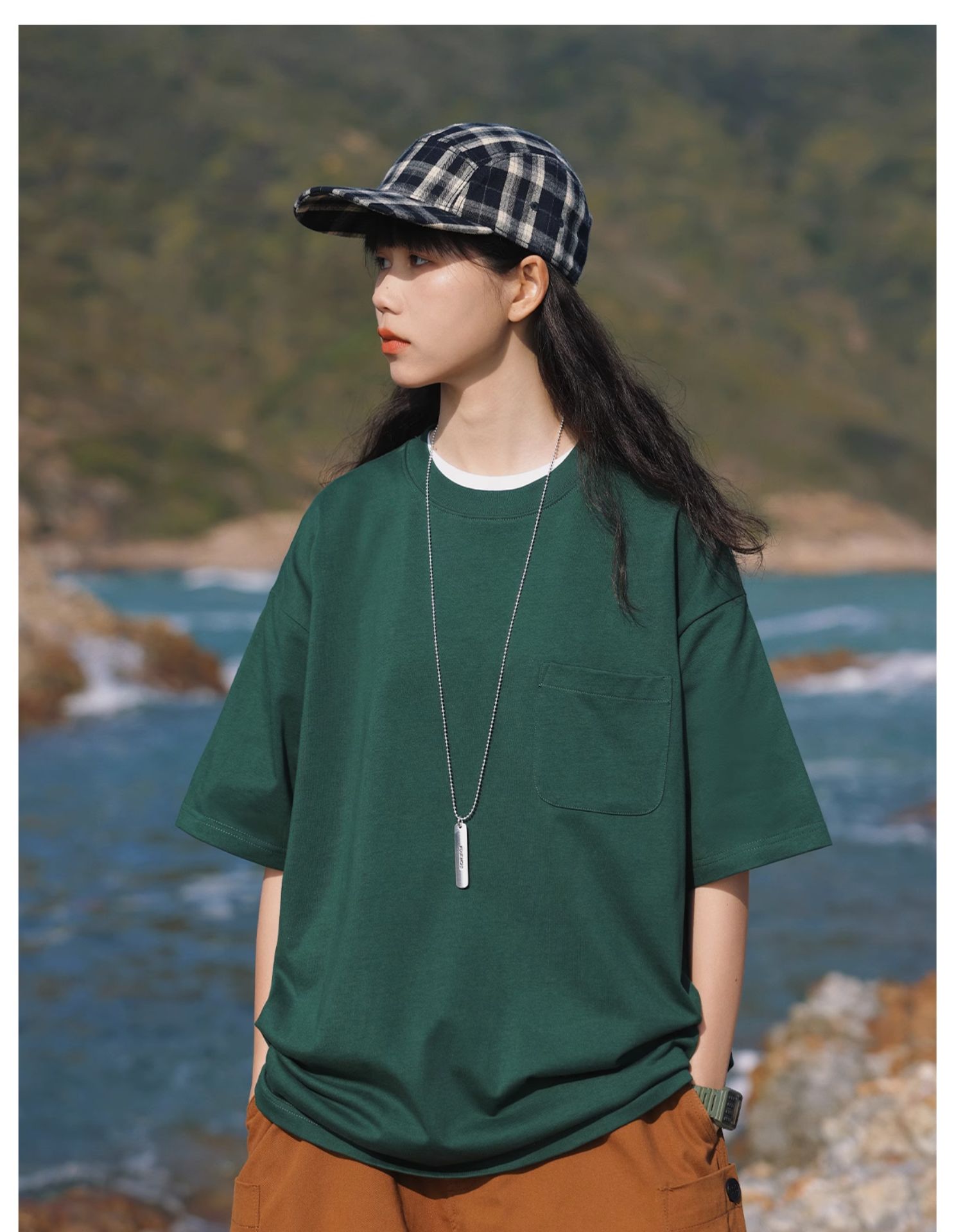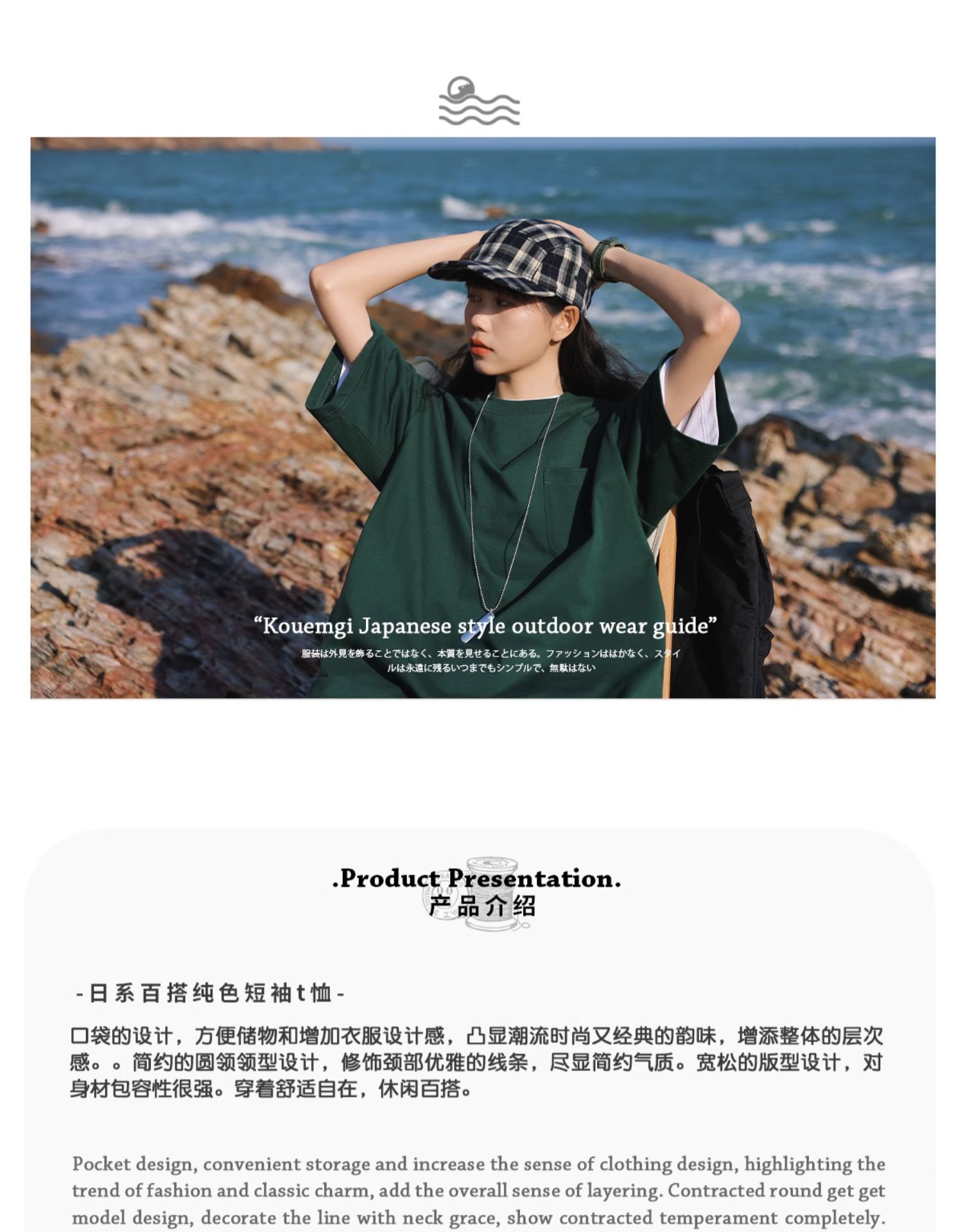KOUEMGI空味 日系夏季簡約純色短袖T恤男潮牌寬鬆情侶休閒圓領tee