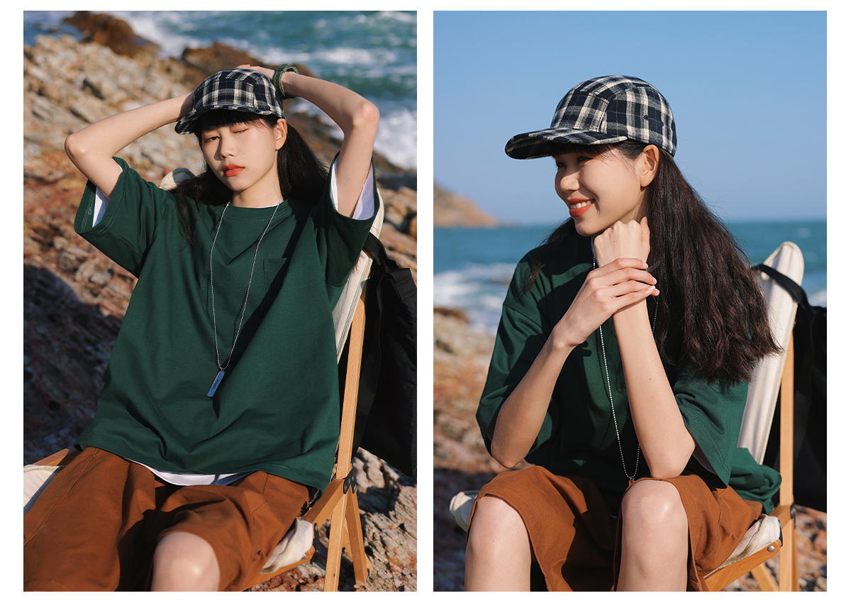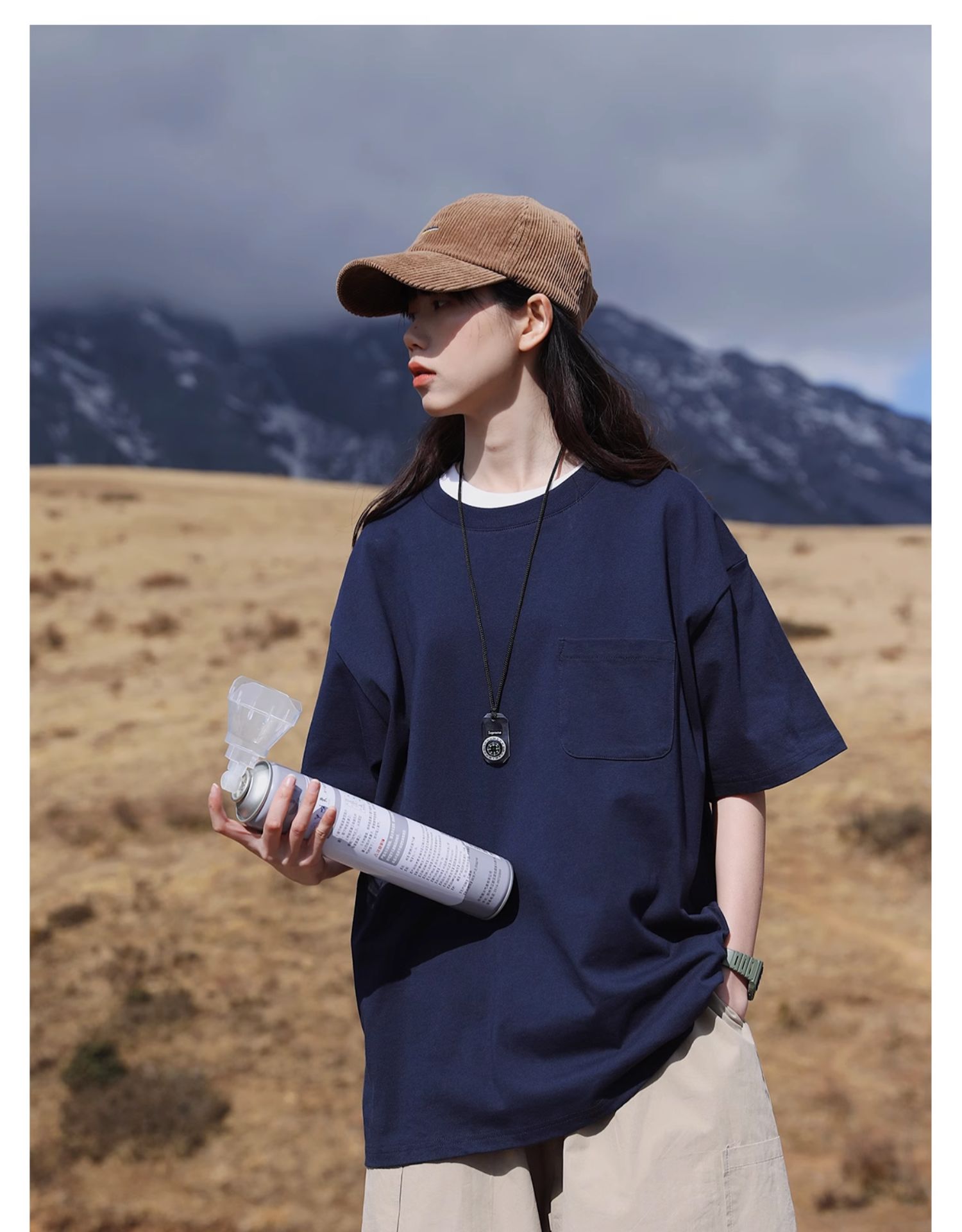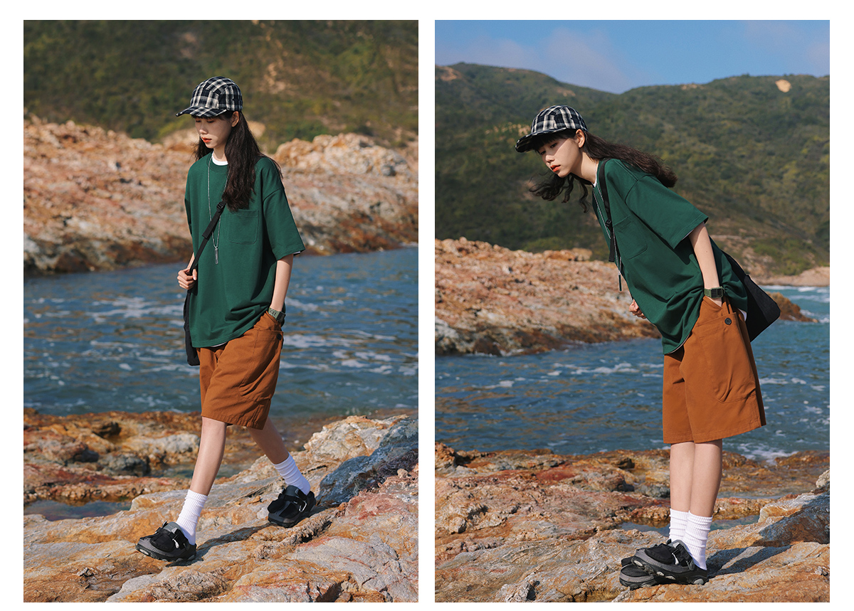 KOUEMGI空味 日系夏季簡約純色短袖T恤男潮牌寬鬆情侶休閒圓領tee