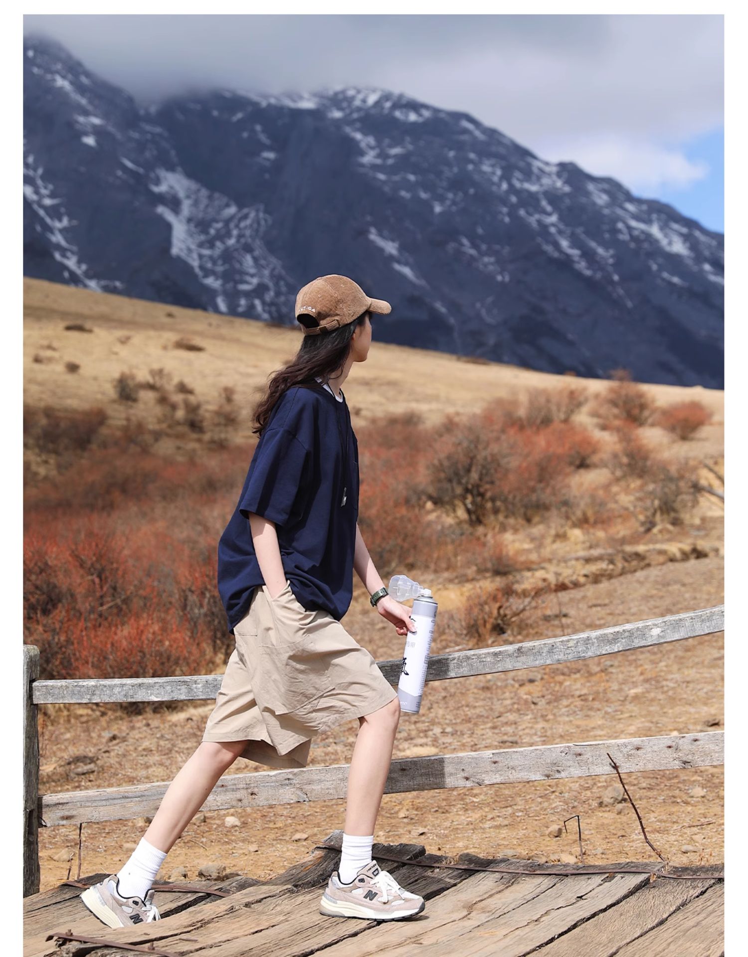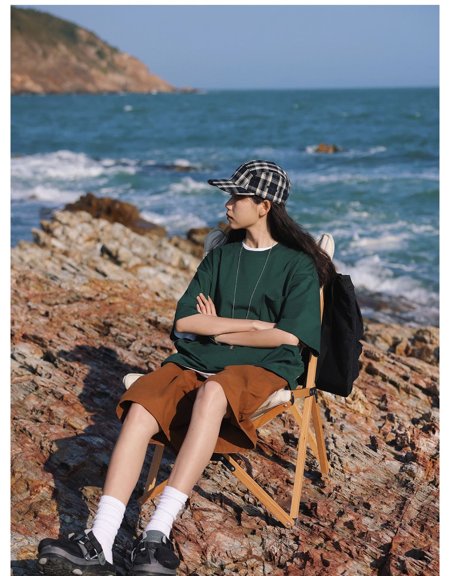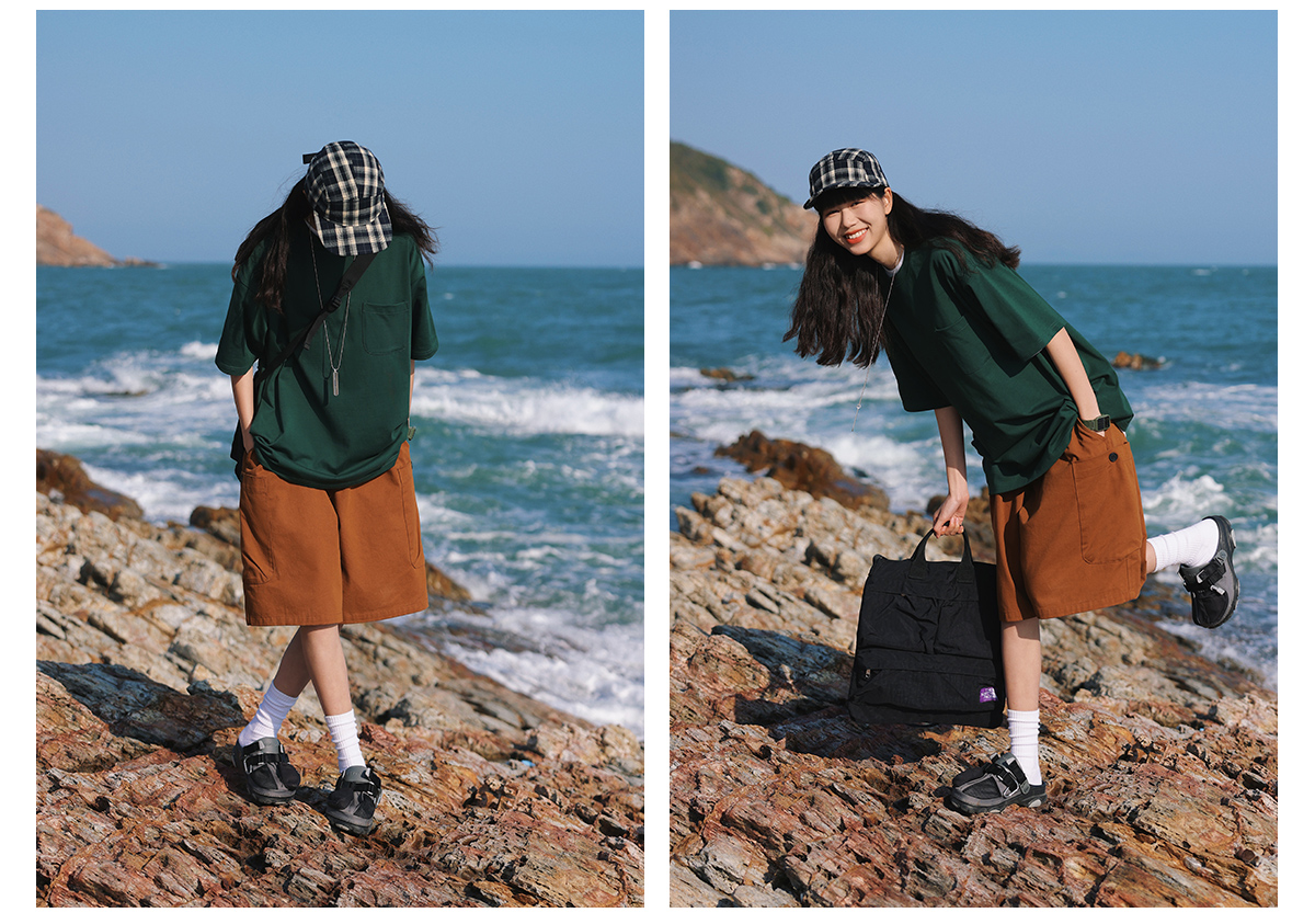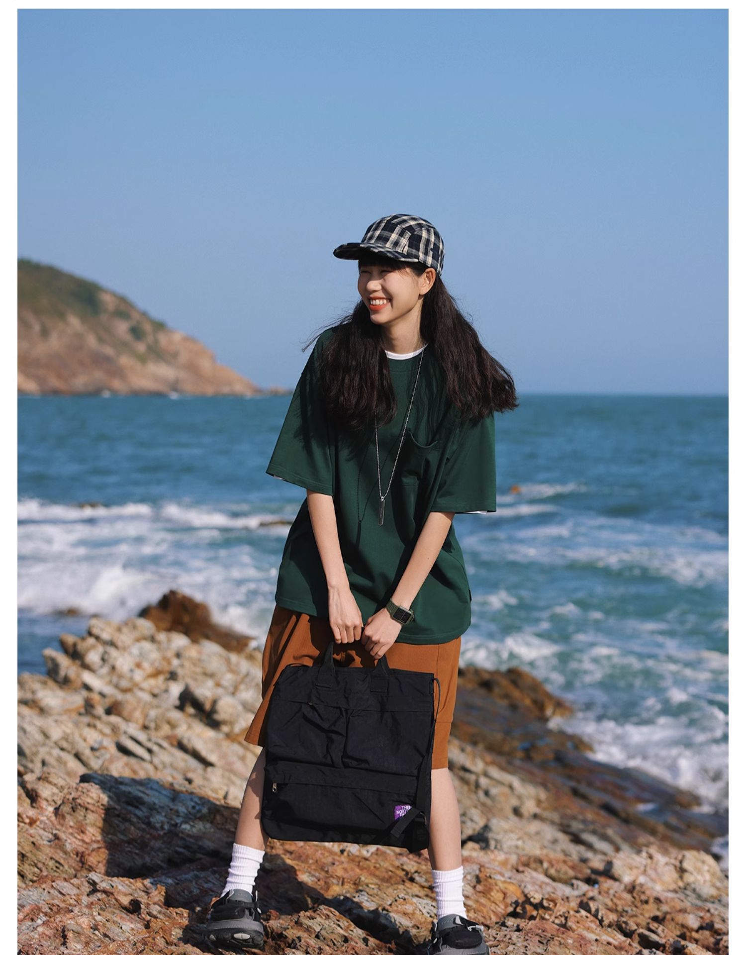 KOUEMGI空味 日系夏季簡約純色短袖T恤男潮牌寬鬆情侶休閒圓領tee
