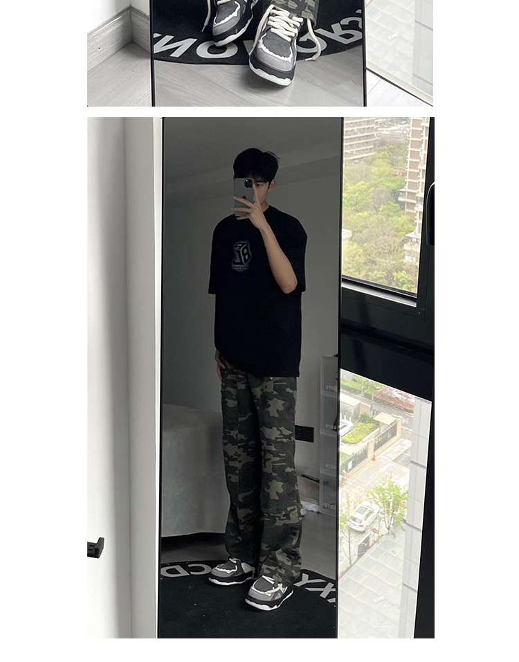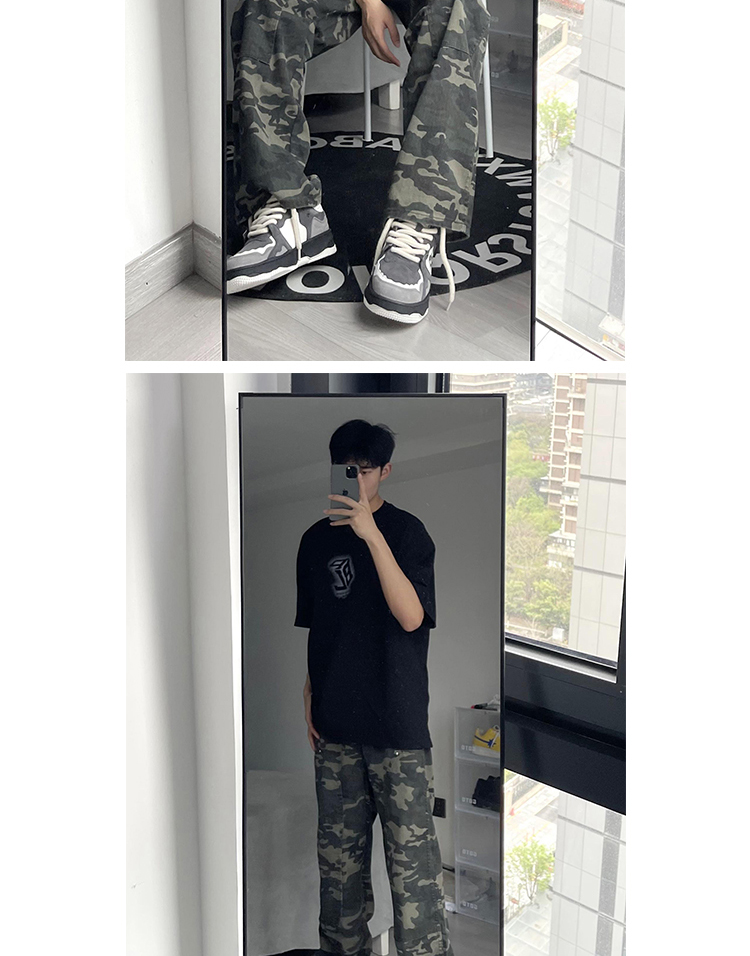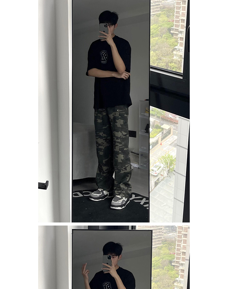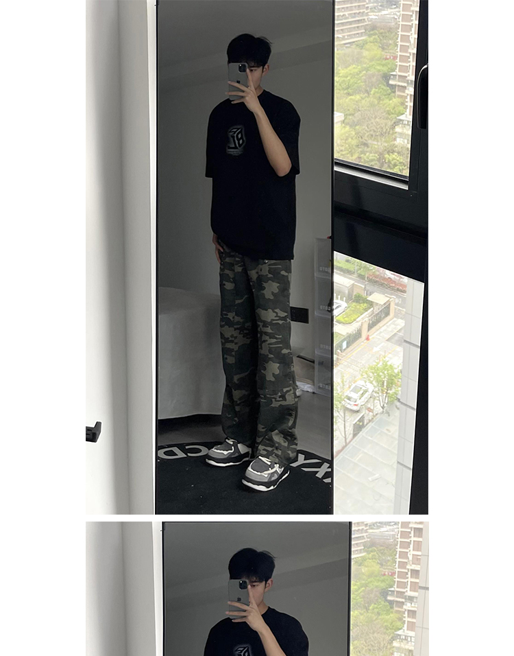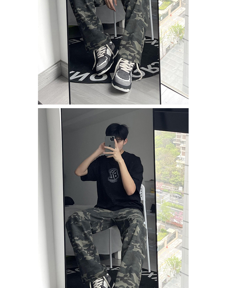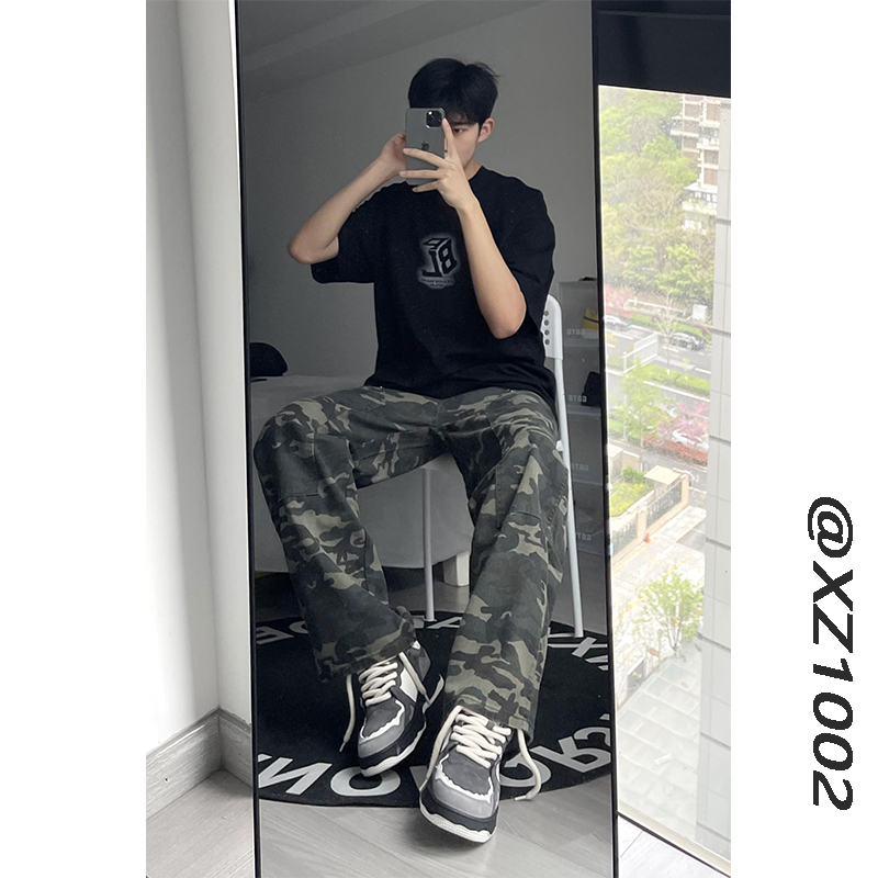 歐美hiphop迷彩褲美式復古vibe褲子男高街潮牌寬鬆直筒伐木工裝褲