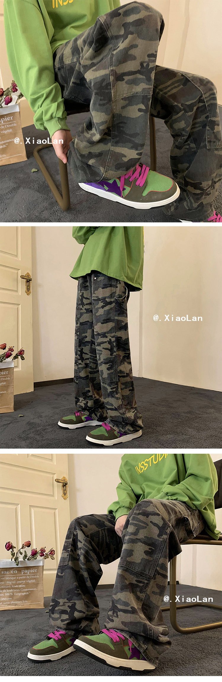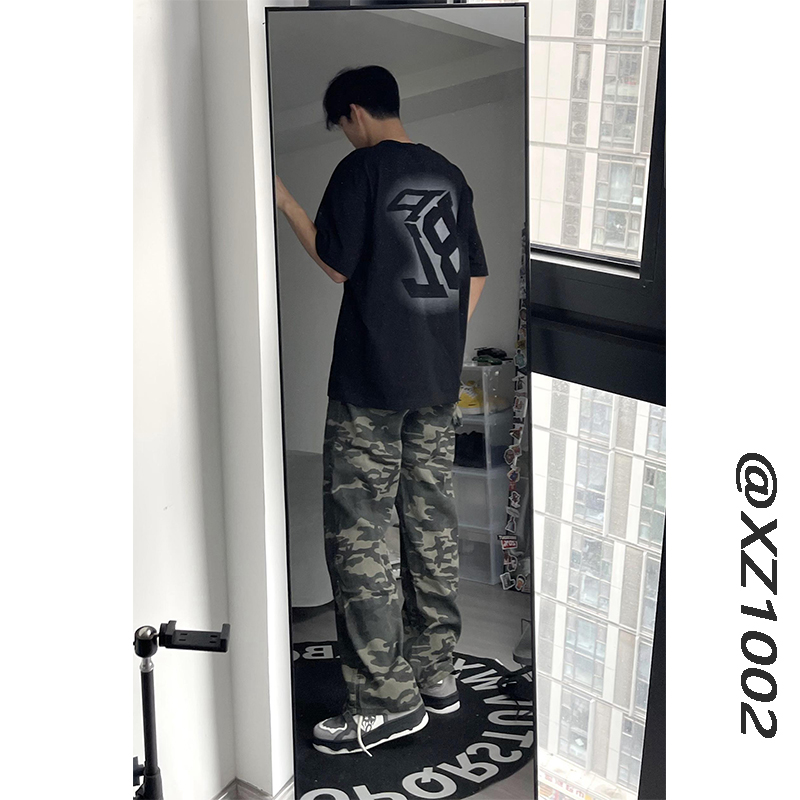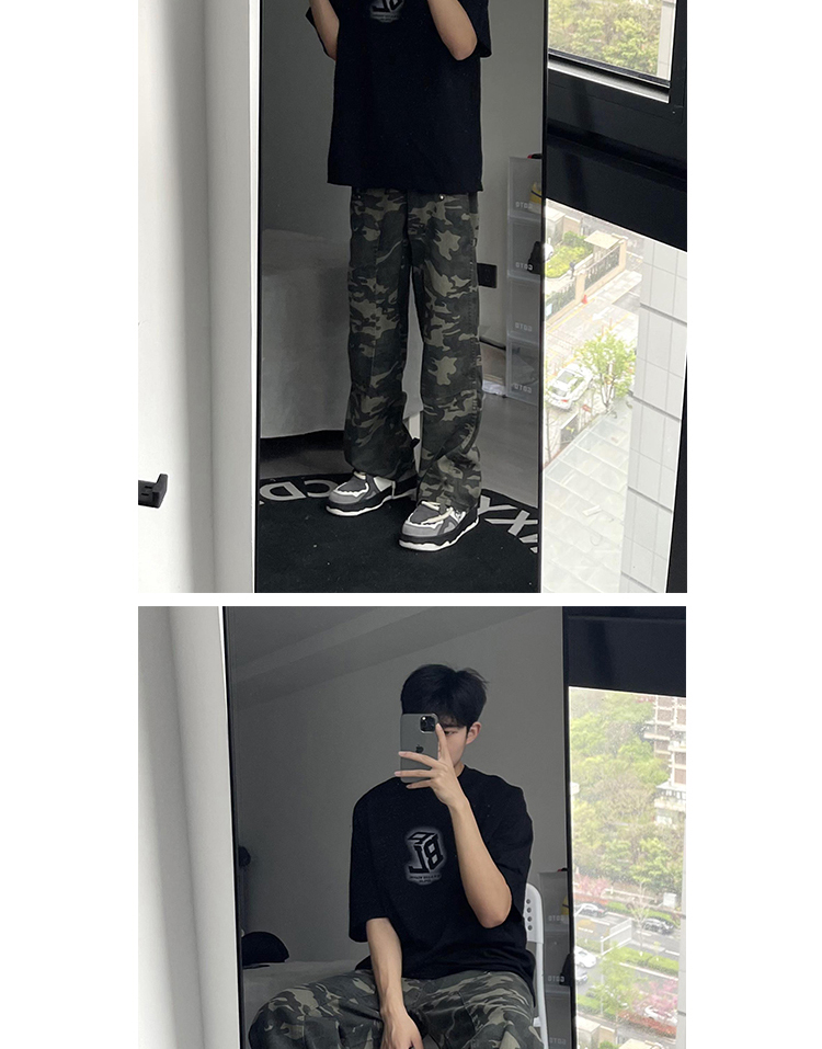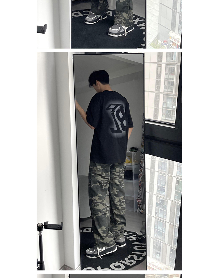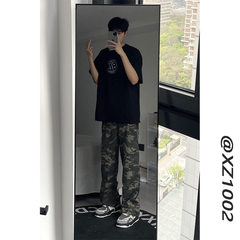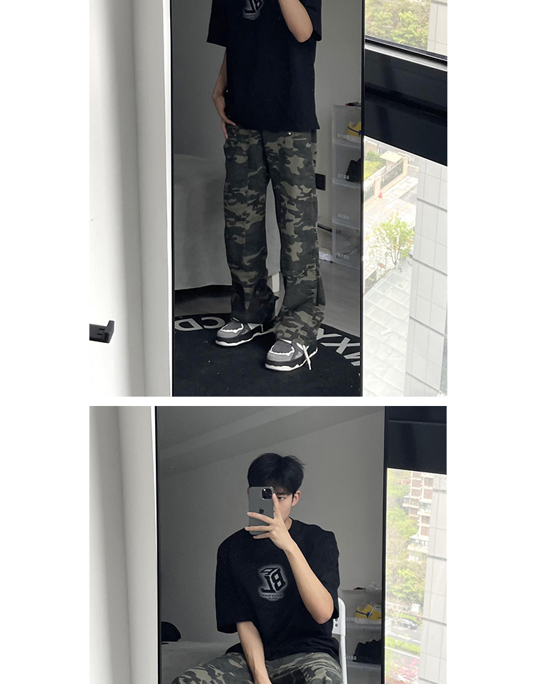 歐美hiphop迷彩褲美式復古vibe褲子男高街潮牌寬鬆直筒伐木工裝褲