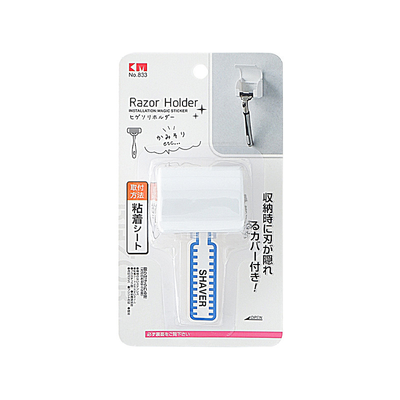 日本KM.833.粘贴式剃须刀架子须刨收纳架 自带粘胶贴壁式胡子刮架