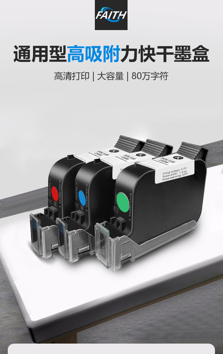 FAITH 跨境专供手持喷码机 墨盒打日期 高附着黑色快干打印机墨盒