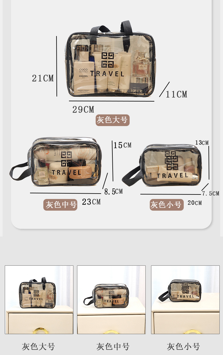 新款PVC透明洗漱包收纳防水化妆包便携随身手提收纳洗漱化妆包