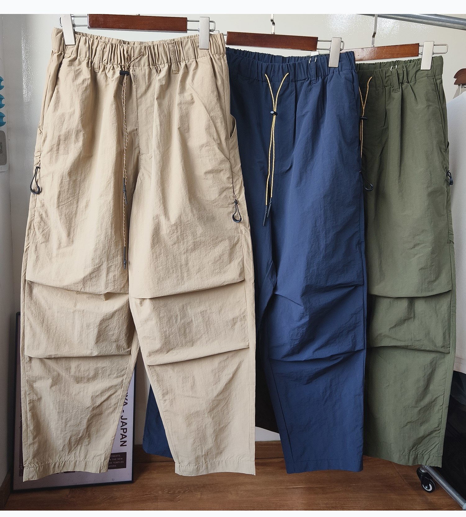 23SS夏季山系機能速乾輕薄 拉鍊袋工裝褲男寬鬆錐形褲子男cityboy