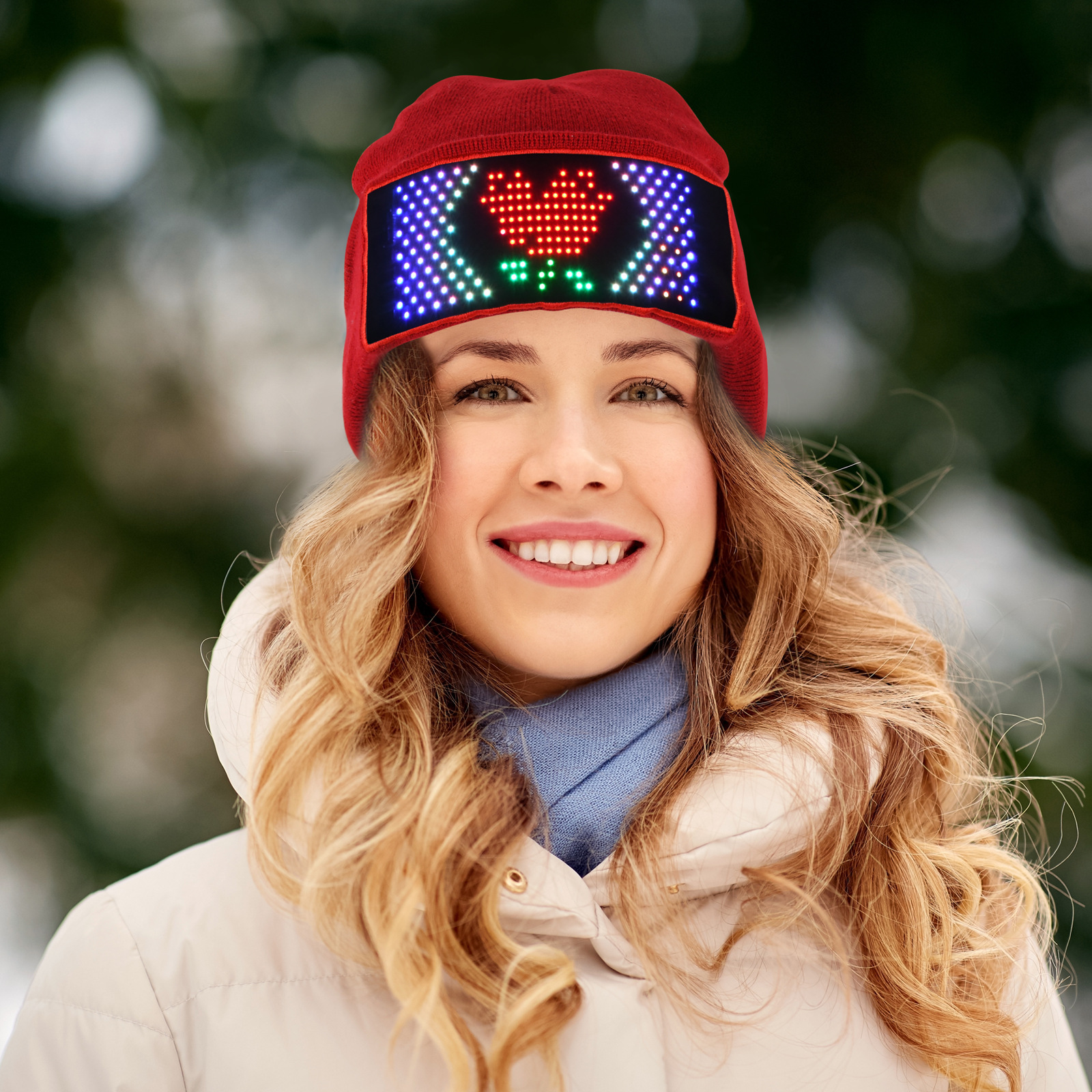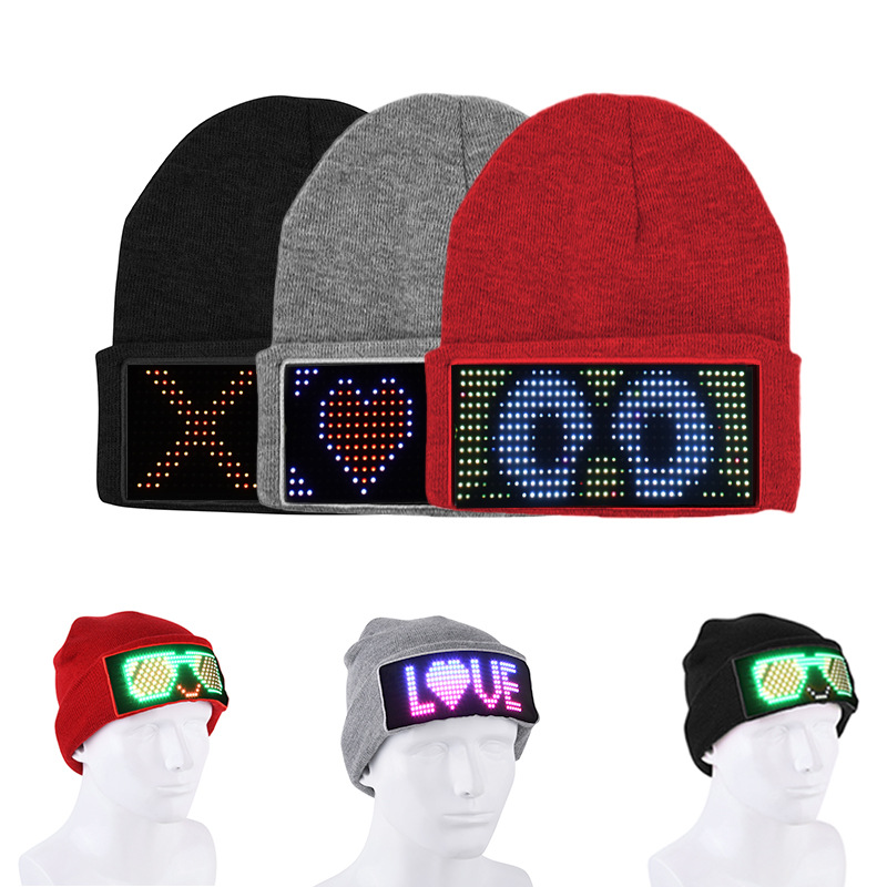 亚马逊新款LED蓝牙全彩发光针织帽DIY显示屏广告帽子圣诞派对厂家