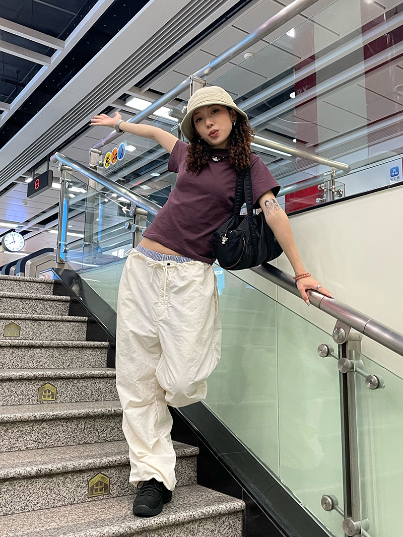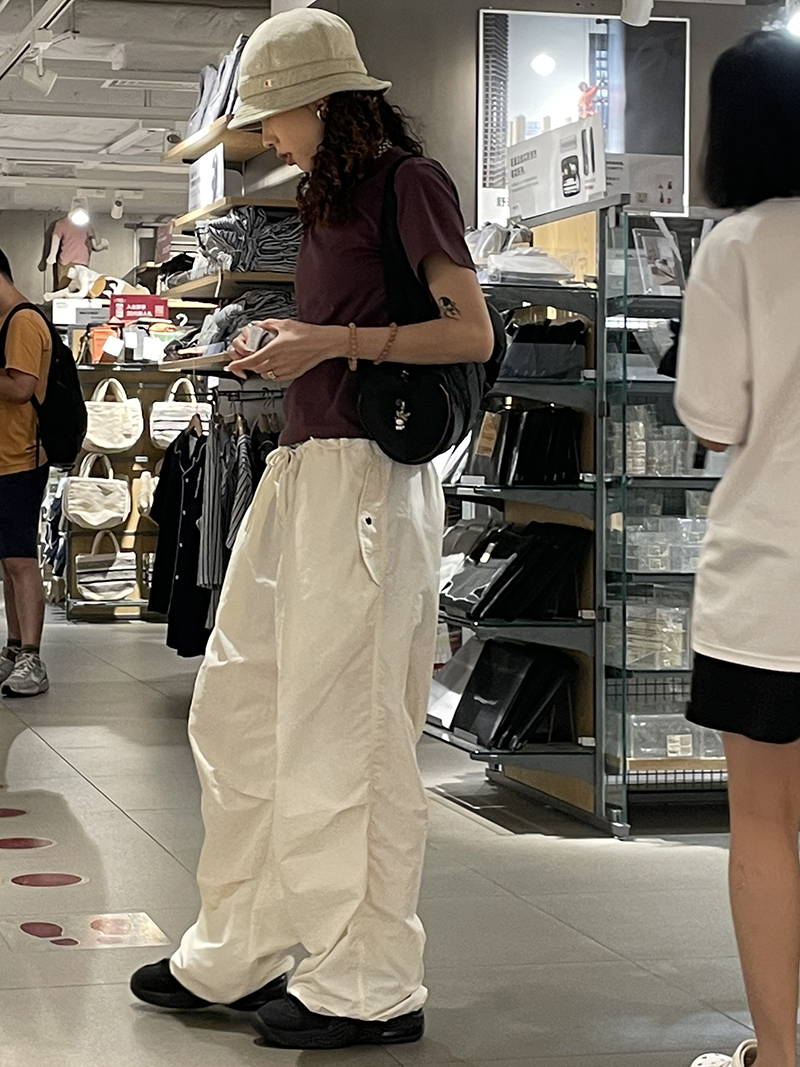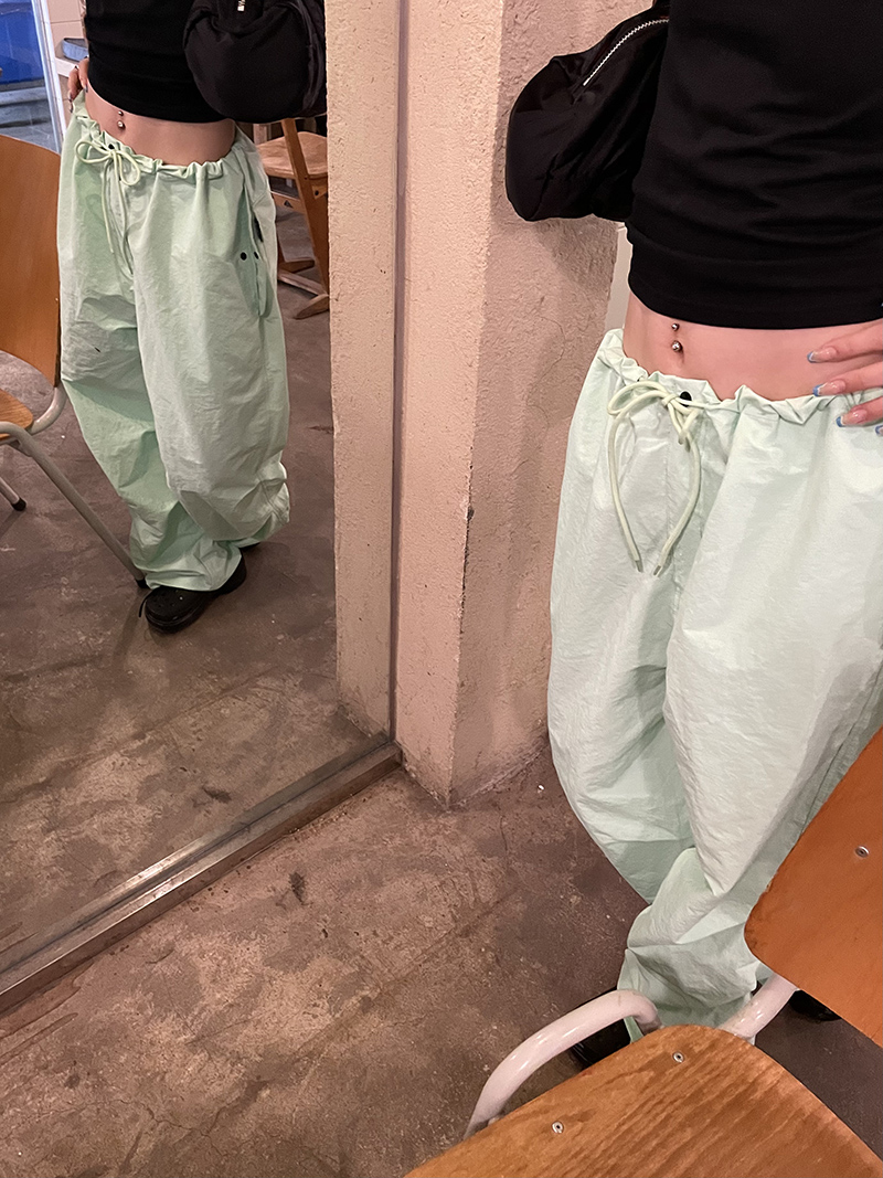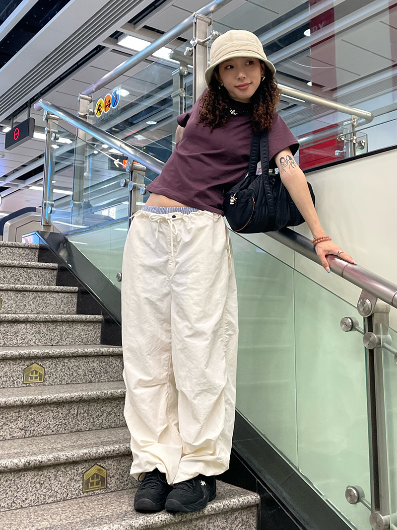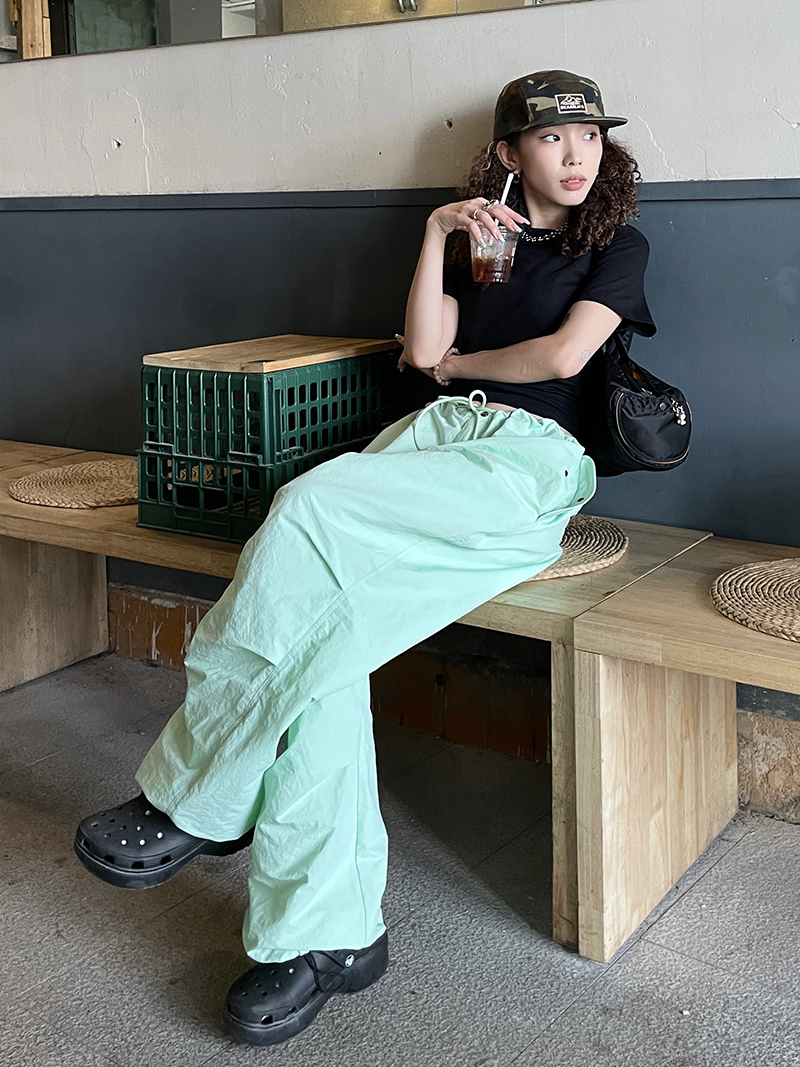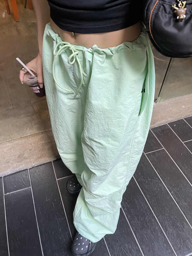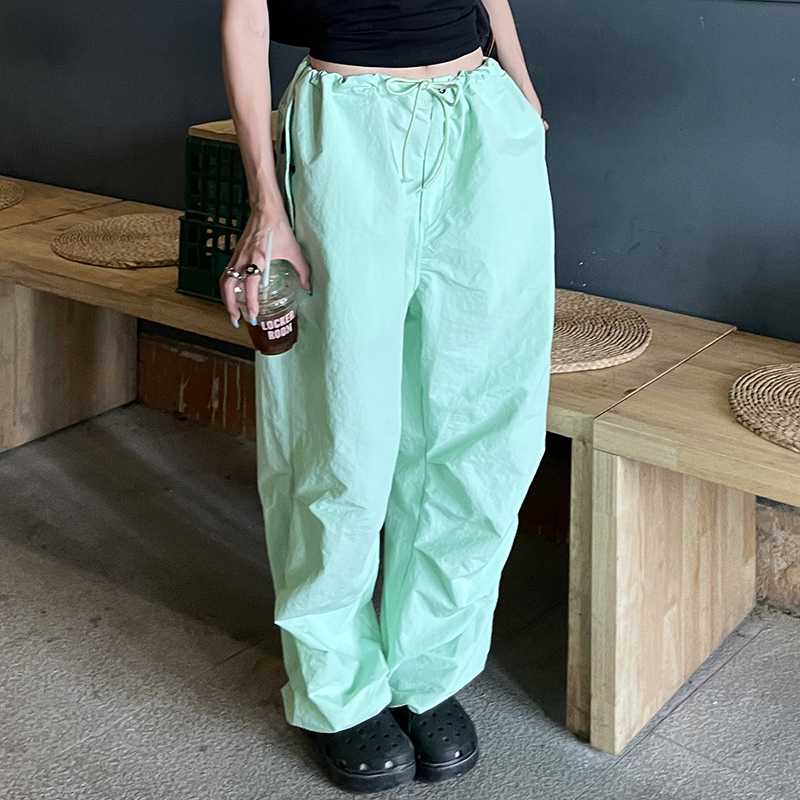 MMBBT多巴胺穿搭辣妹風速幹運動褲女夏薄款寬鬆休閒降落傘兵褲子