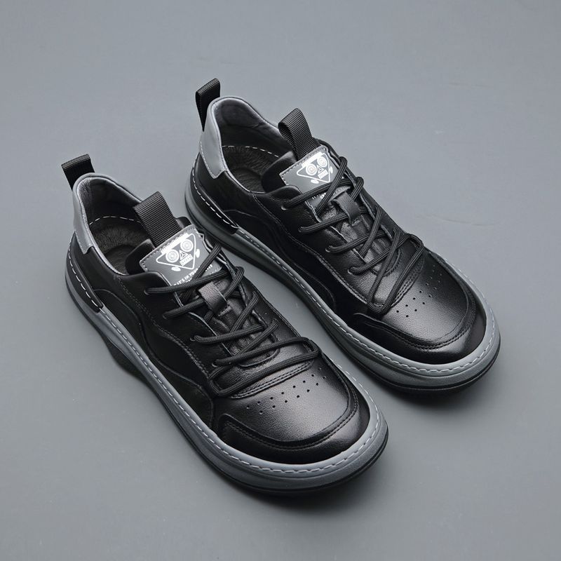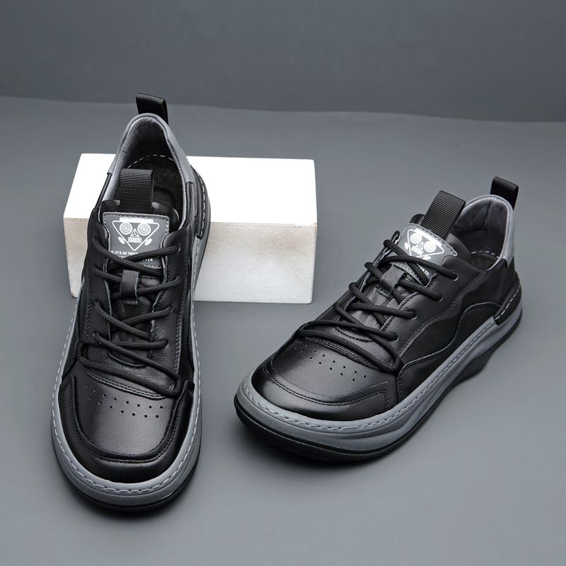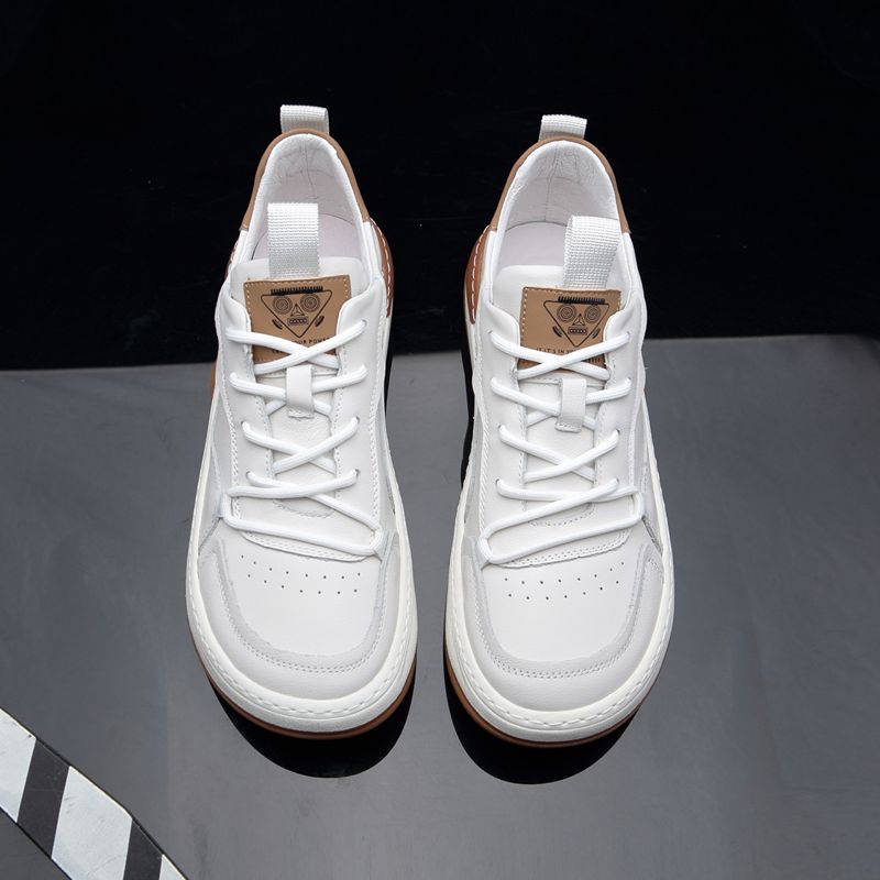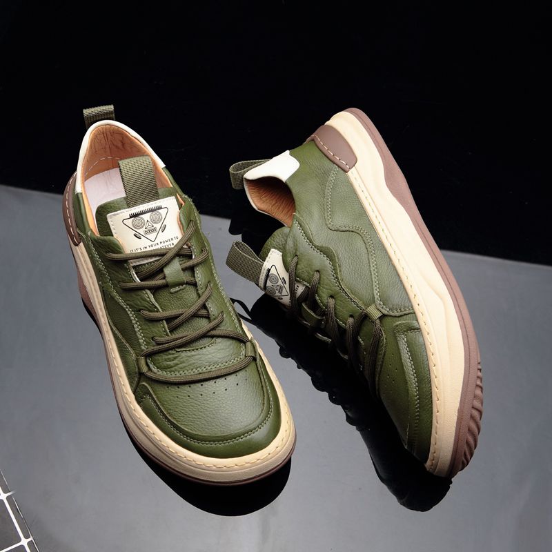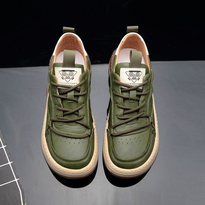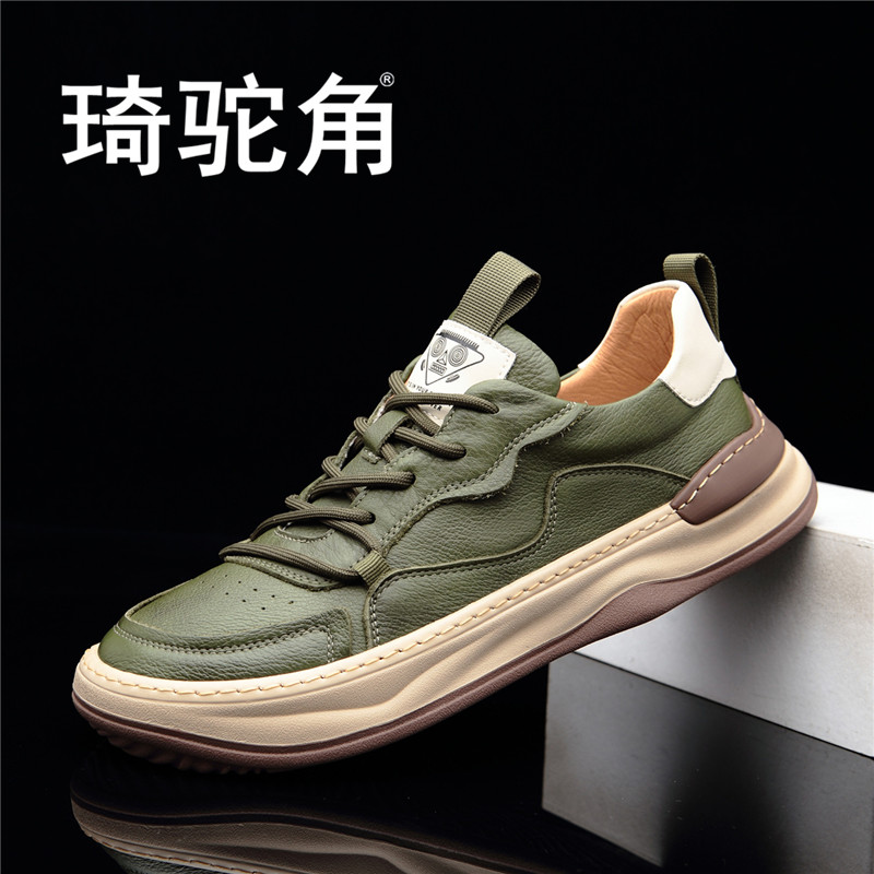 歐洲站真皮男士板鞋2023春季新款透氣潮鞋子百搭休閒鞋歪頭小醜鞋