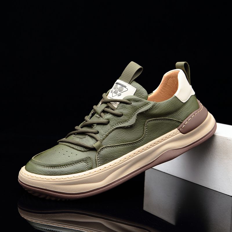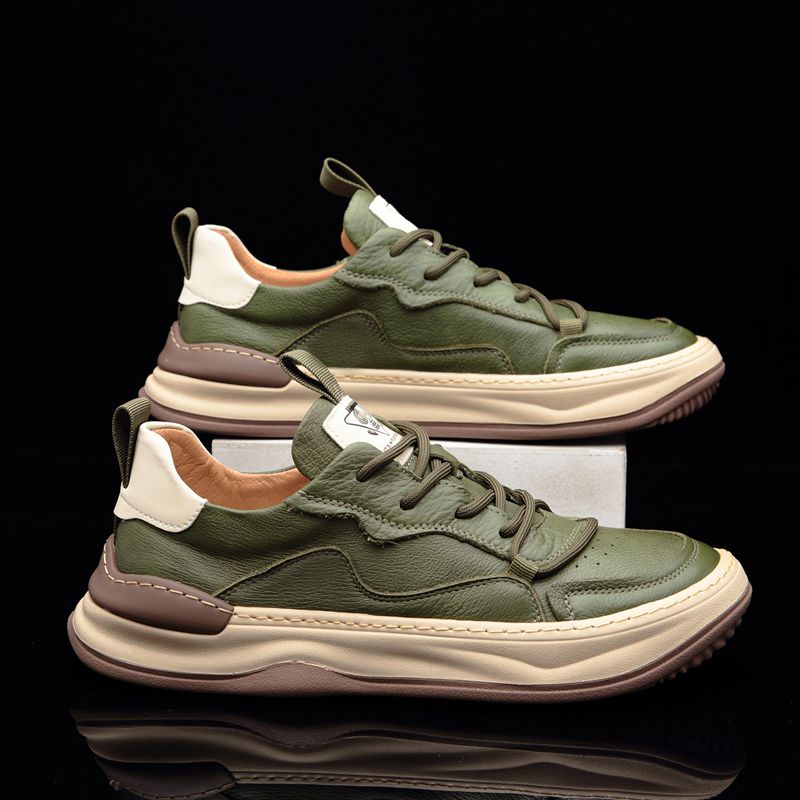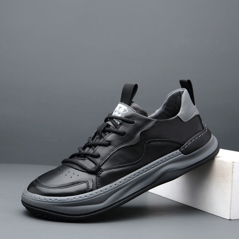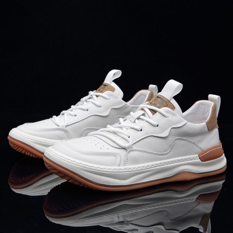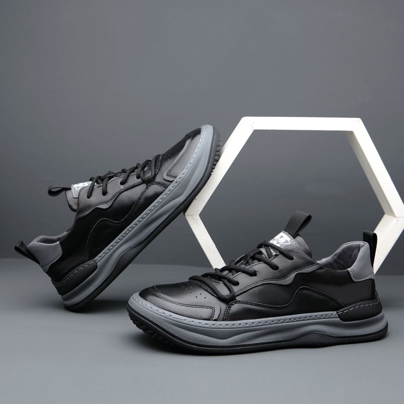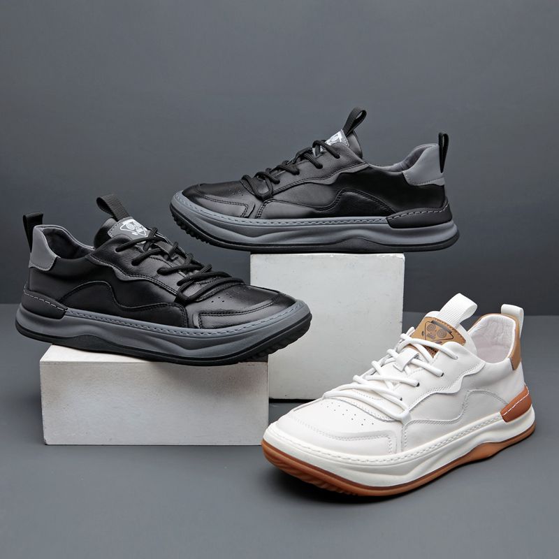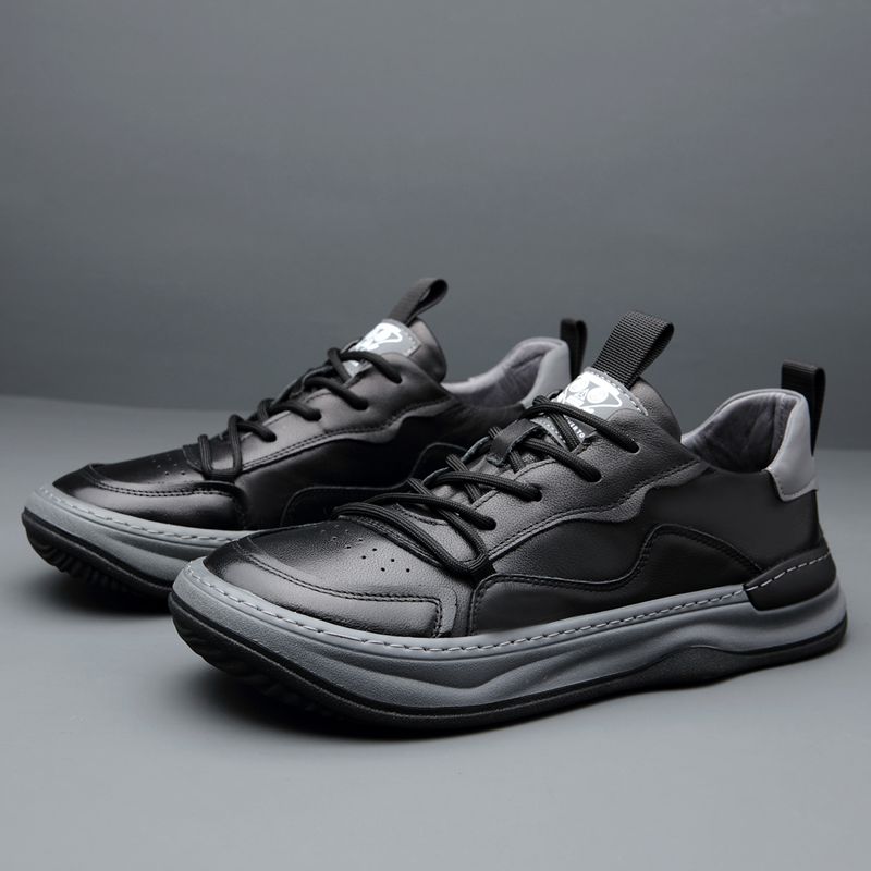 歐洲站真皮男士板鞋2023春季新款透氣潮鞋子百搭休閒鞋歪頭小醜鞋