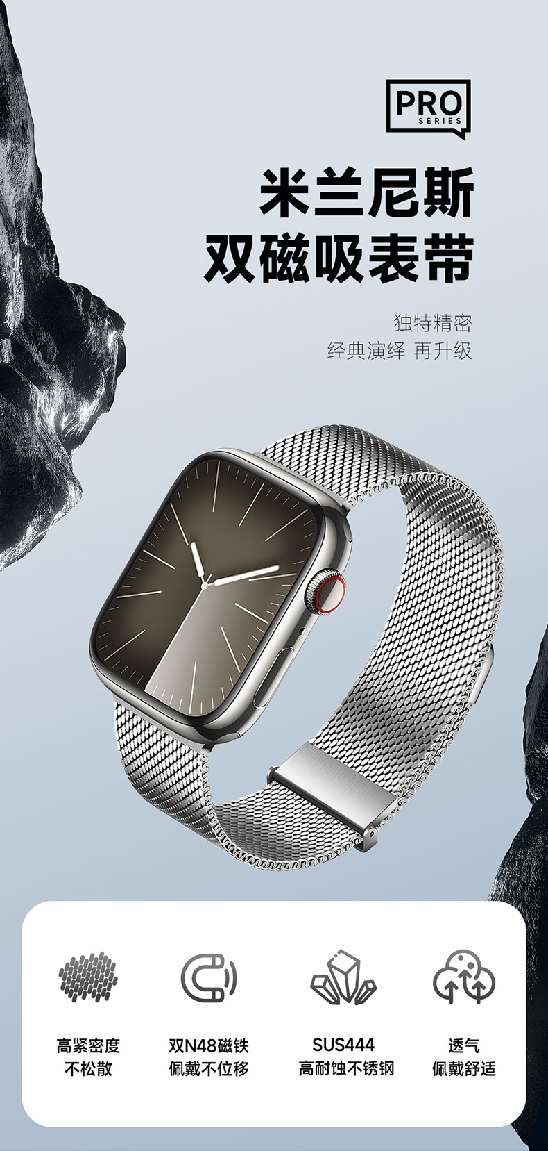 适用苹果表带AppleWatch米兰尼斯iwatch89双磁铁金属表带商务跨境