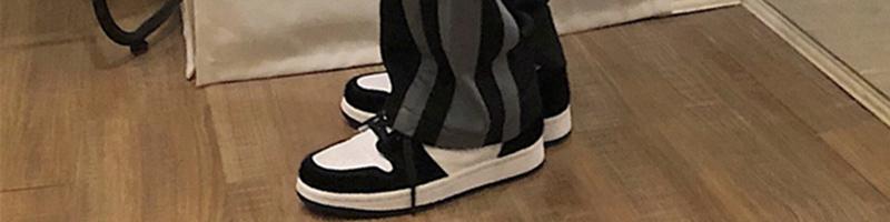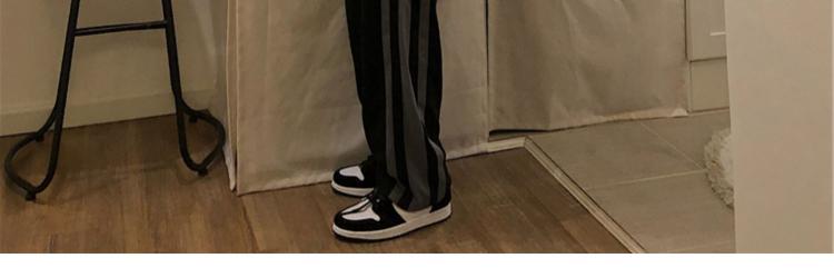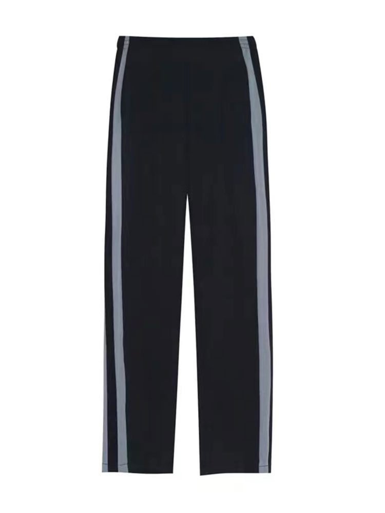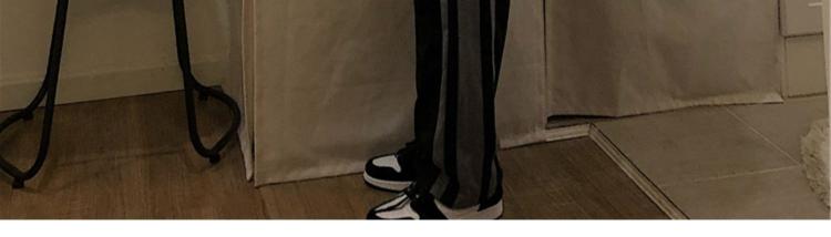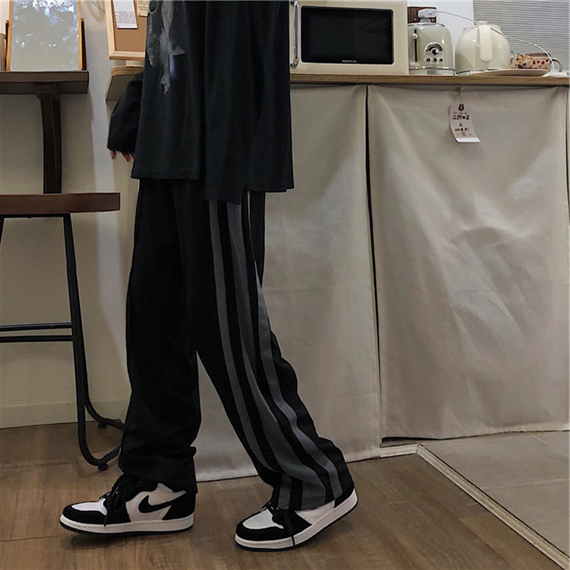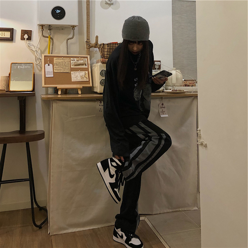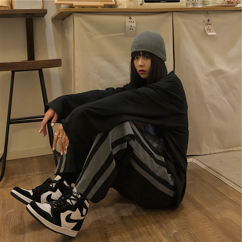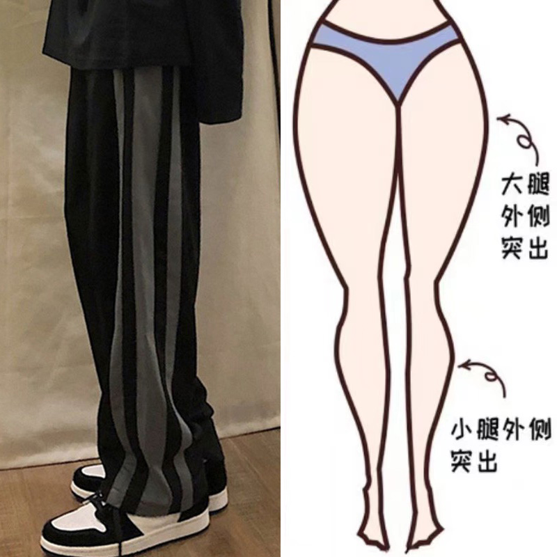 黑色側邊條紋運動褲女春秋新款大尺碼胖mm寬鬆顯瘦學生直筒休閒褲子