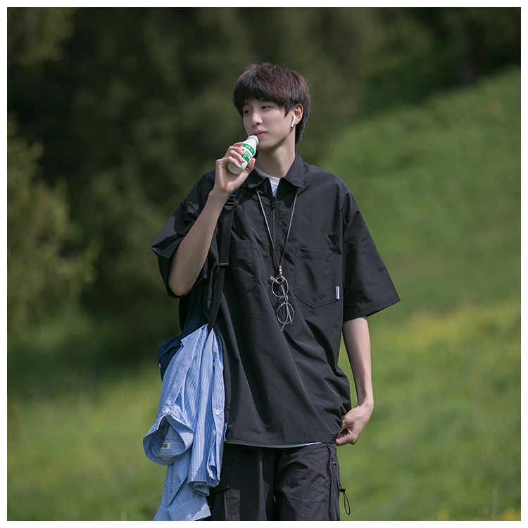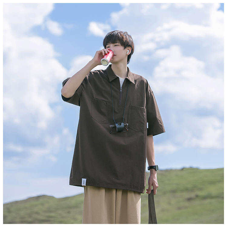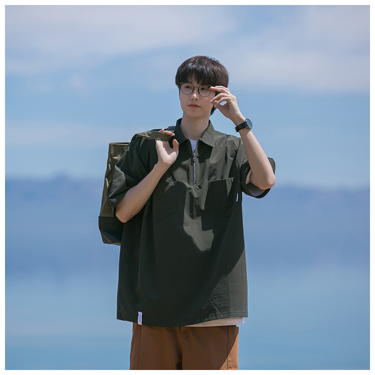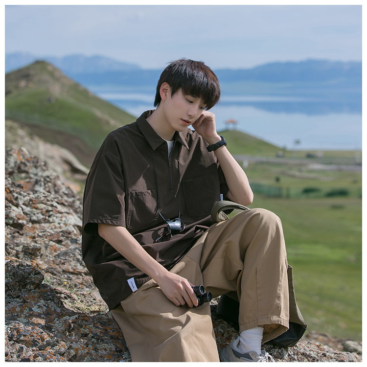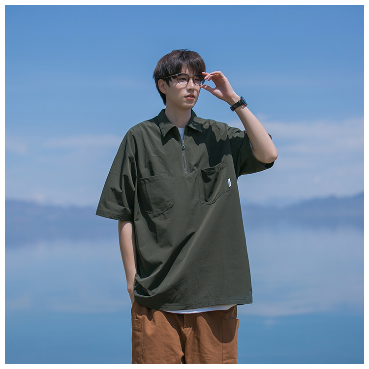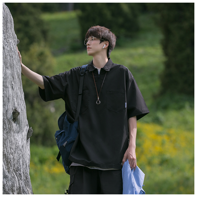 襯衫男短袖polo衫工裝T恤重磅300g翻領日系美式復古潮牌潮流夏季