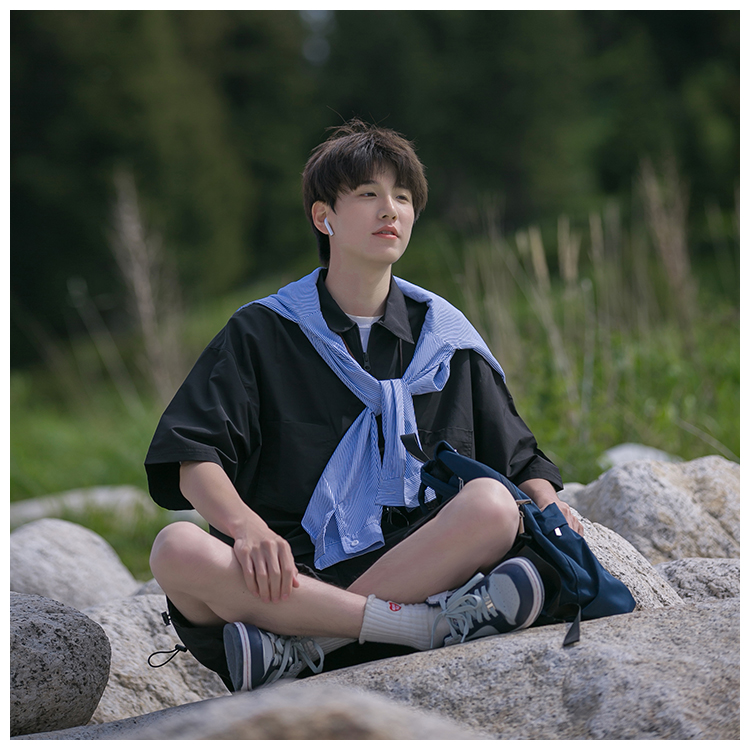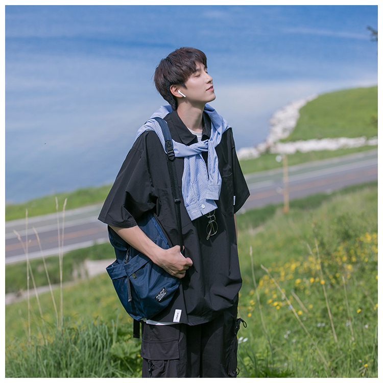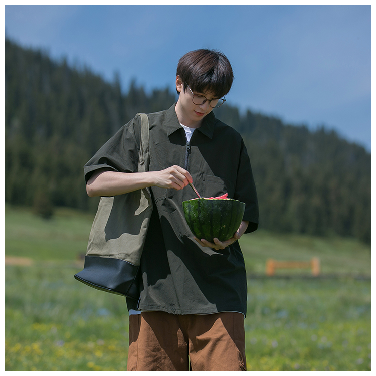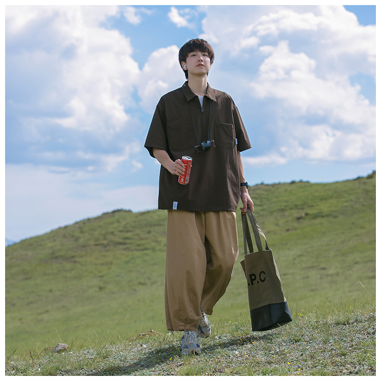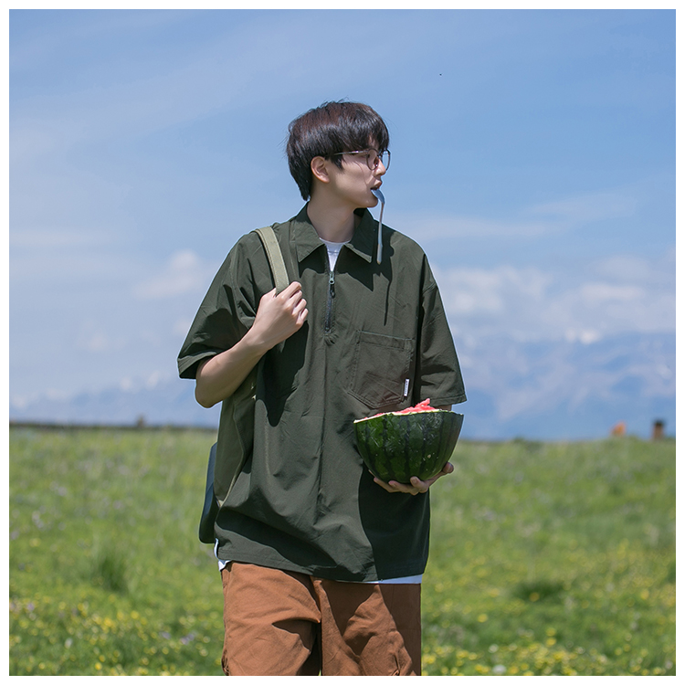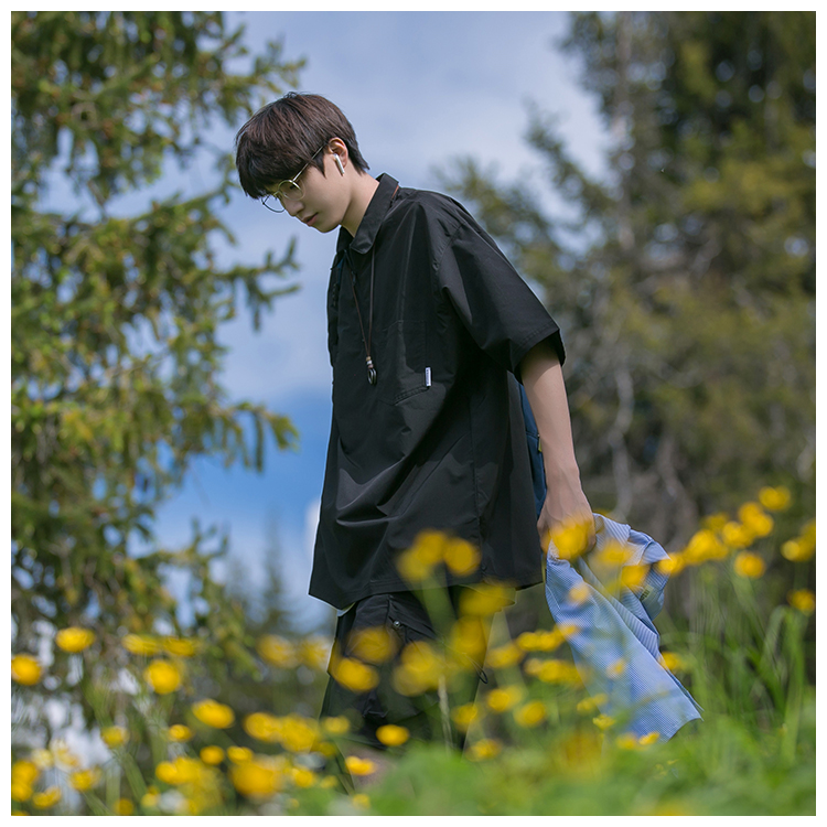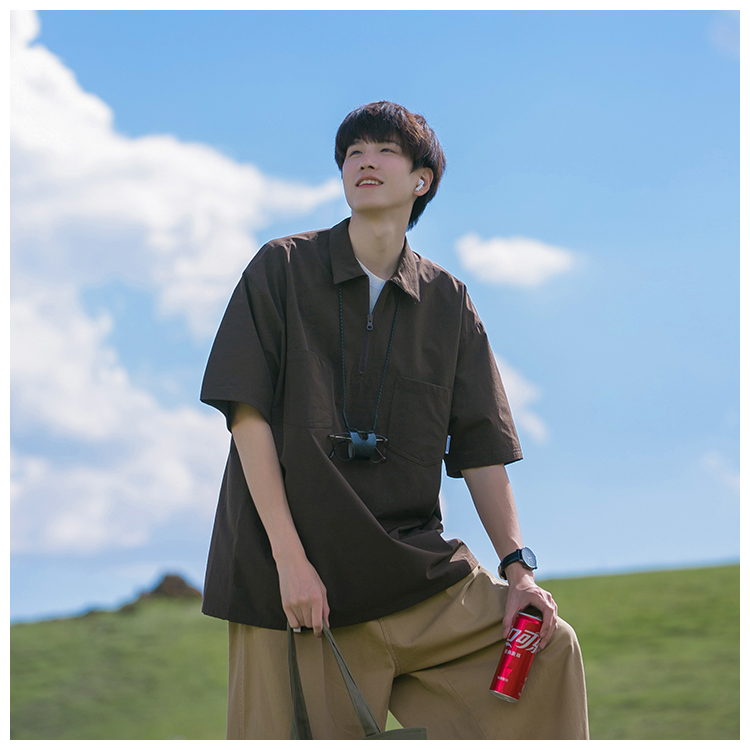 襯衫男短袖polo衫工裝T恤重磅300g翻領日系美式復古潮牌潮流夏季