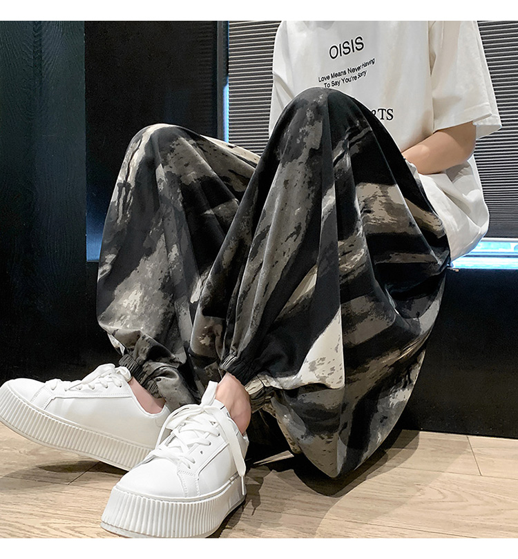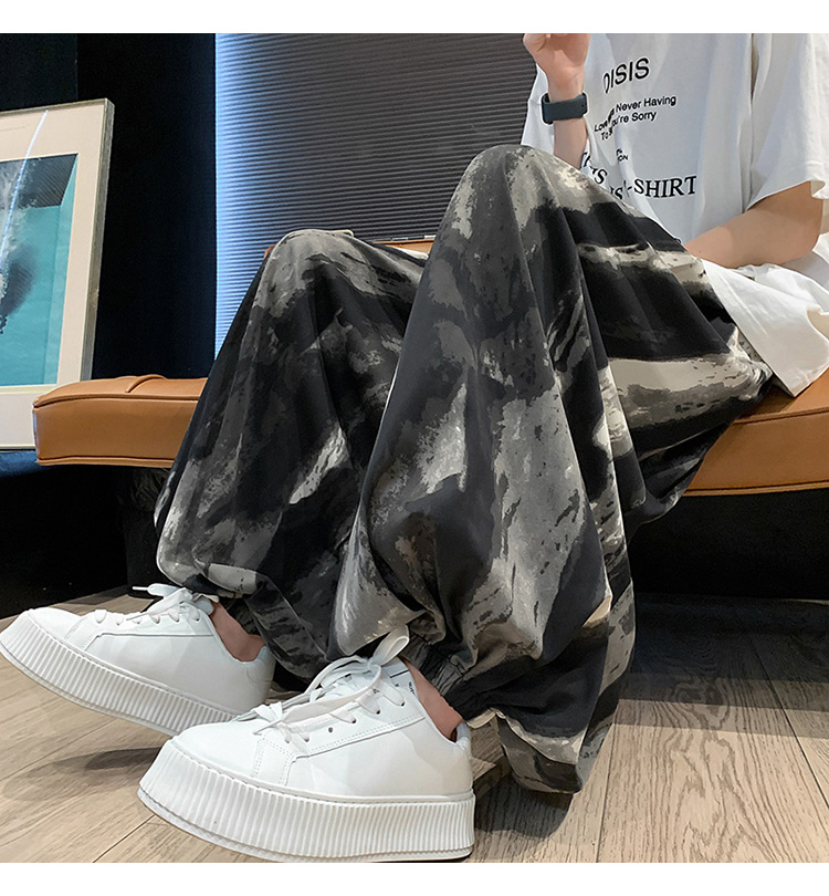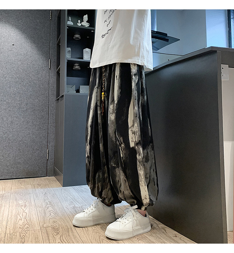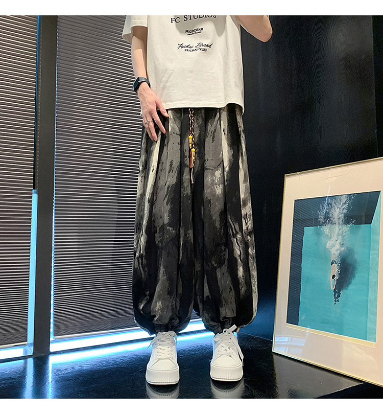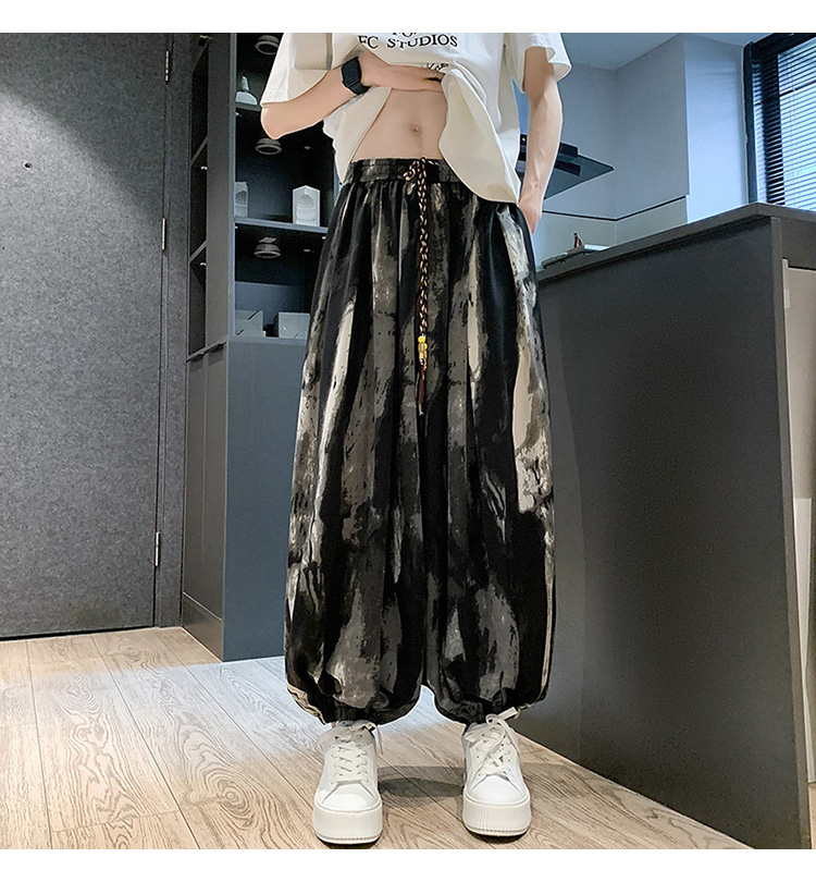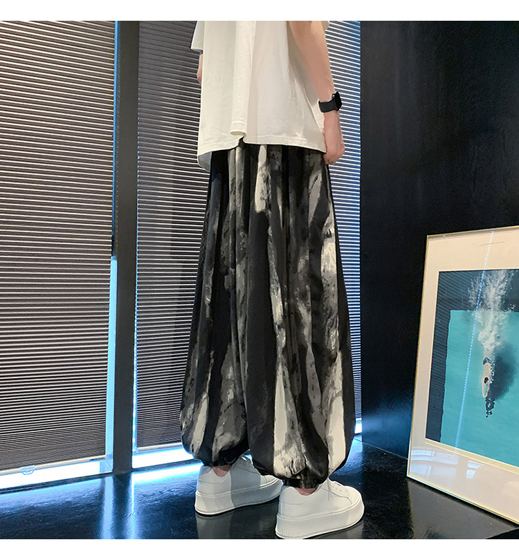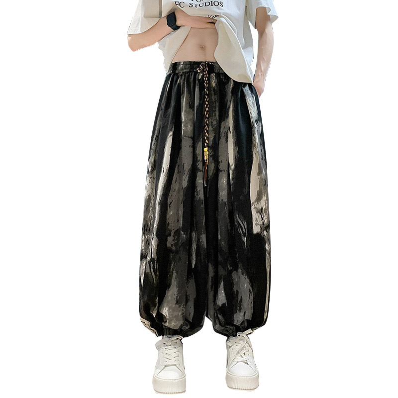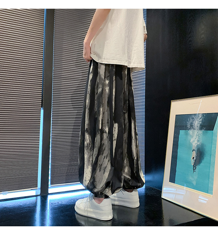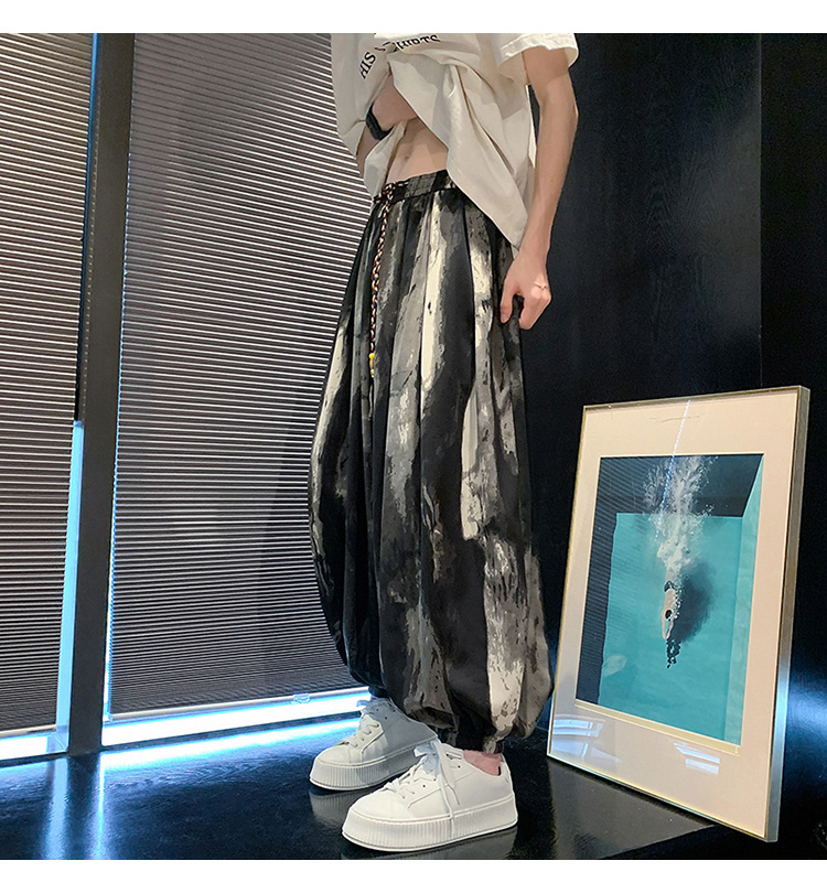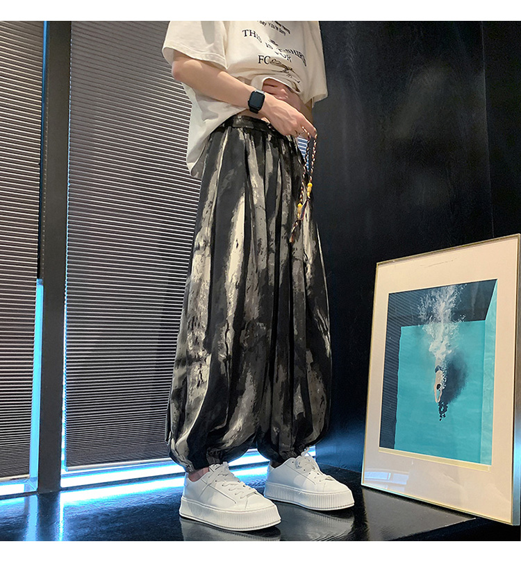 紮染黑色冰絲褲子男潑墨設計感小眾燈籠哈倫褲痞帥寬鬆垂感闊腿褲
