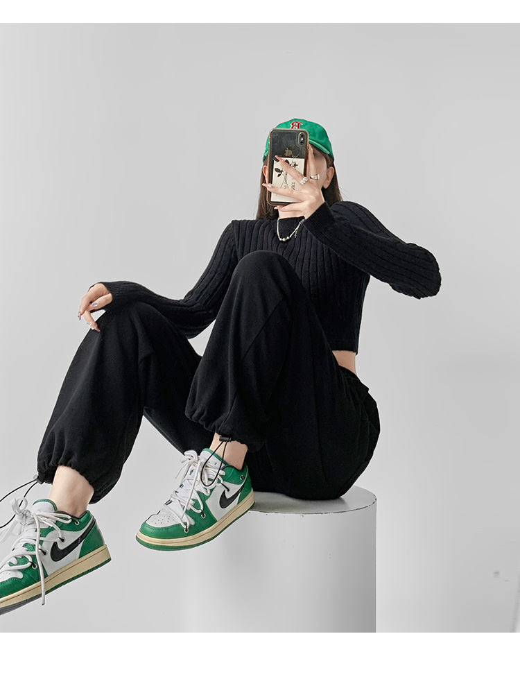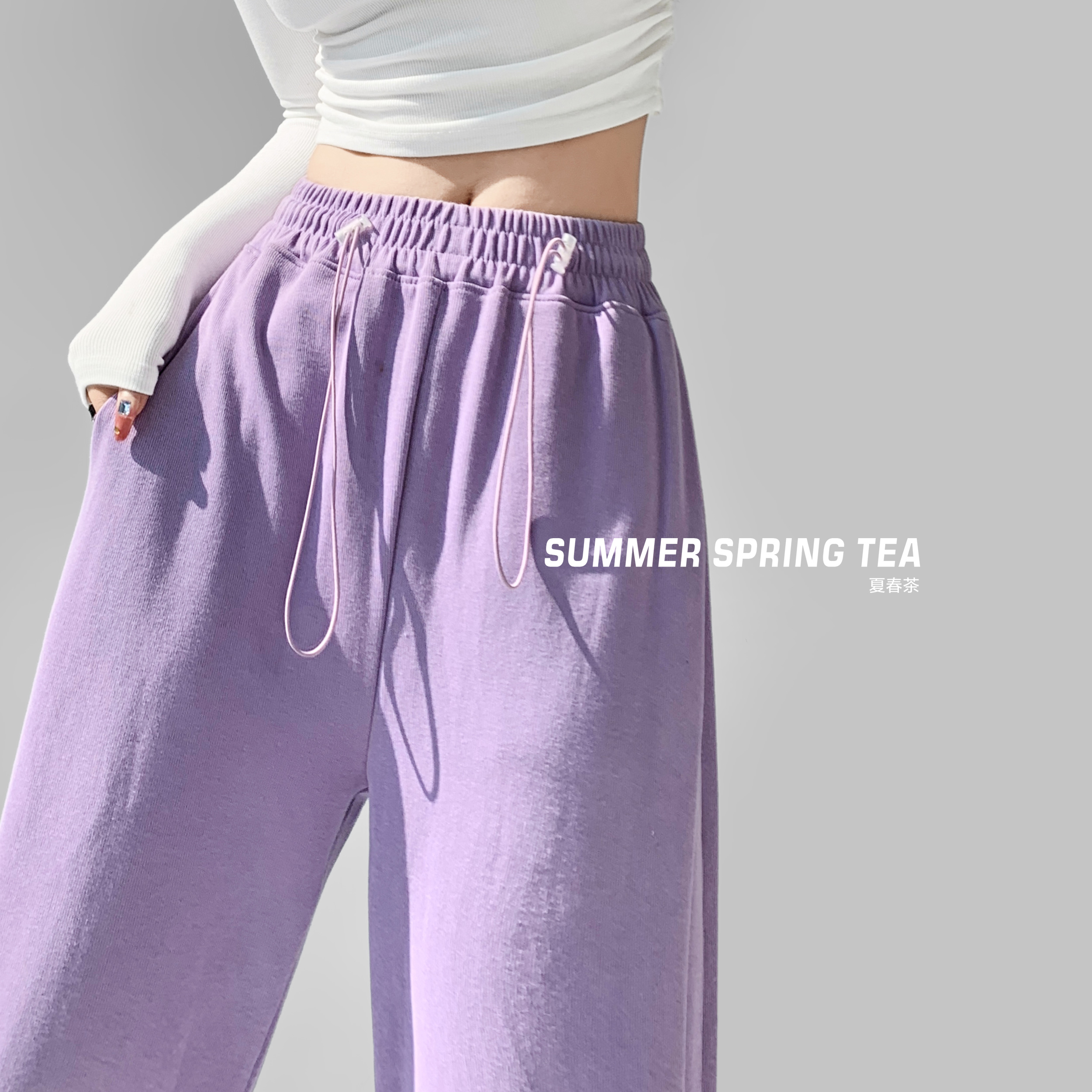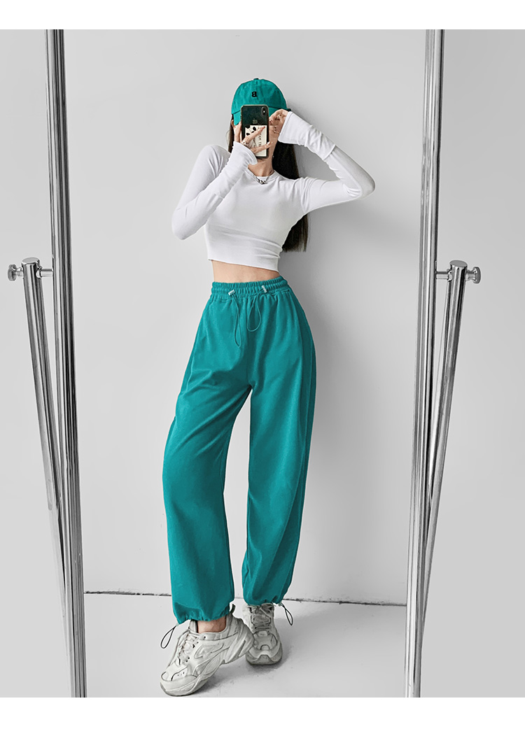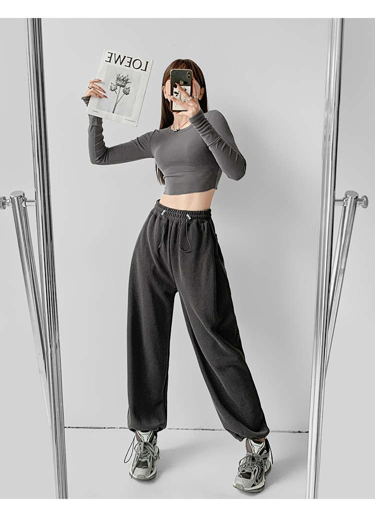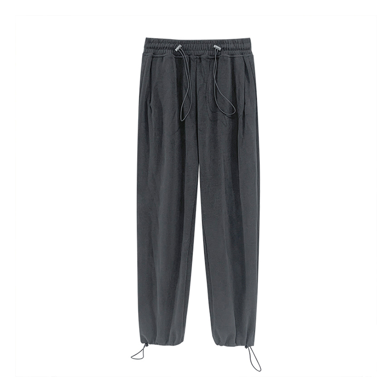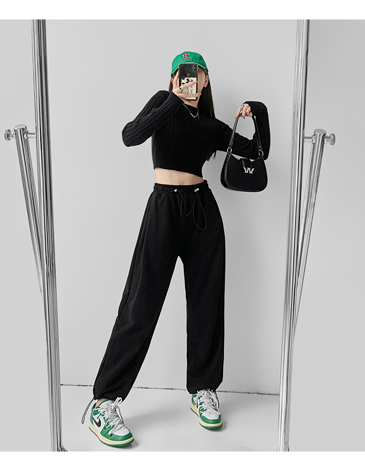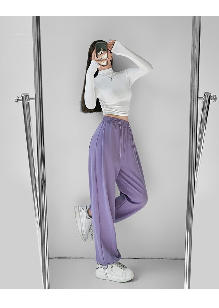 夏春茶粉色褲子女秋季辣妹闊腿褲女秋冬顯瘦鬆緊腰寬鬆休閒運動褲