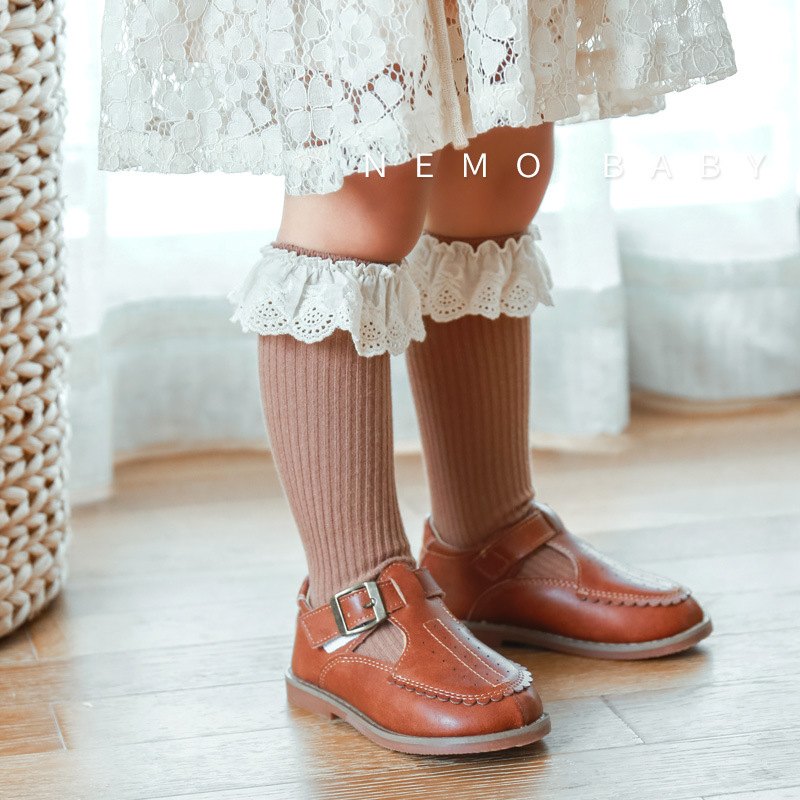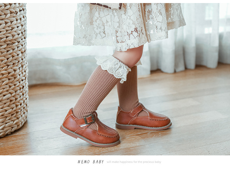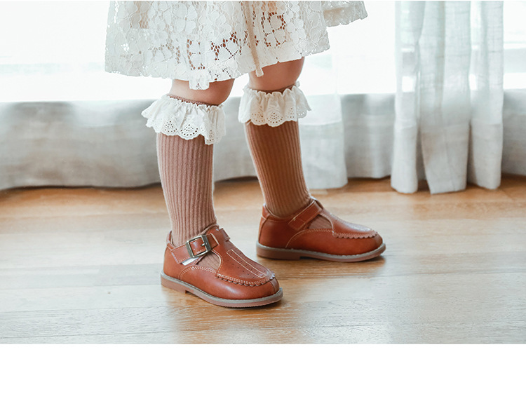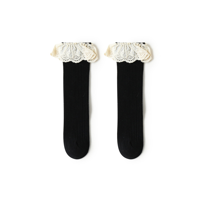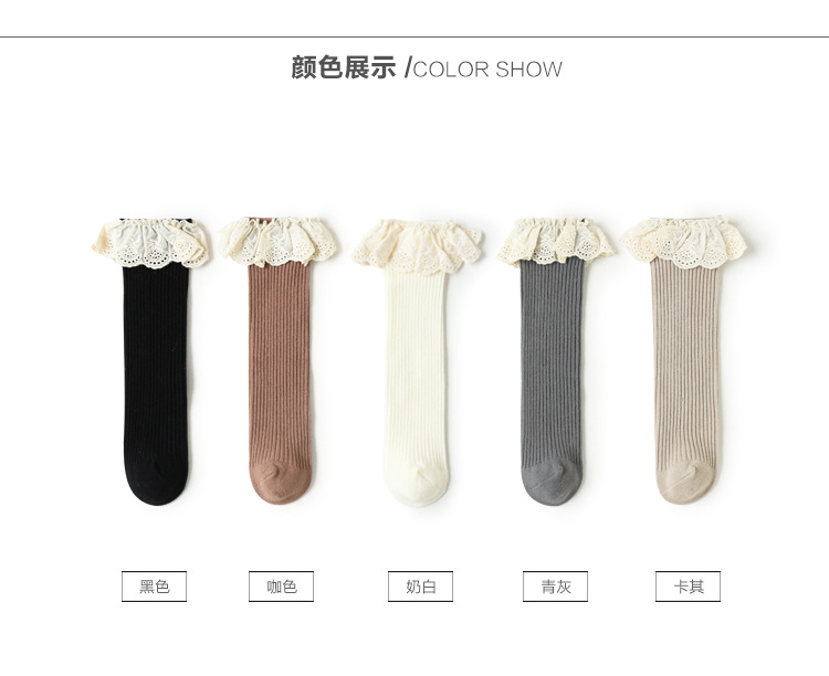 21年新款儿童袜子秋冬季女童中大童袜无跟中筒袜花边宝宝棉袜批发