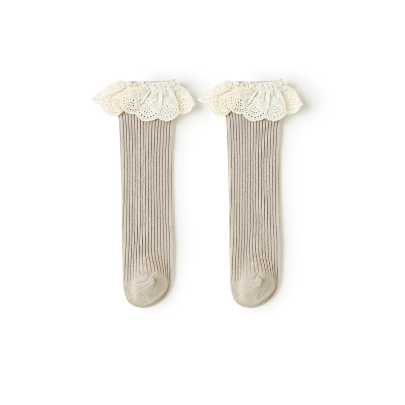 货号 棉布花边无跟中筒袜