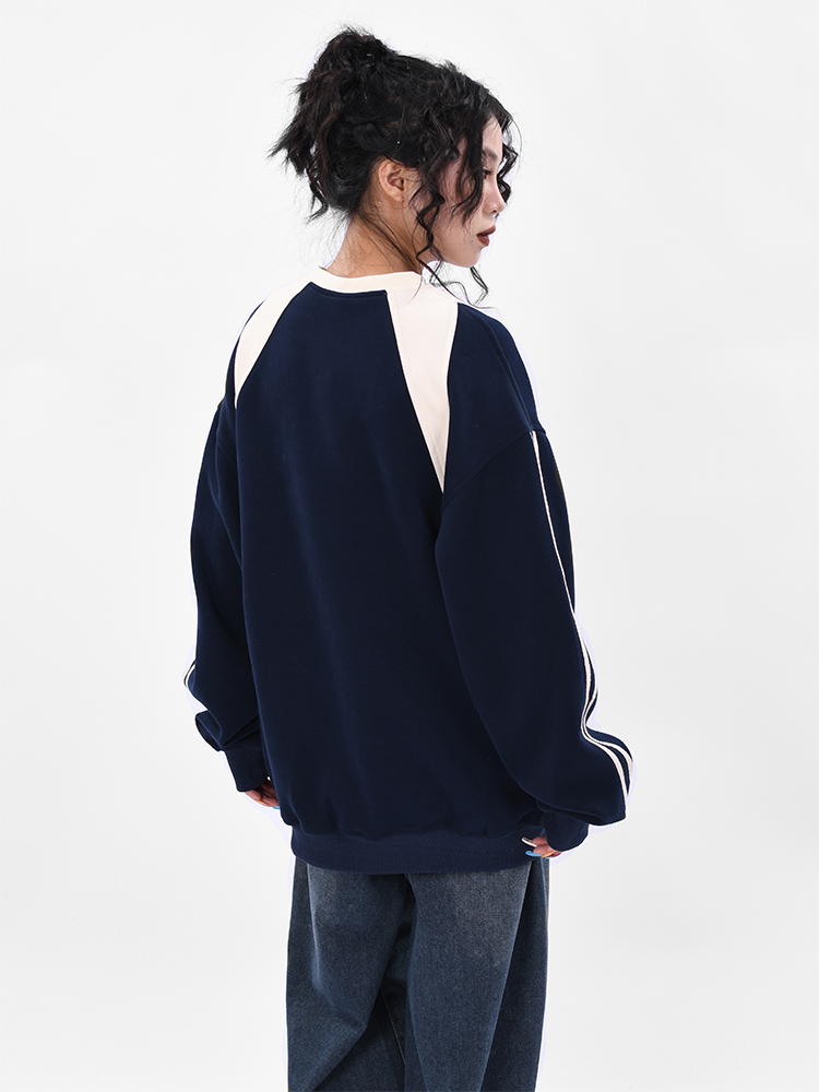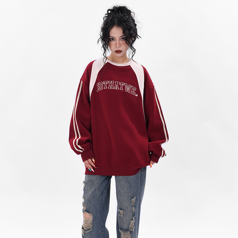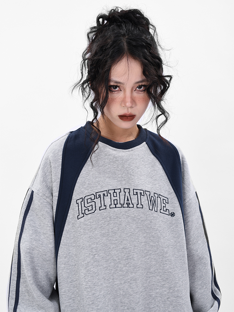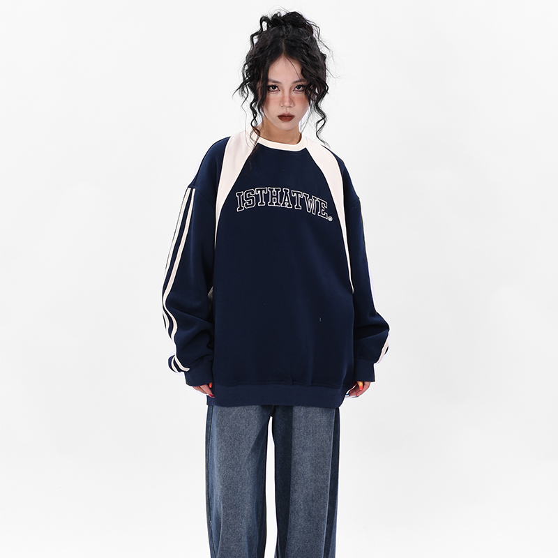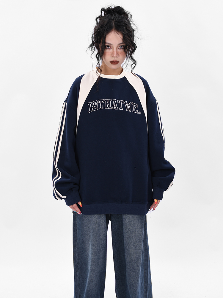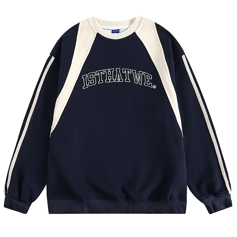 OV原創高街復古撞色拼接字母刺繡圓領厚棉T男女bf小眾潮牌寬鬆上衣