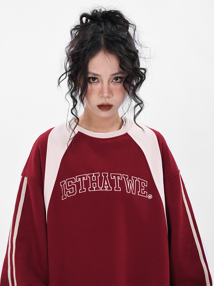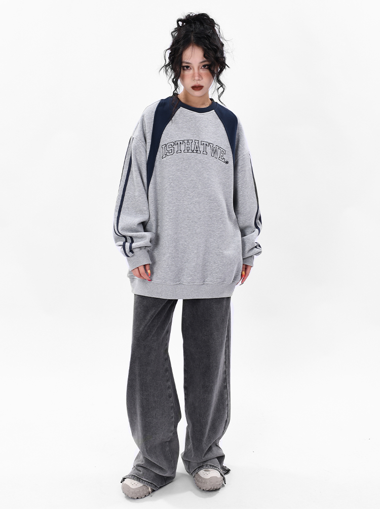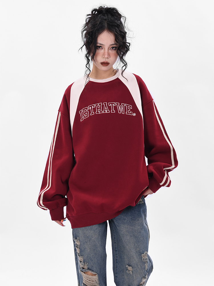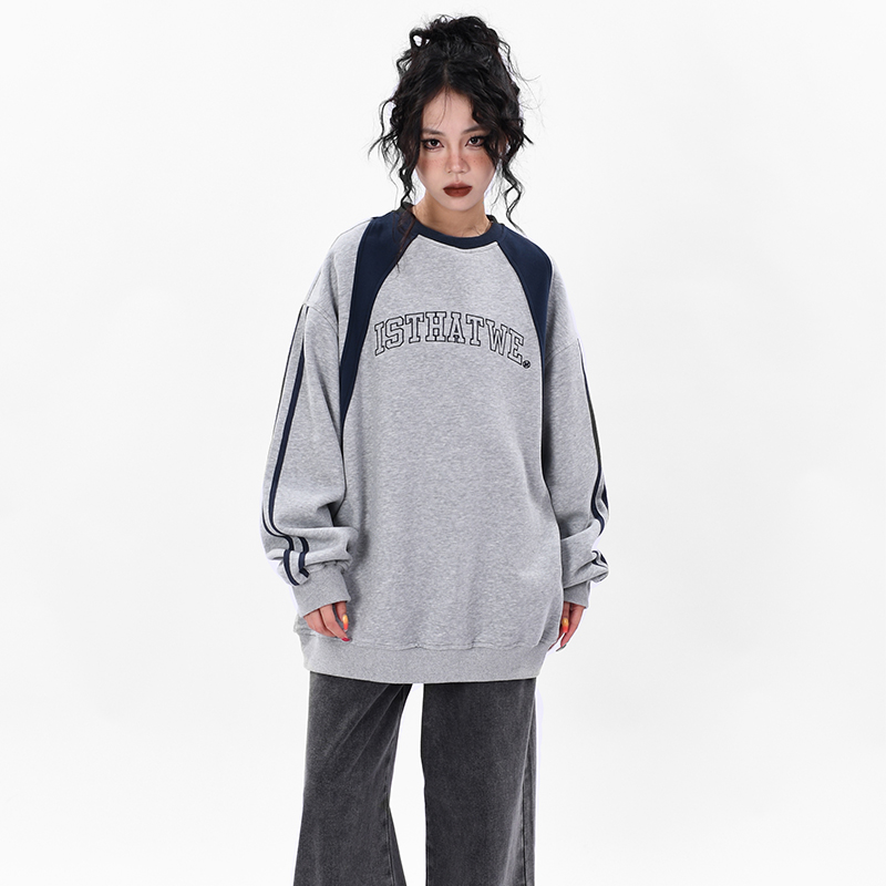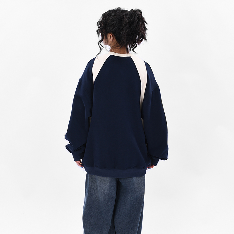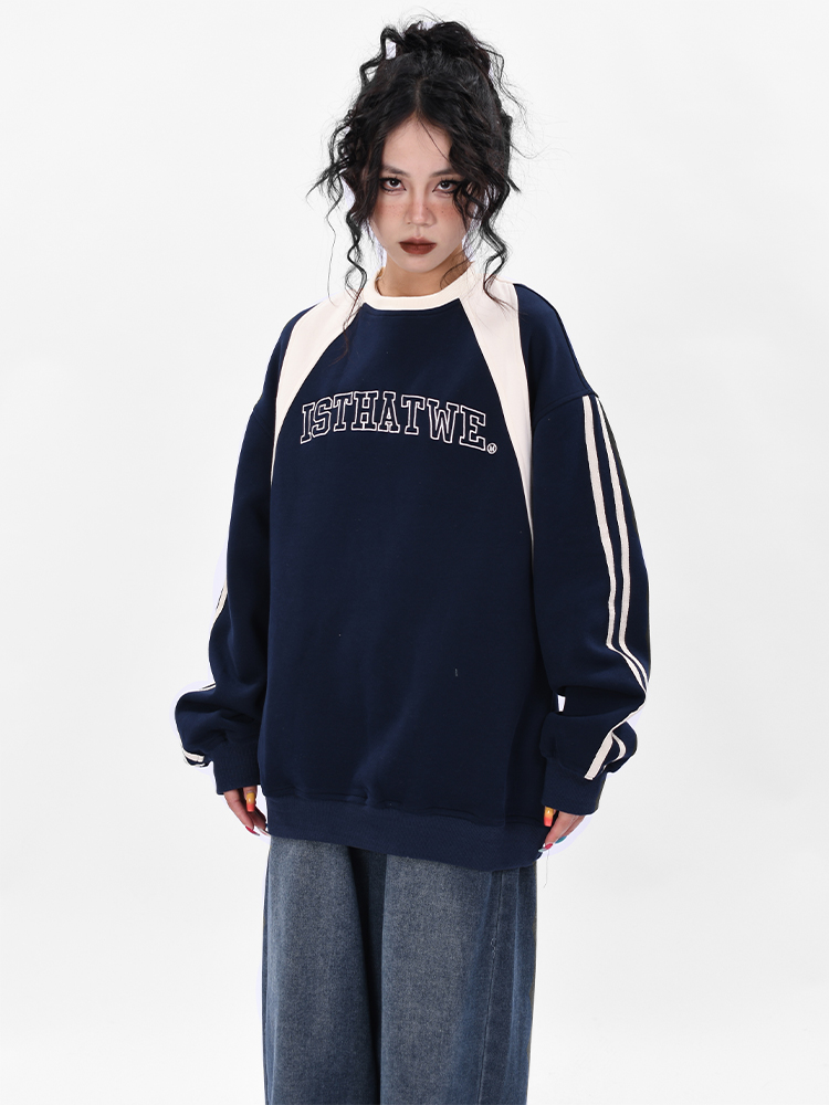 OV原創高街復古撞色拼接字母刺繡圓領厚棉T男女bf小眾潮牌寬鬆上衣