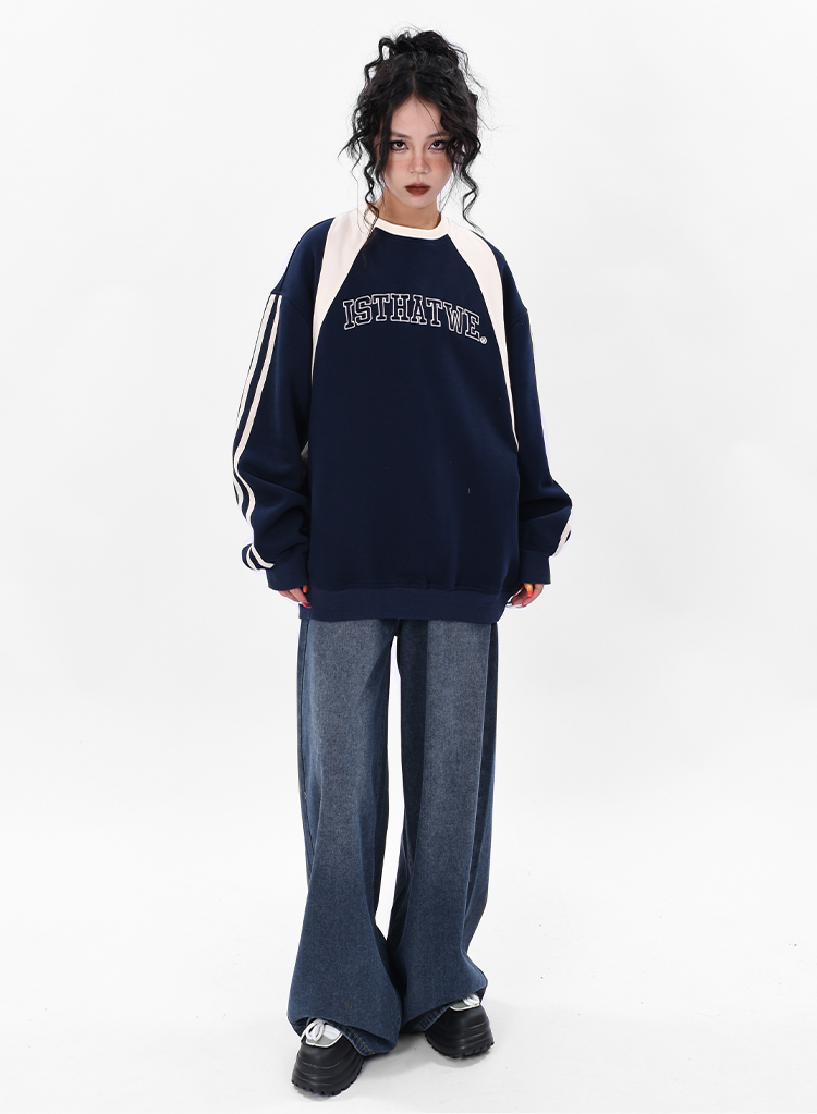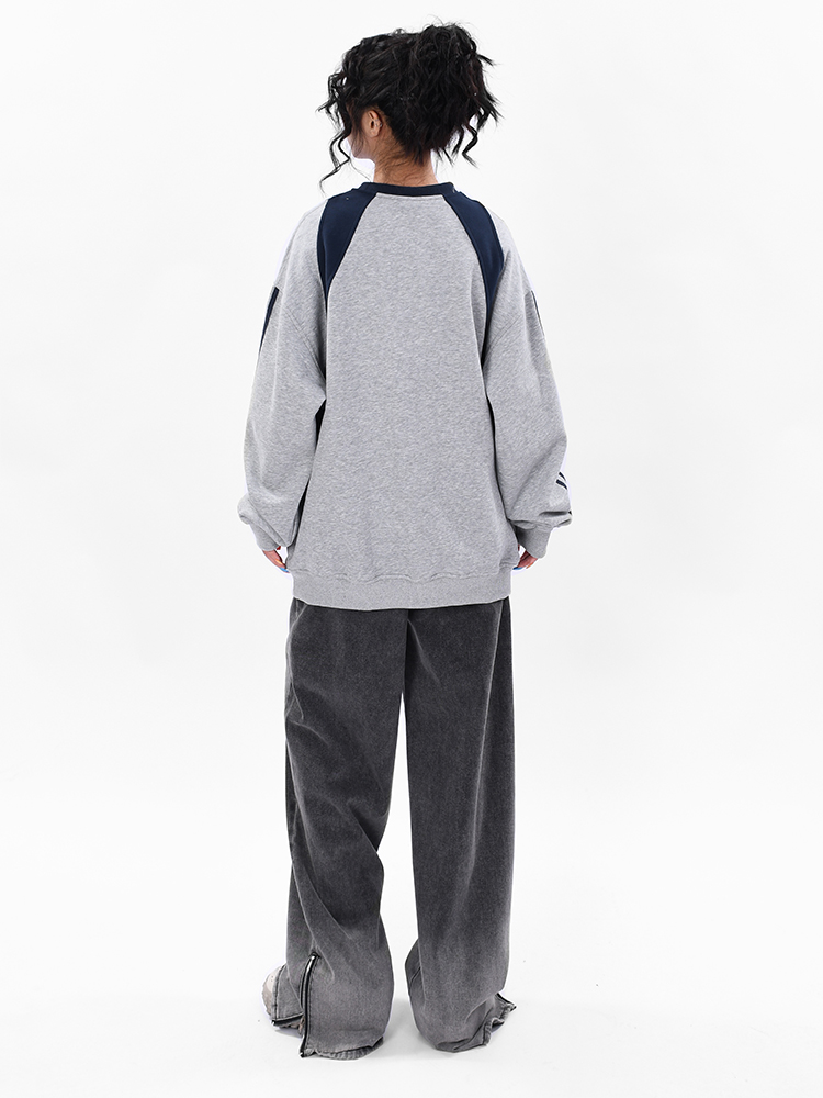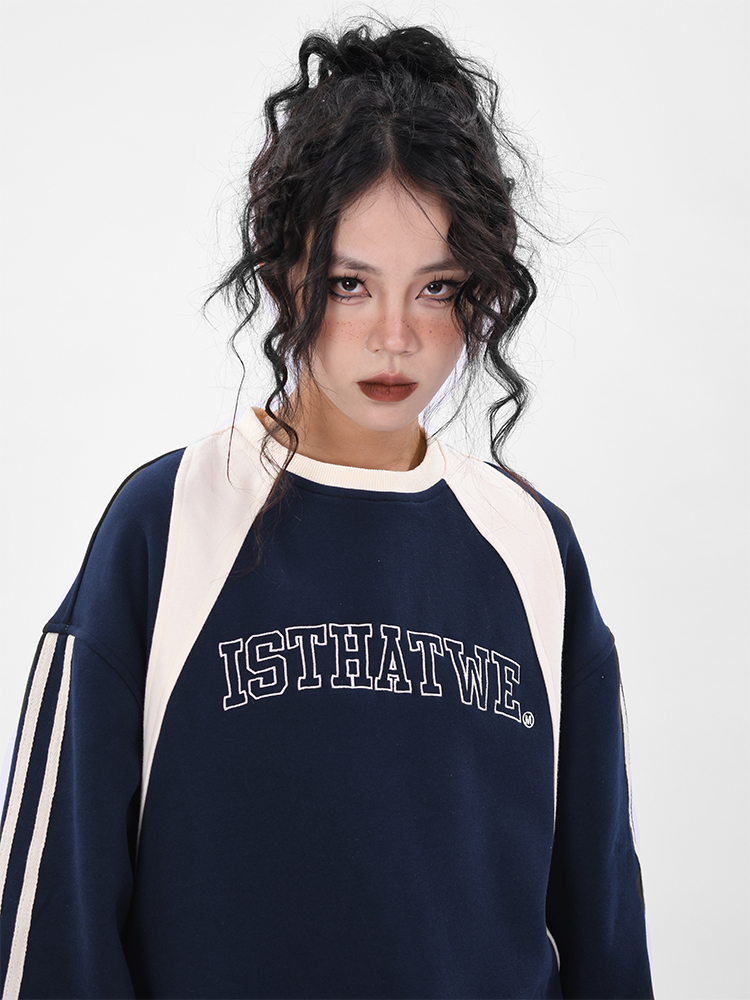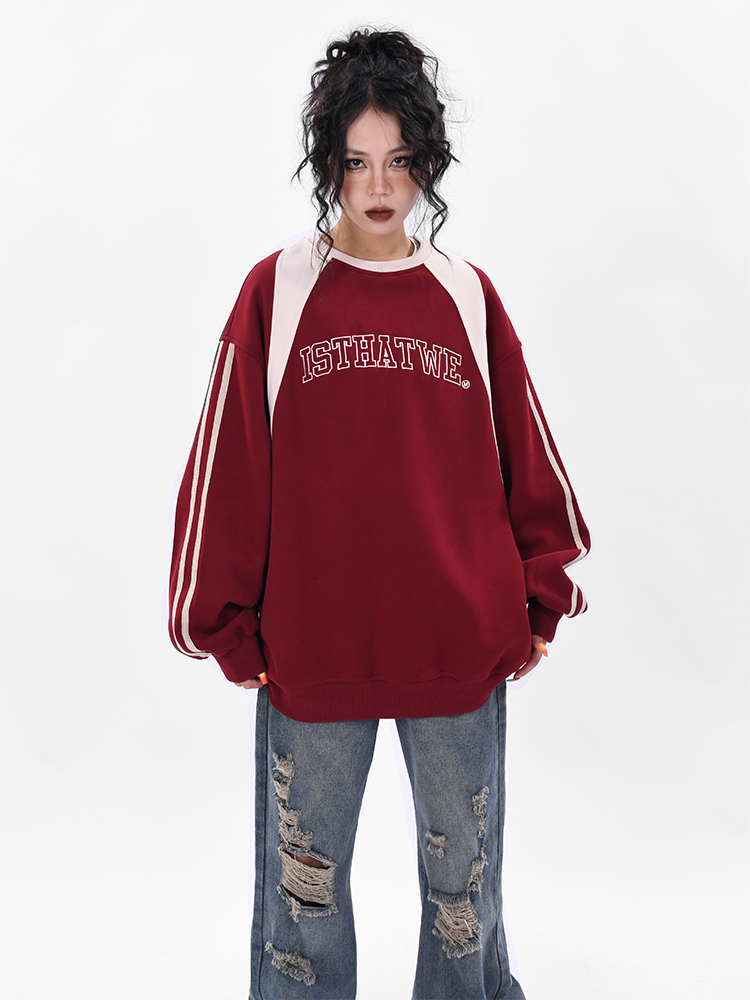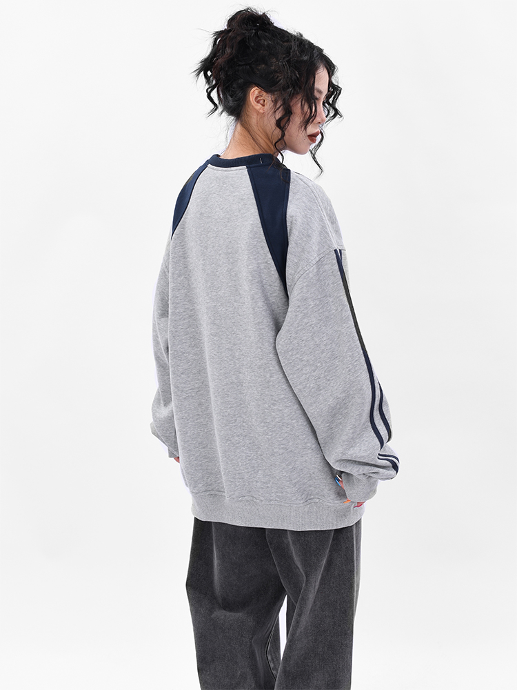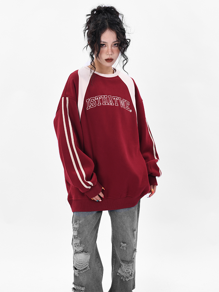 OV原創高街復古撞色拼接字母刺繡圓領厚棉T男女bf小眾潮牌寬鬆上衣