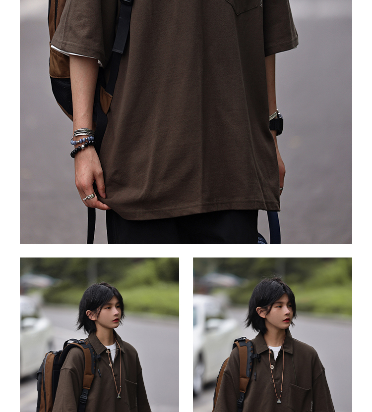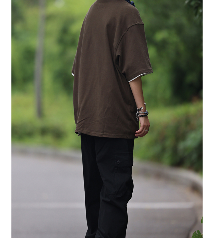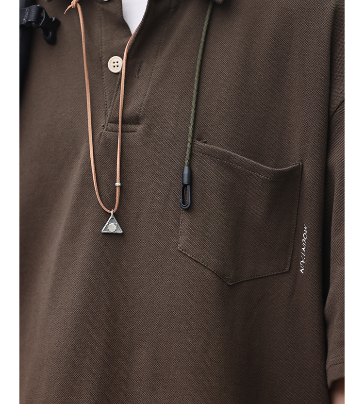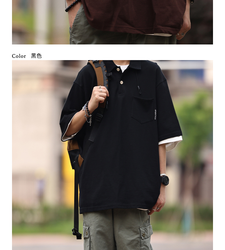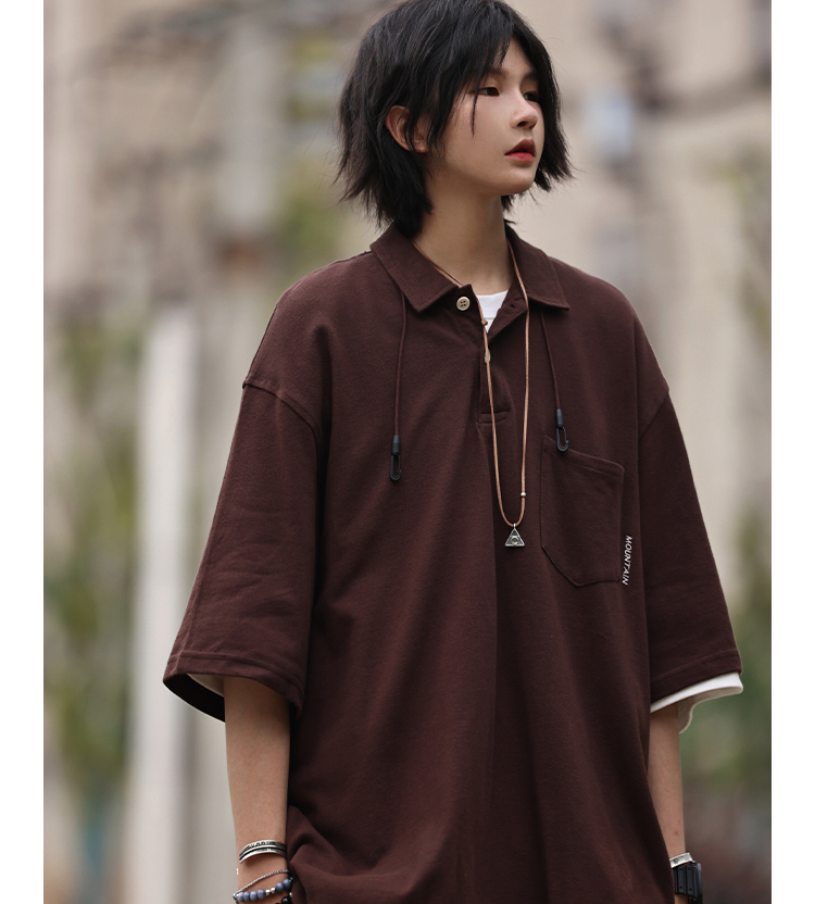 Nobodyknows夏季美式復古翻領簡約polo衫休閒寬鬆純色刺繡短袖T恤